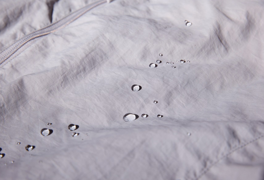 스포티한 무드의 방수 기능이 있는 후드 다운 자켓입니다.