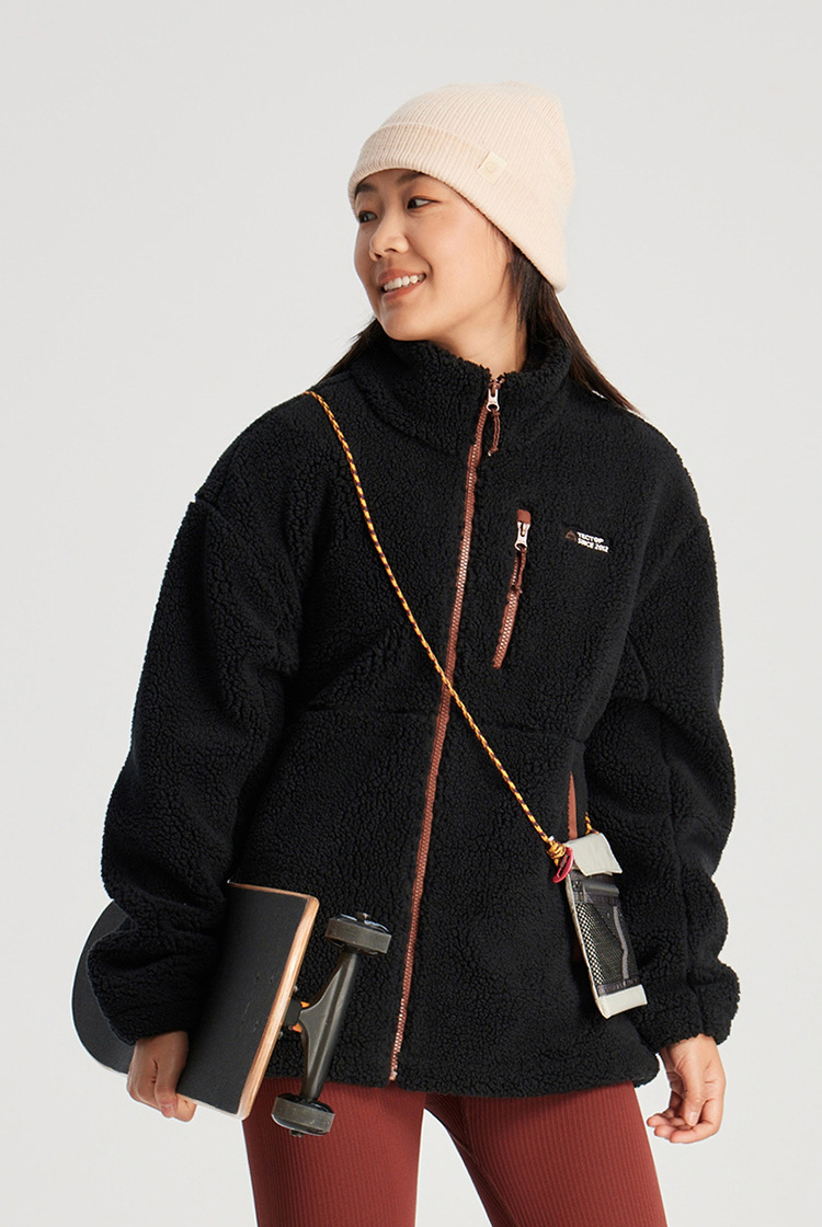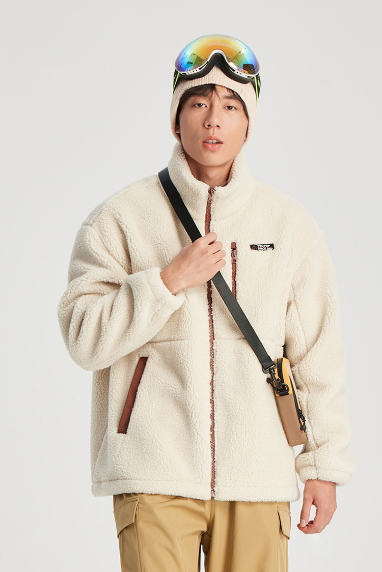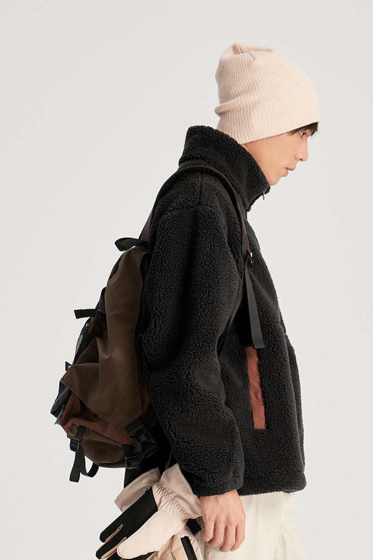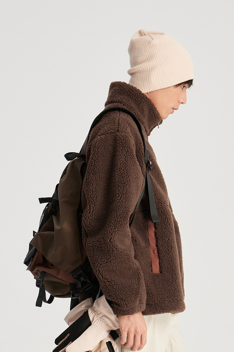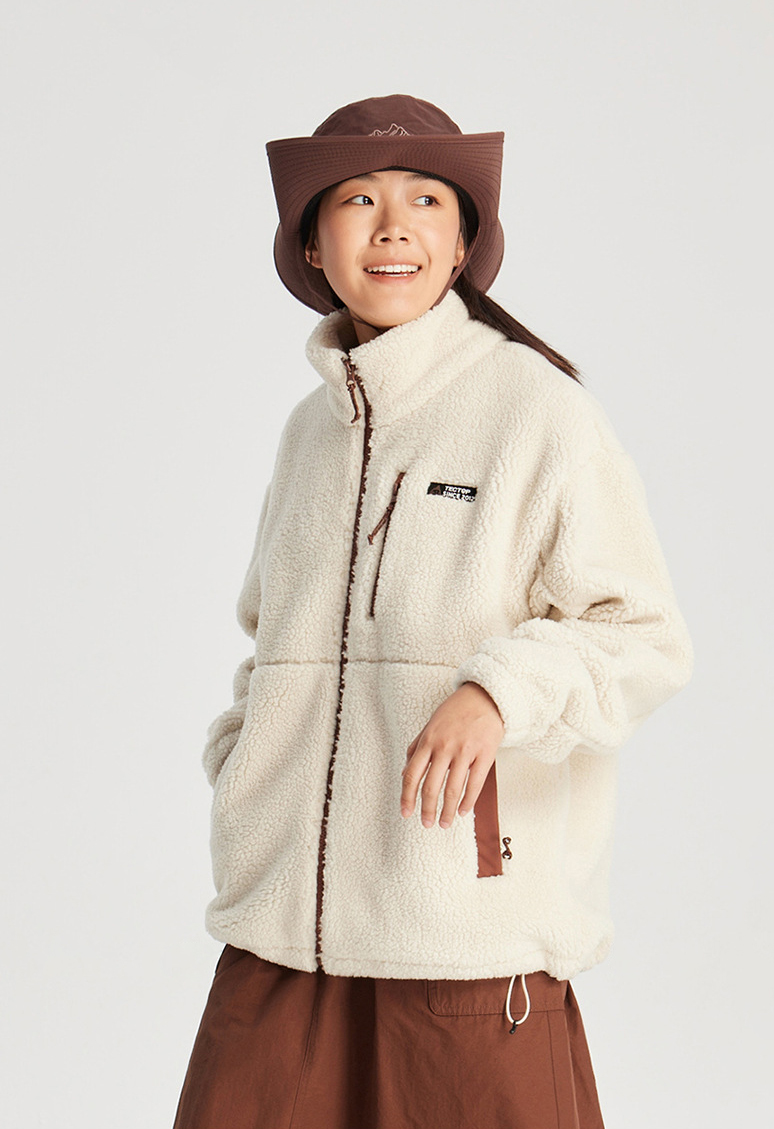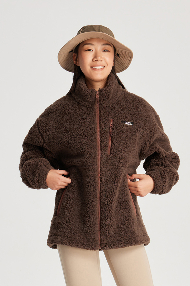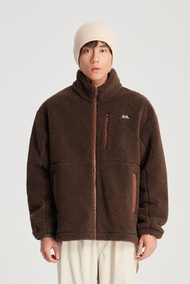 두꺼운 원단의 스탠드 카라 플리스 자켓입니다.