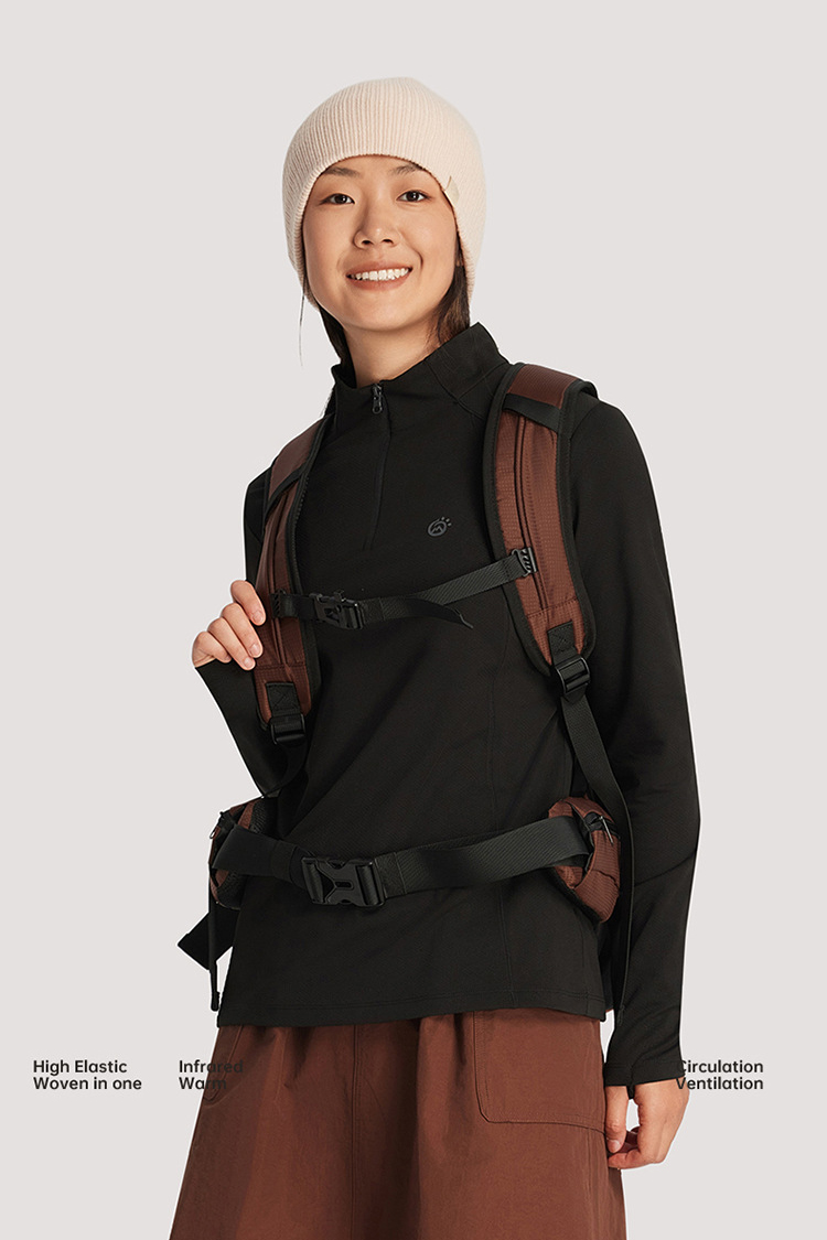 신축성 있는 원단으로 다양한 아웃도어 활동에서 착용하기 좋은 하프 집업 티셔츠입니다.