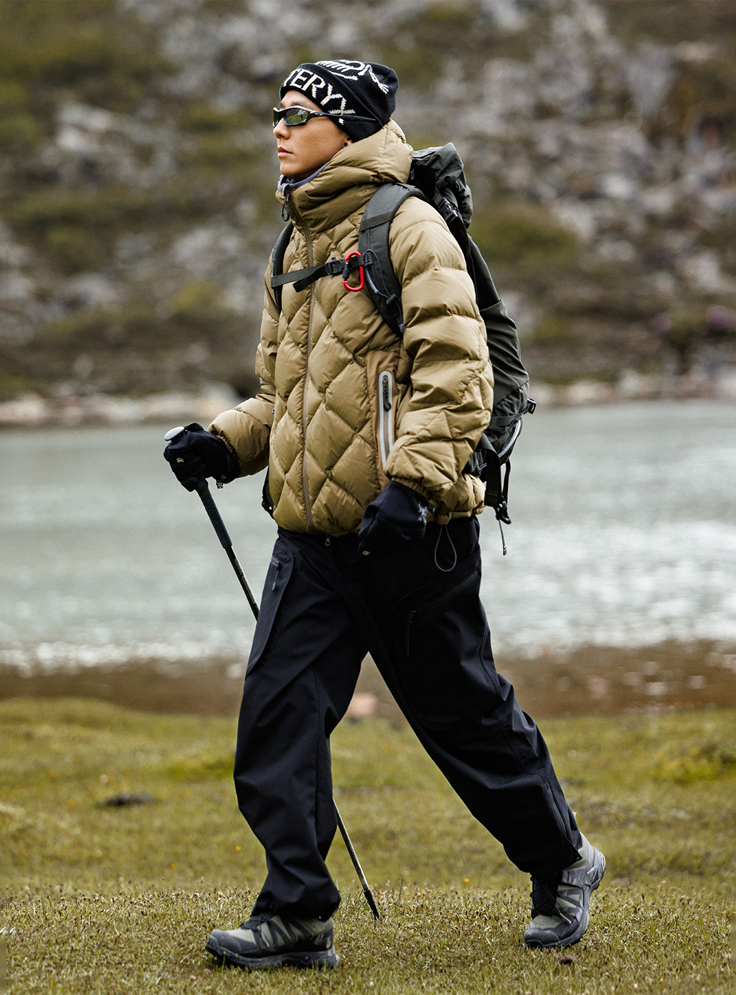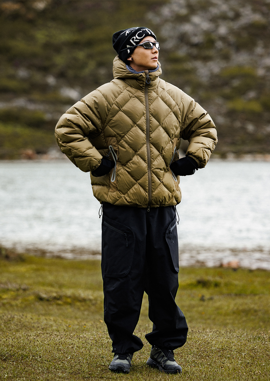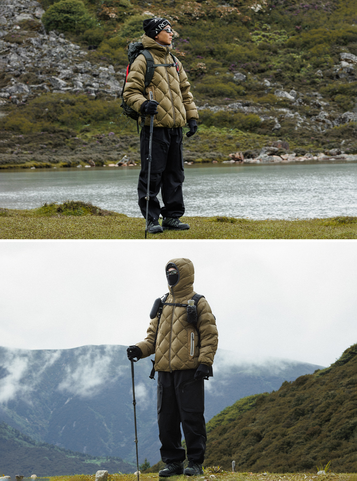 일체형 후드로 활용성이 높은 아웃도어 다운 자켓입니다.