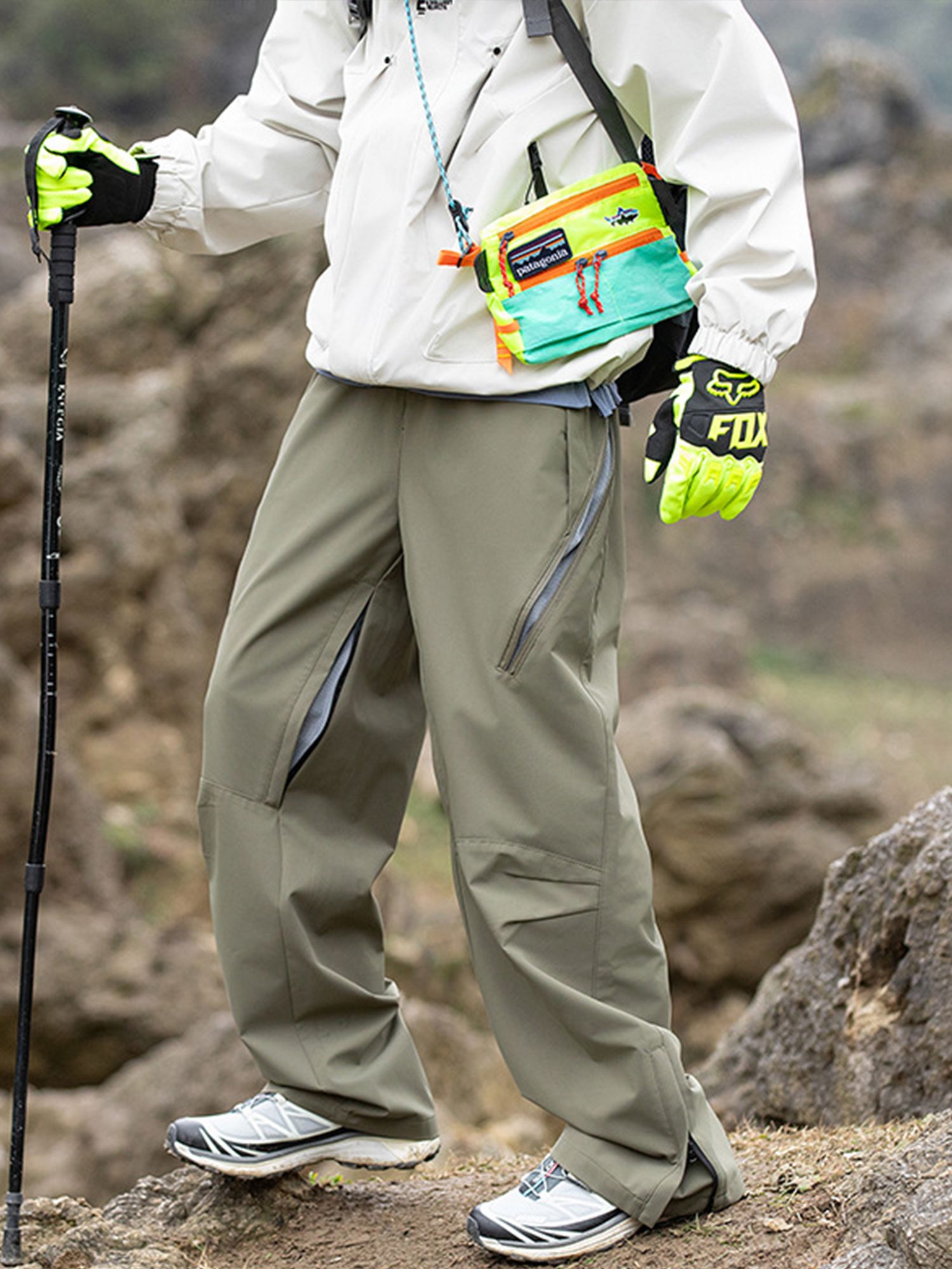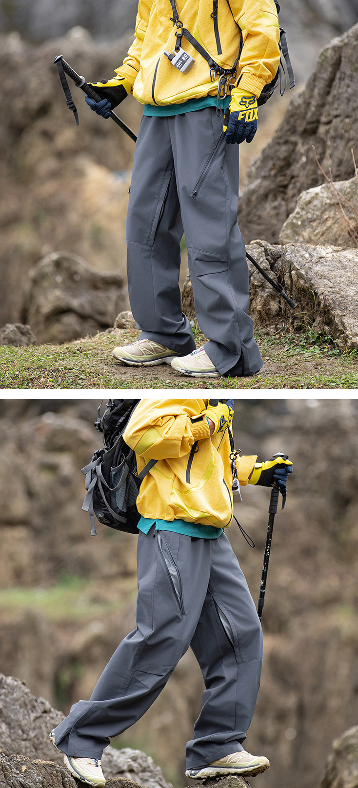 - 사이드 사선 지퍼 디테일의 아웃도어 팬츠입니다.