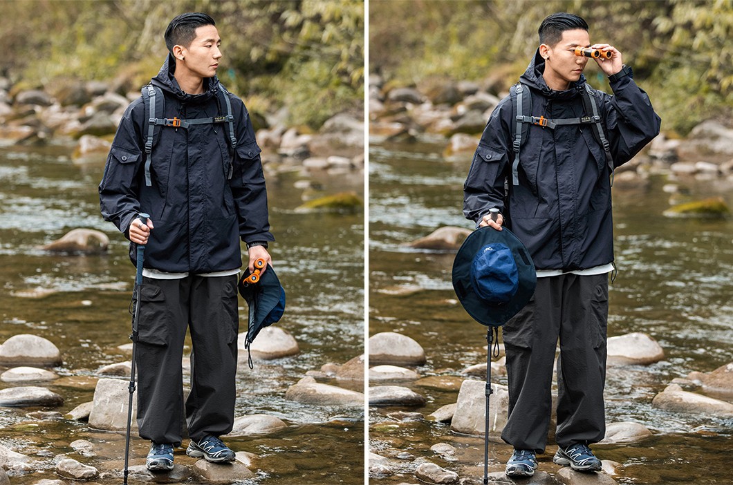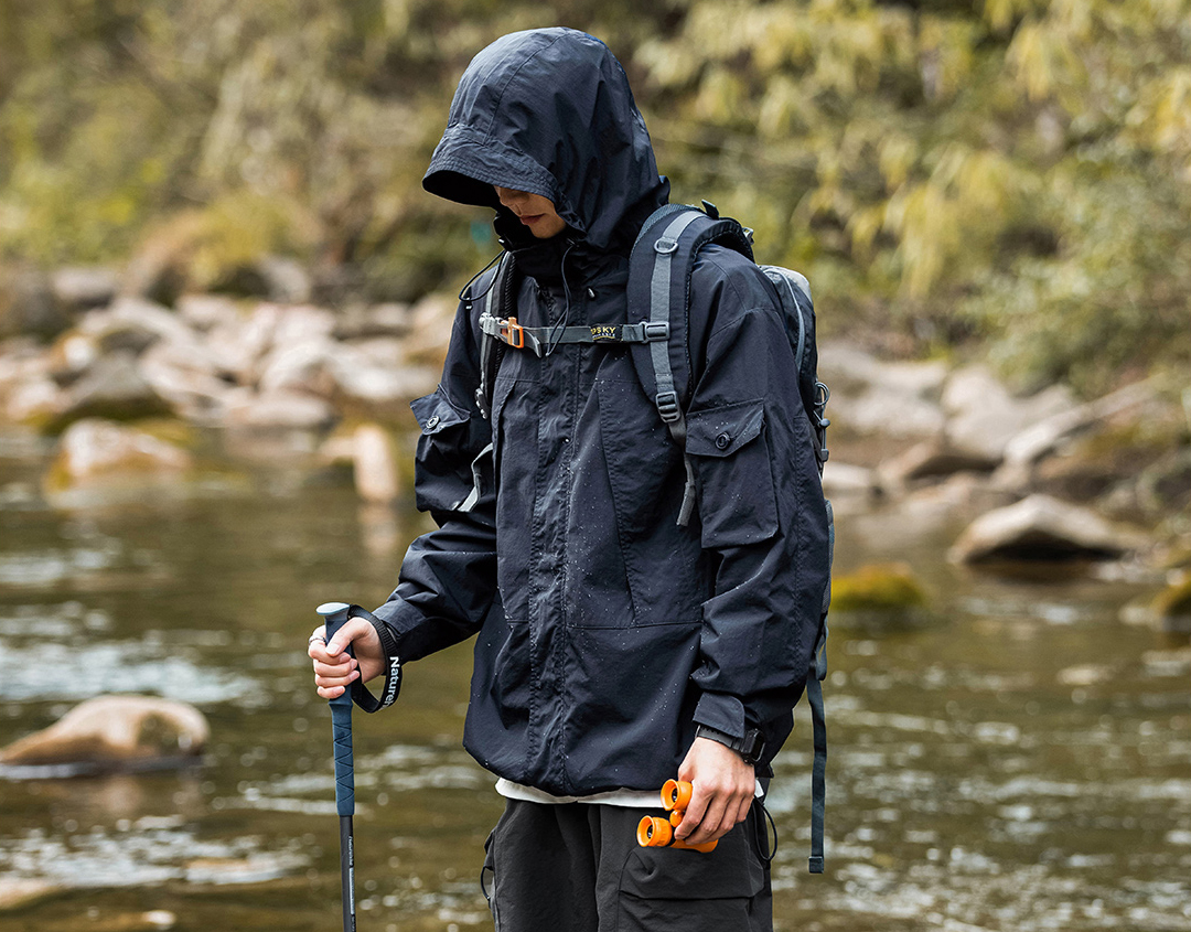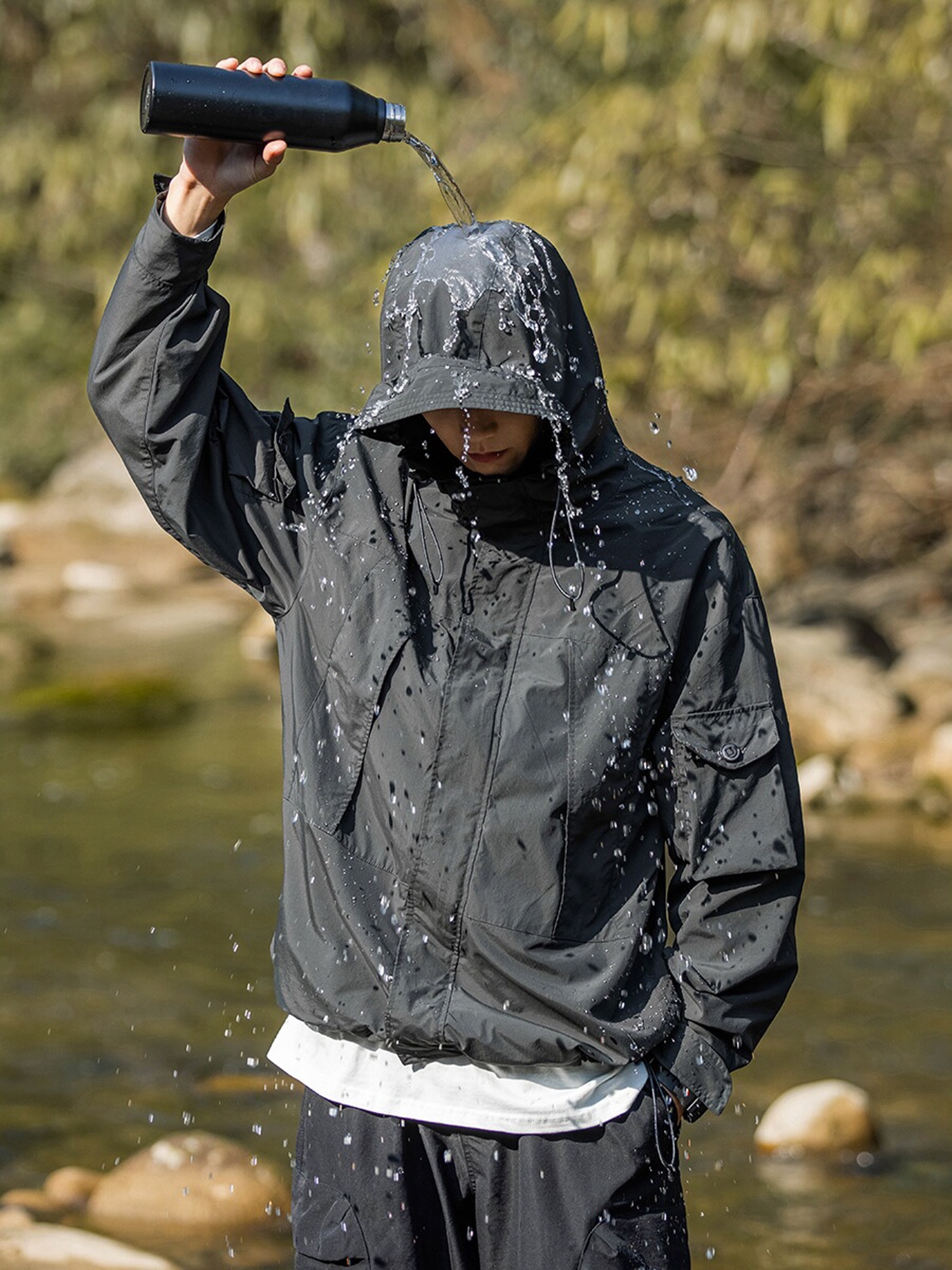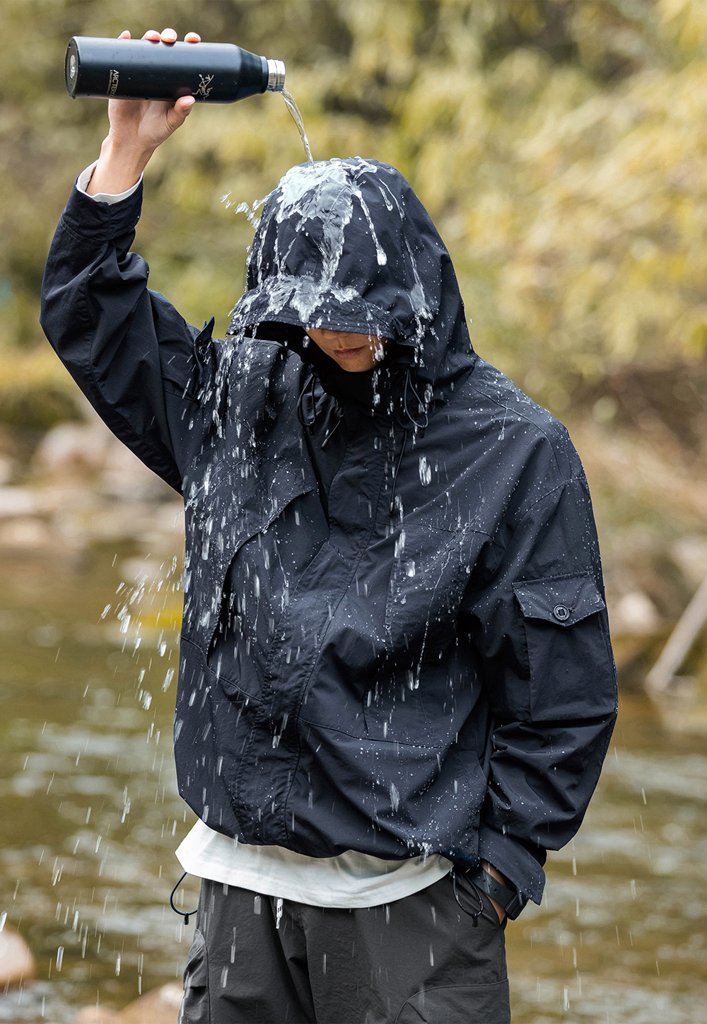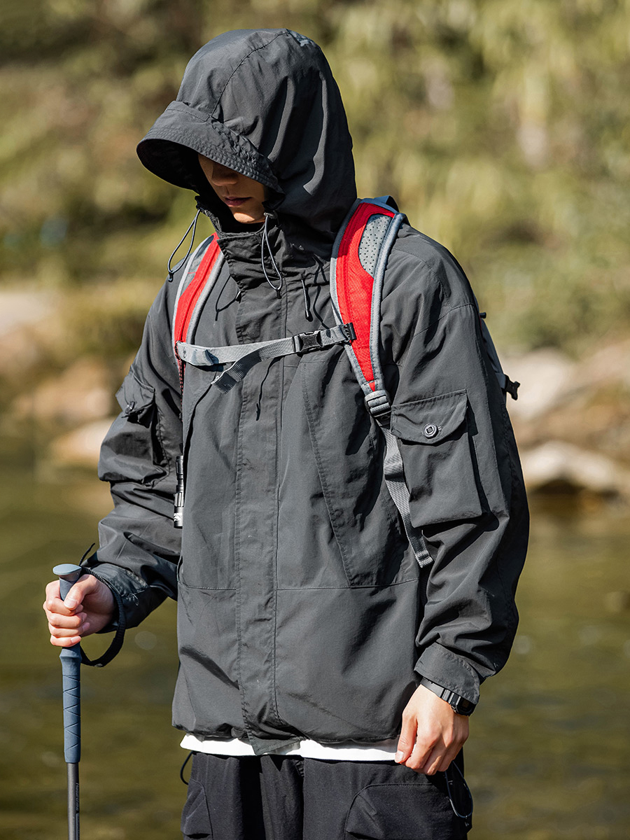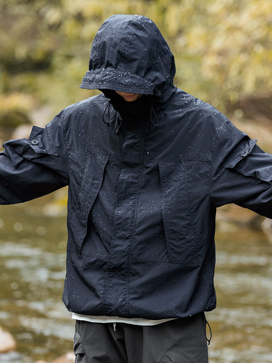 워터프루프 기능이 있는 멀티 포켓 아웃도어 자켓입니다.