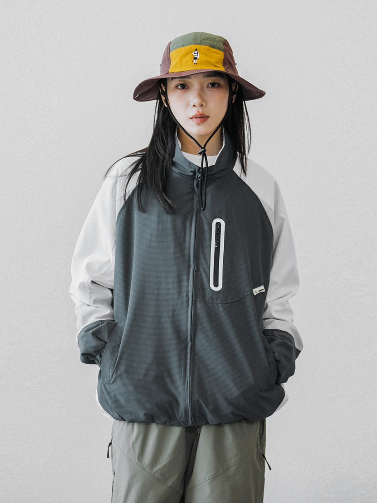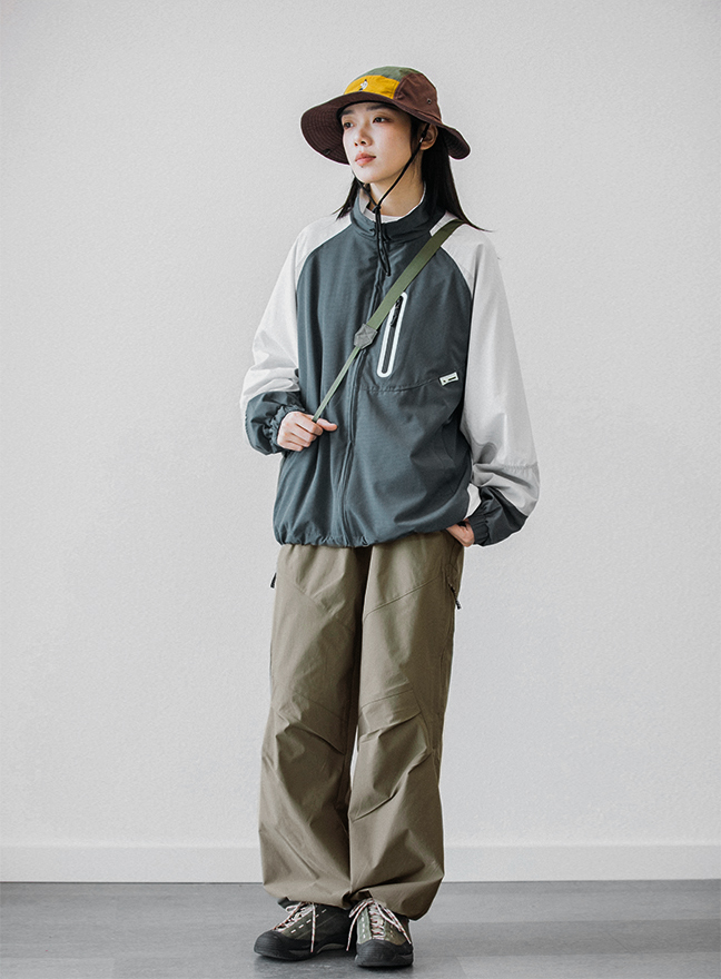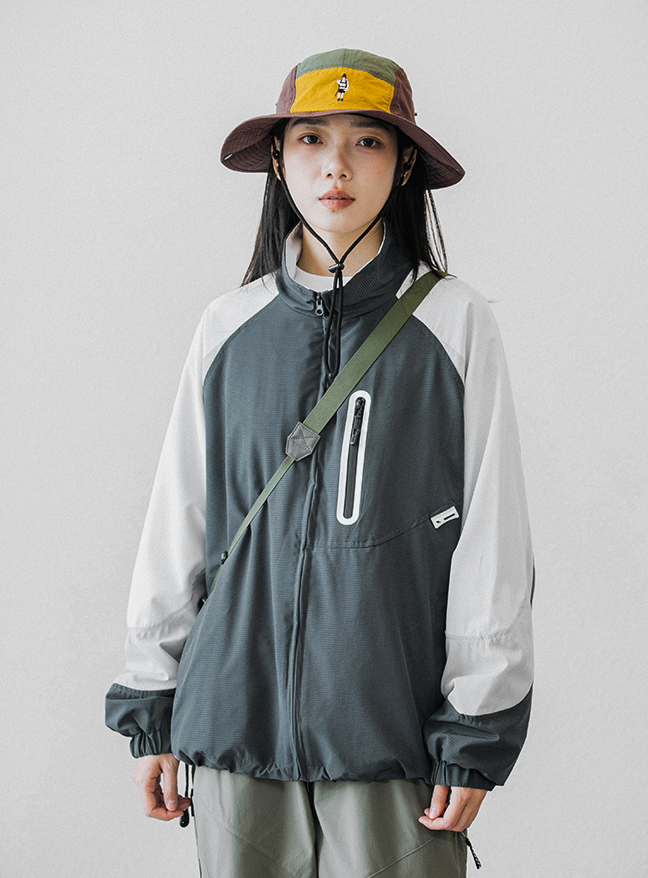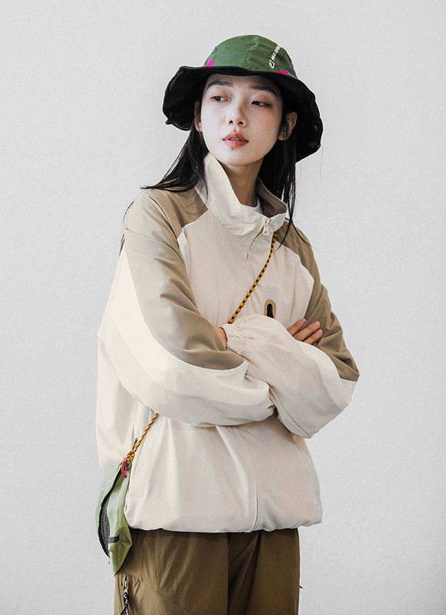 빈티지한 무드의 스탠드 카라 스포츠 자켓입니다.