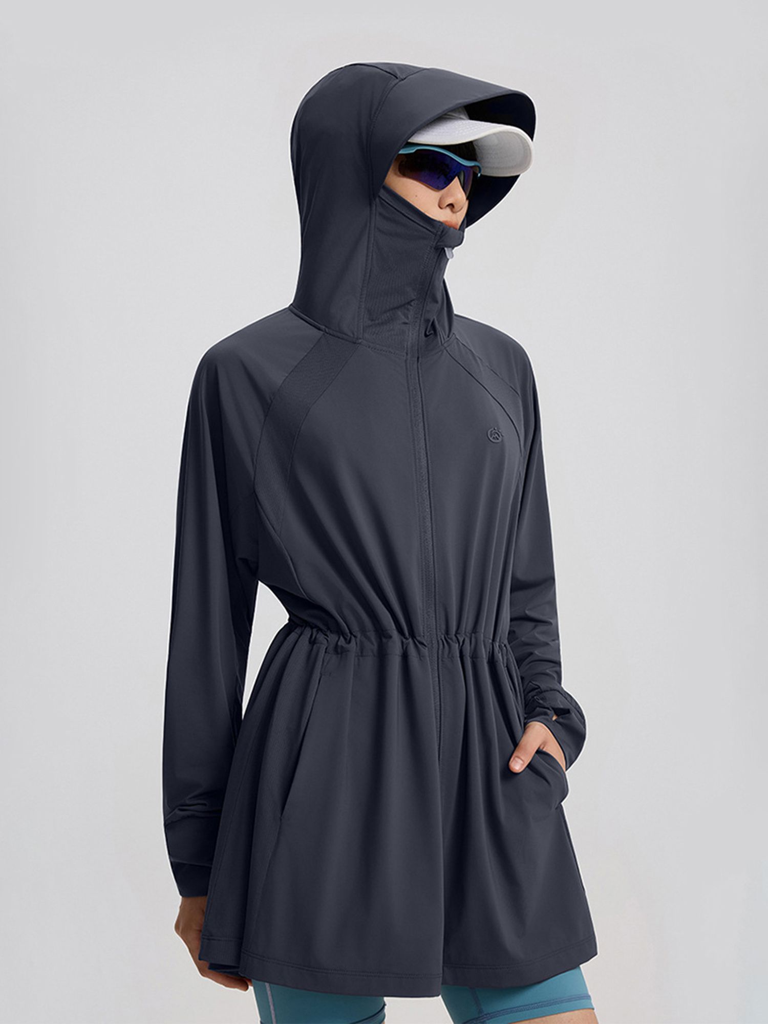 자외선 차단 기능이 있는 후드 선코트입니다.