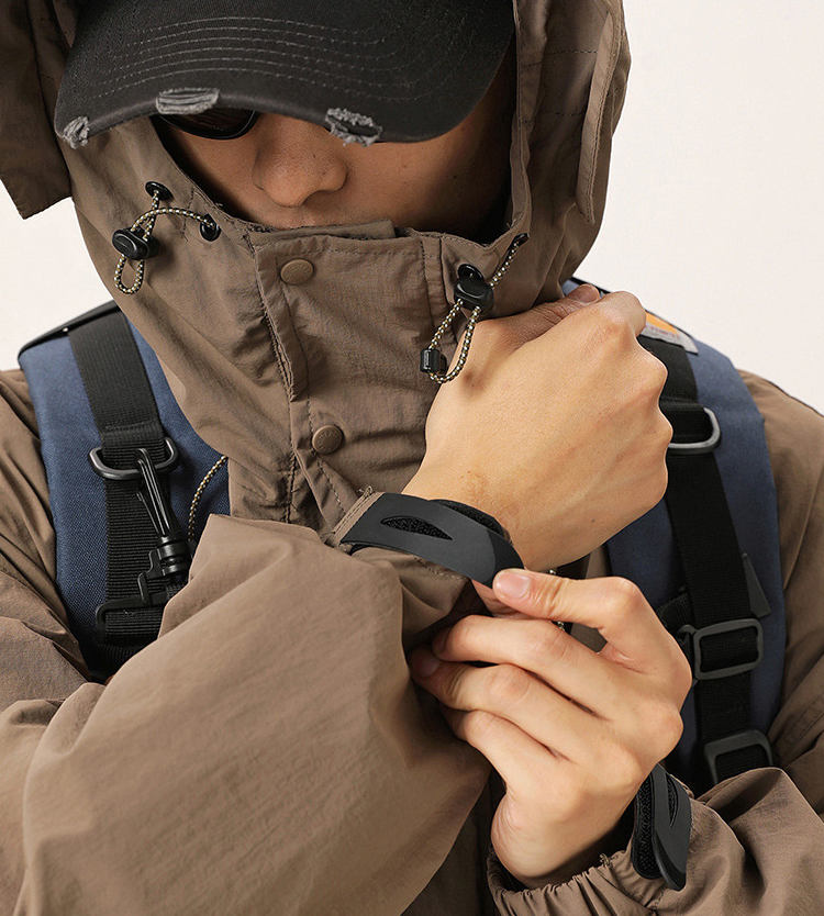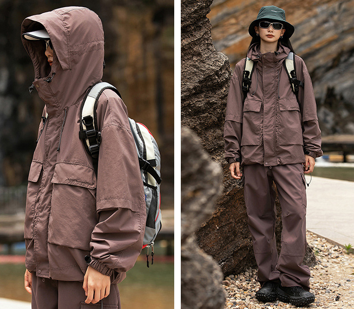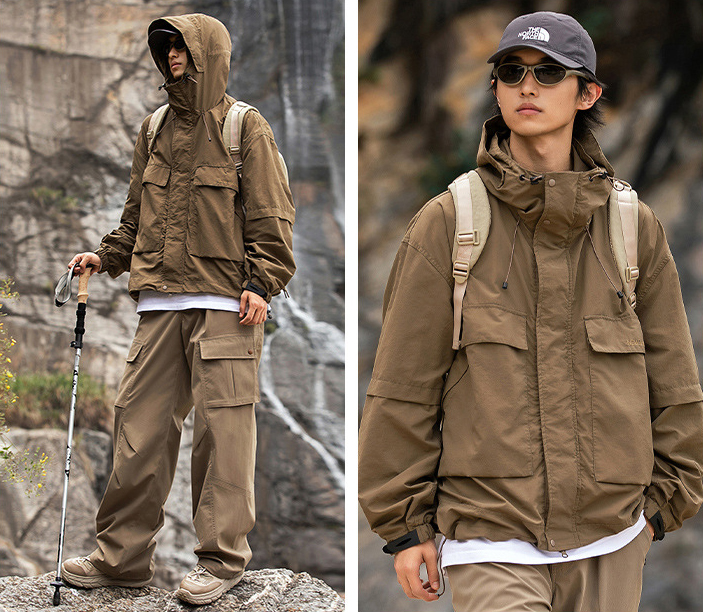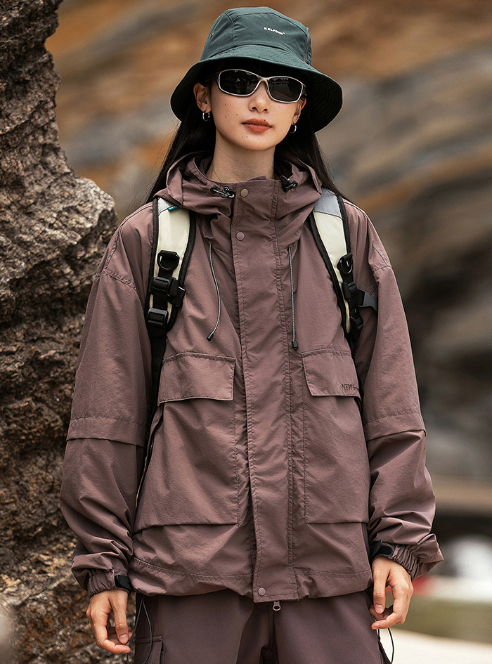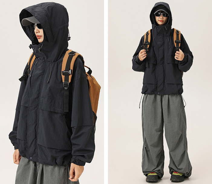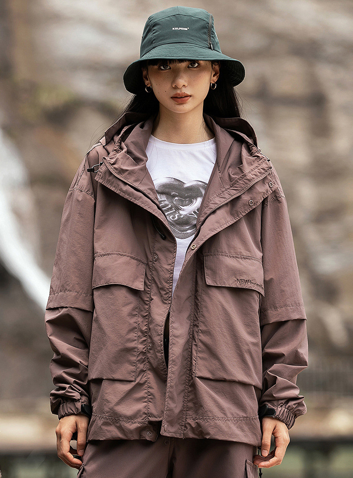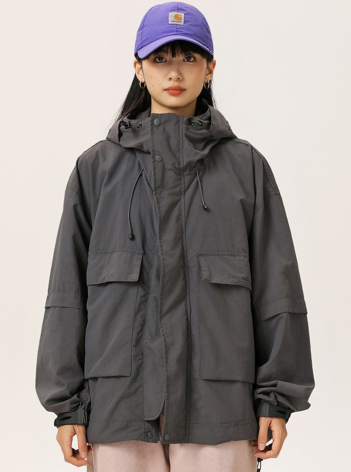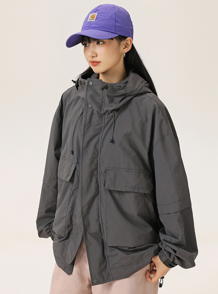 루즈한 실루엣의 아웃도어 후드 자켓입니다.