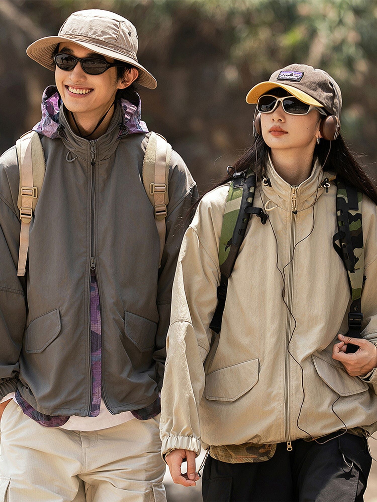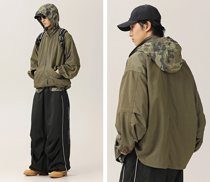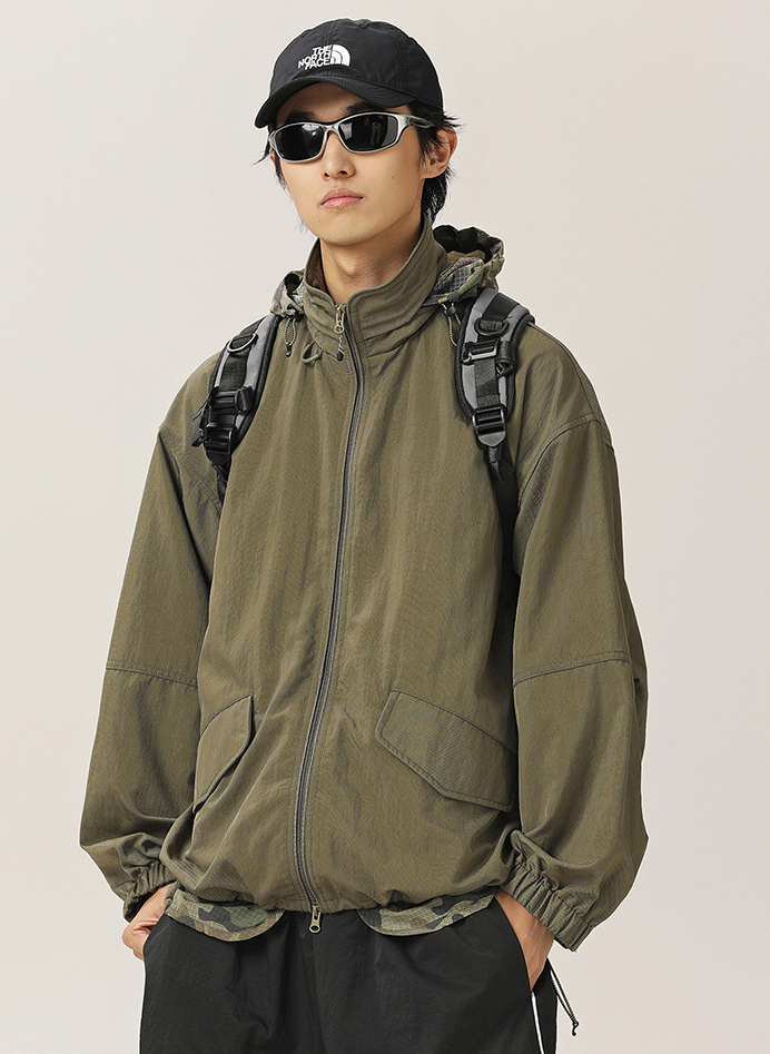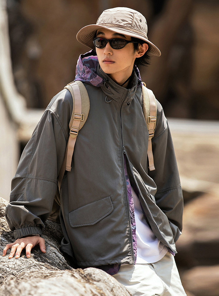 컬러의 배색으로 포인트를 준 아웃도어 퀵 드라이 후드 윈드브레이커입니다.