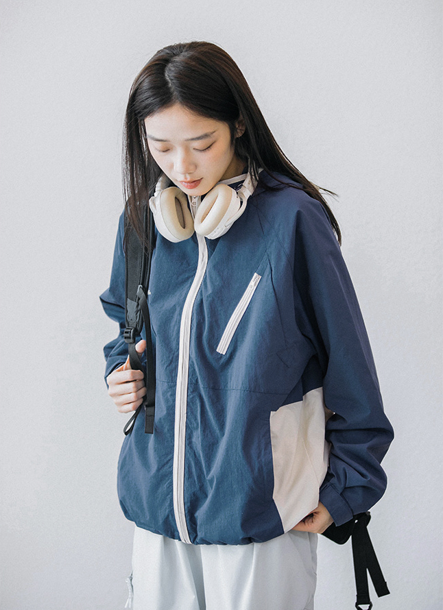 스탠드 카라 디자인의 스포츠 자켓입니다.
