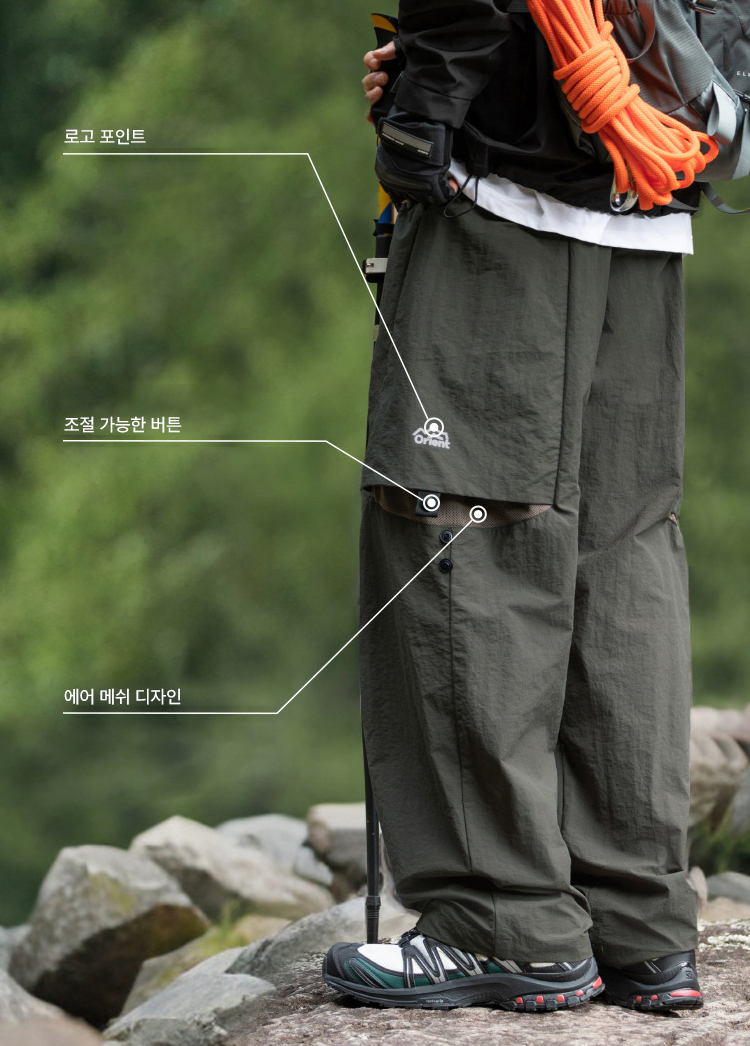 워터프루프 기능이 있는 캐주얼 아웃도어 팬츠입니다.
