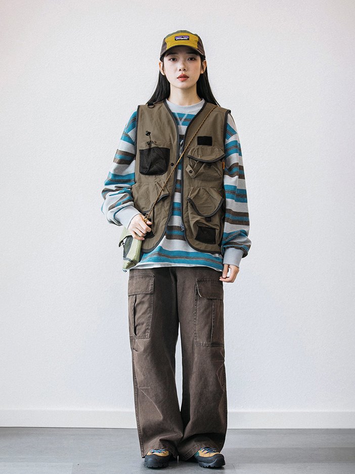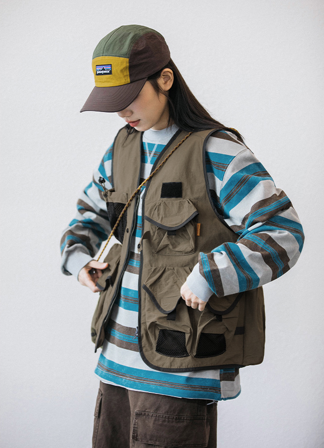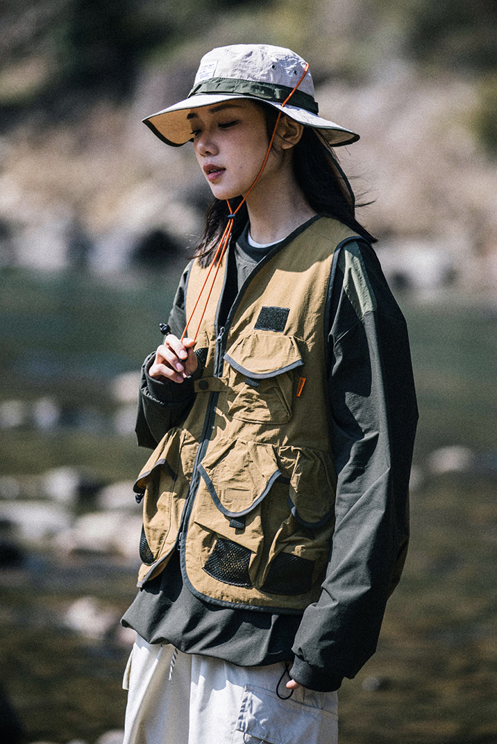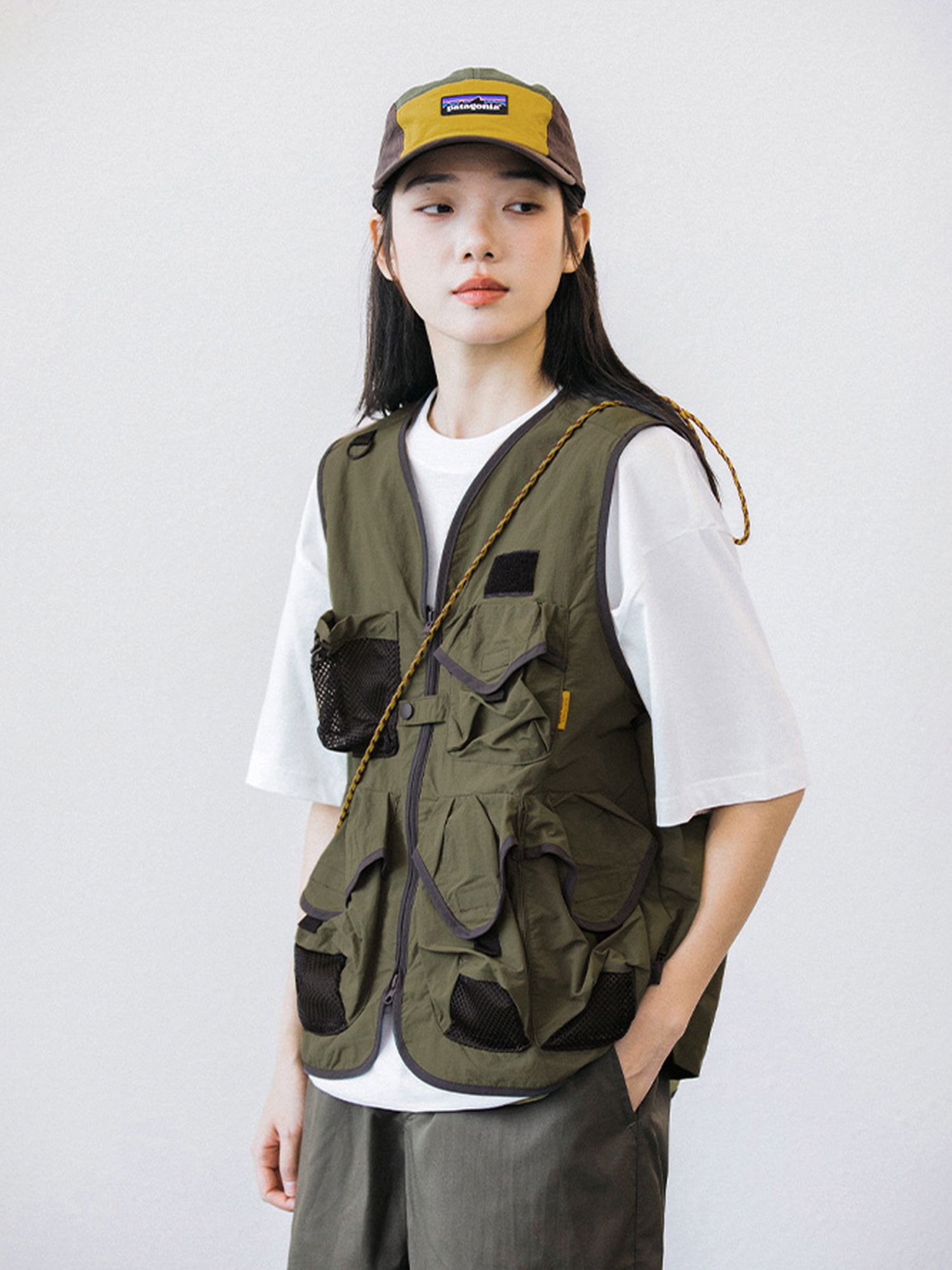 야외 활동에 적합한 멀티 포켓 피싱 베스트입니다.