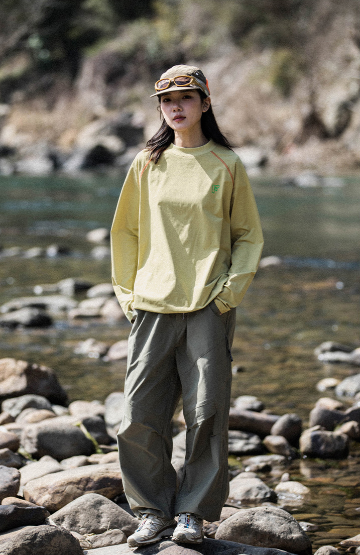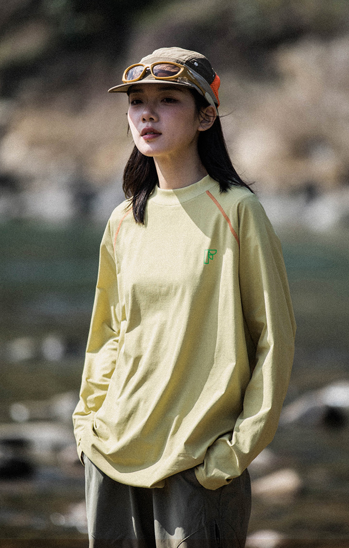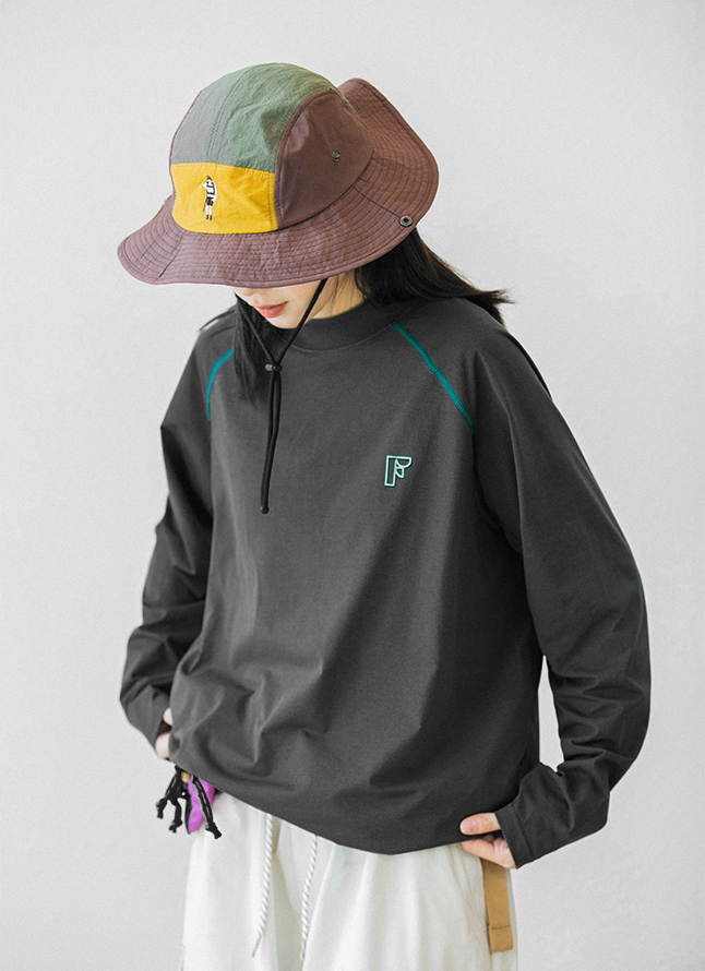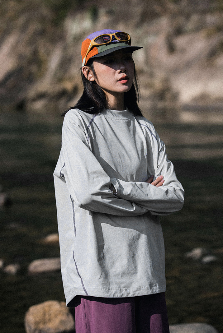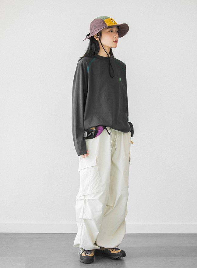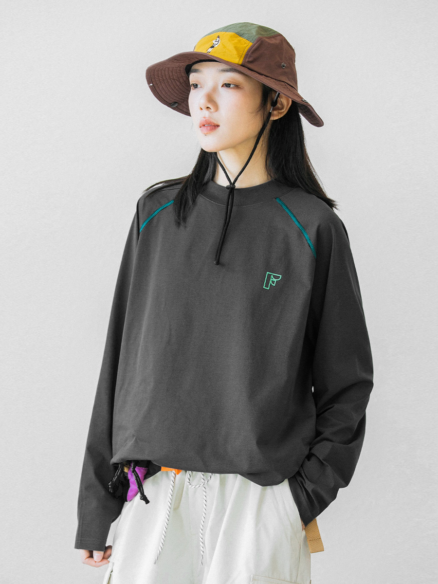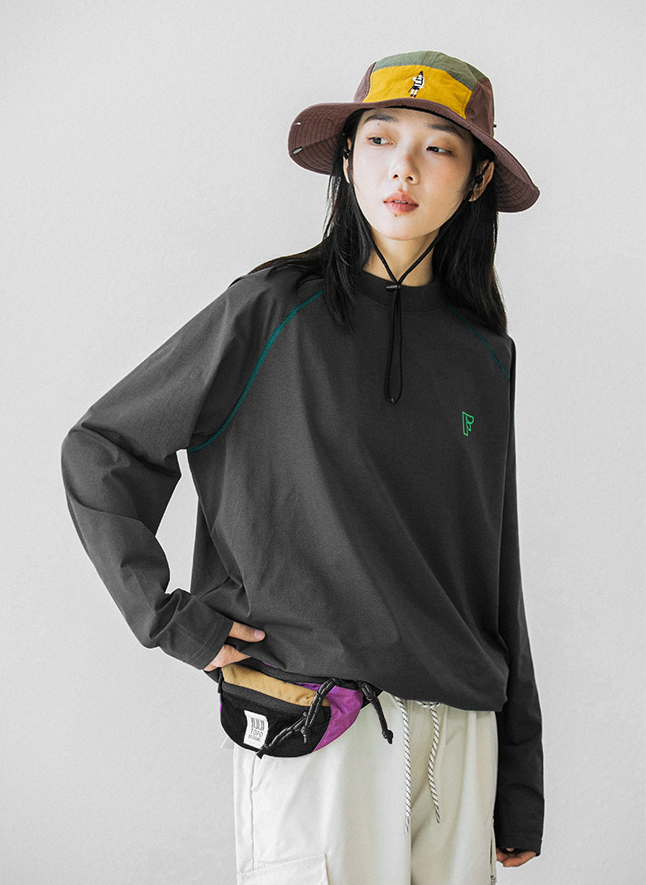 루즈한 실루엣의 스티치 캐주얼 티셔츠입니다.