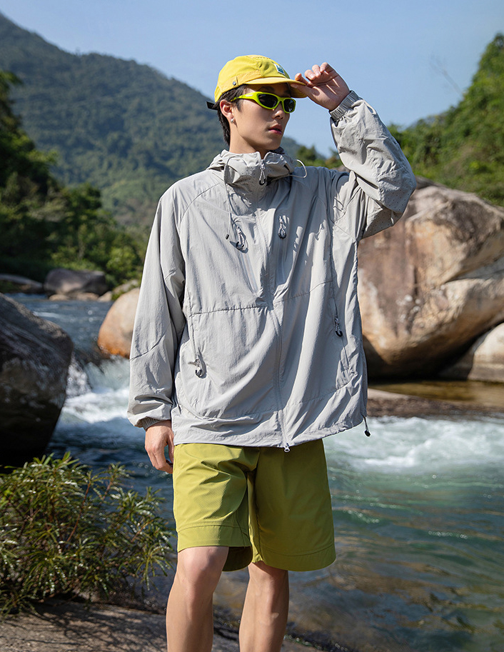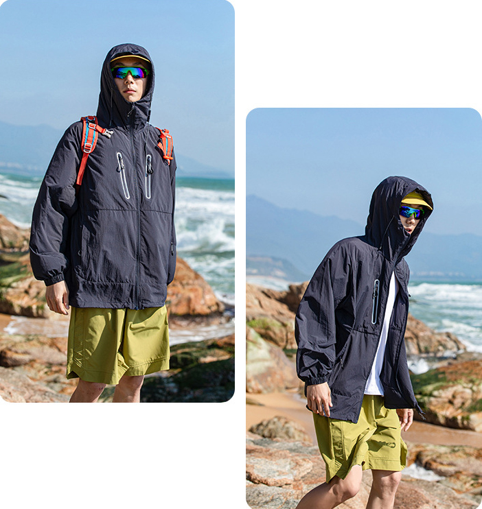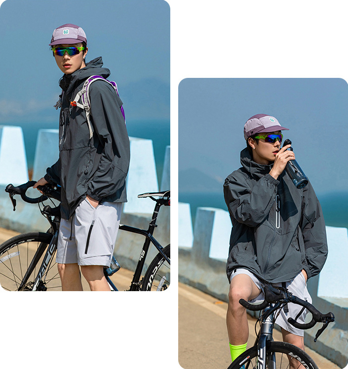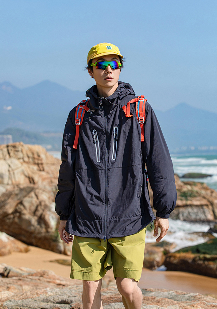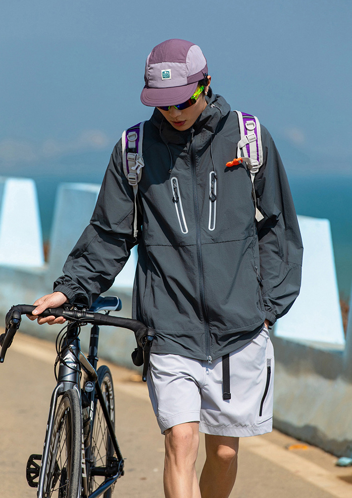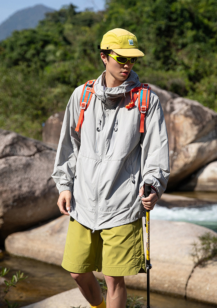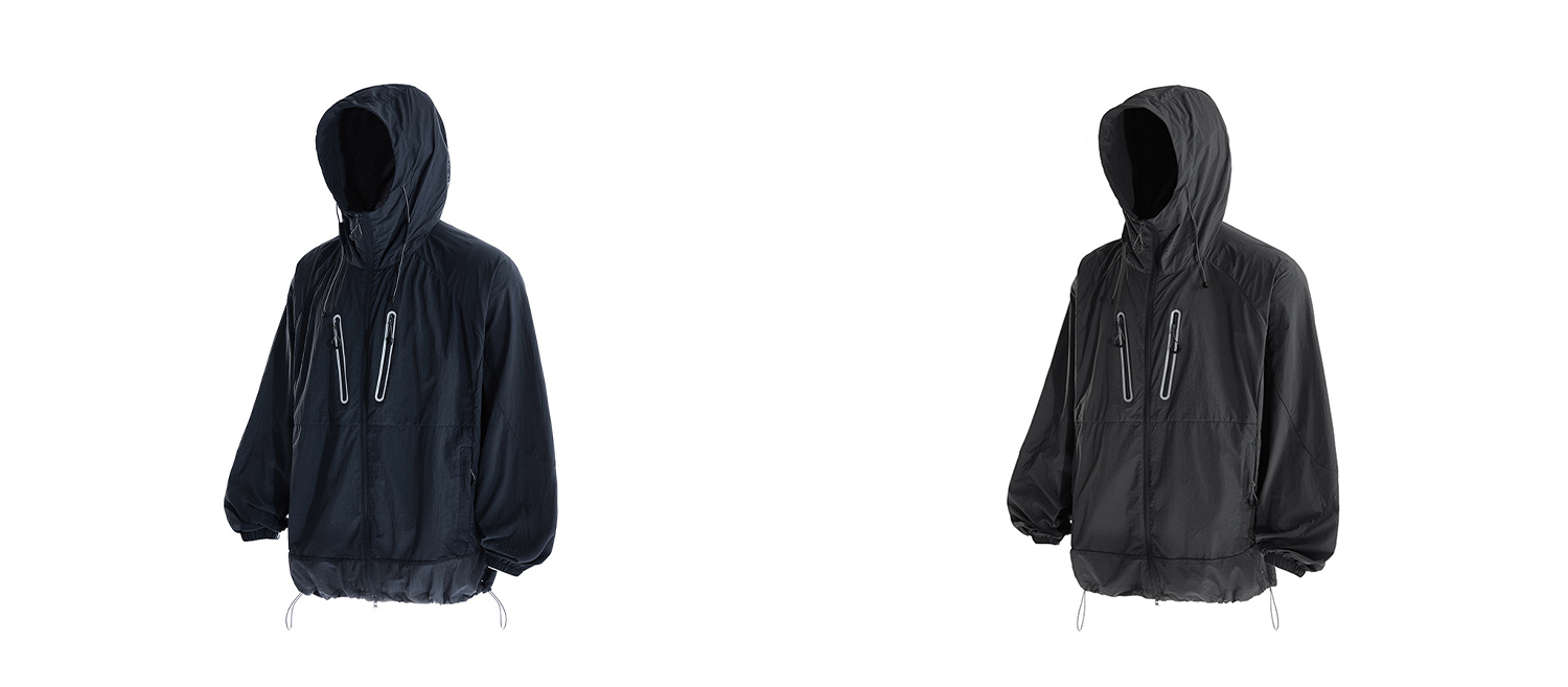 파우치가 포함되어 휴대하여 활용하기 좋은 윈드브레이커입니다.