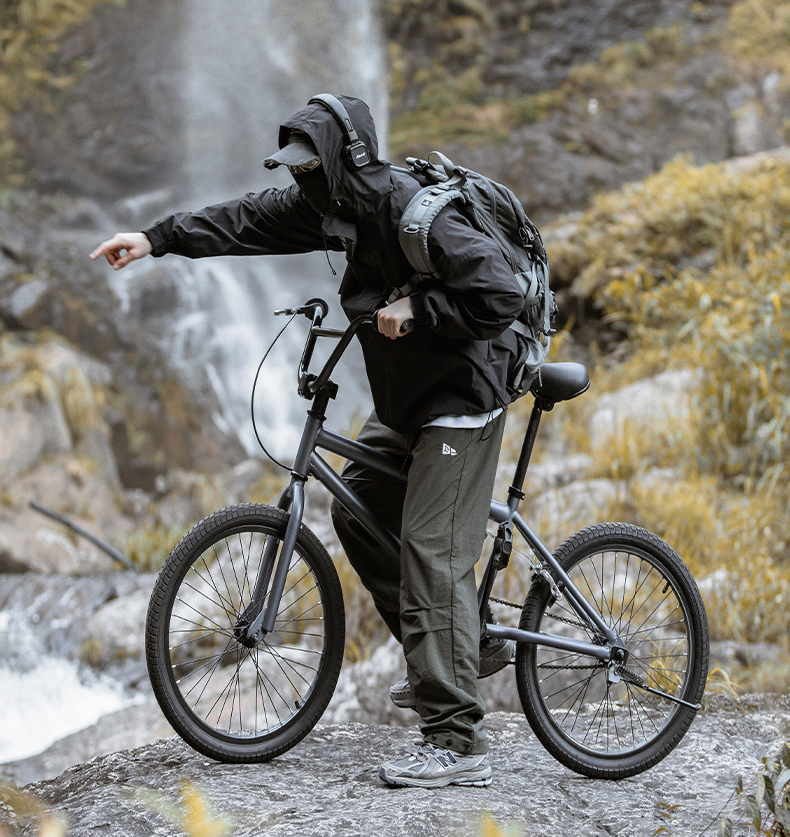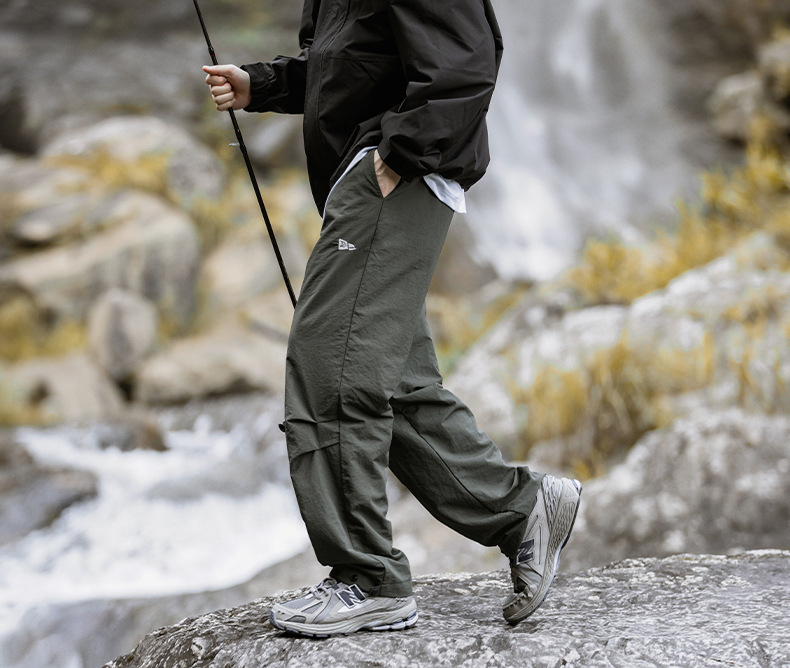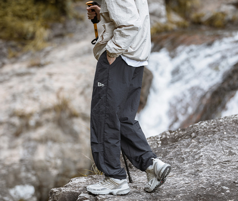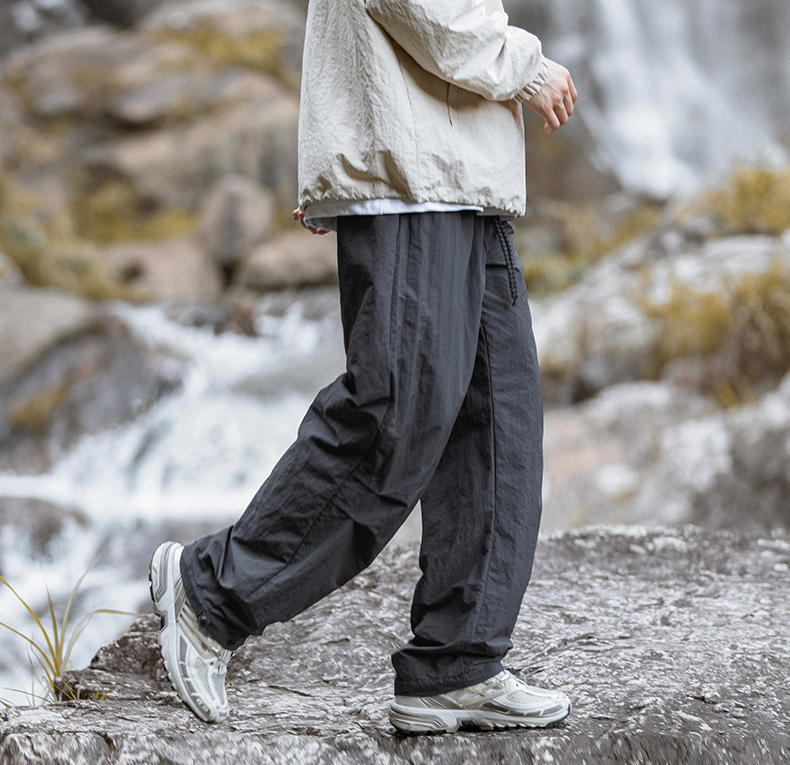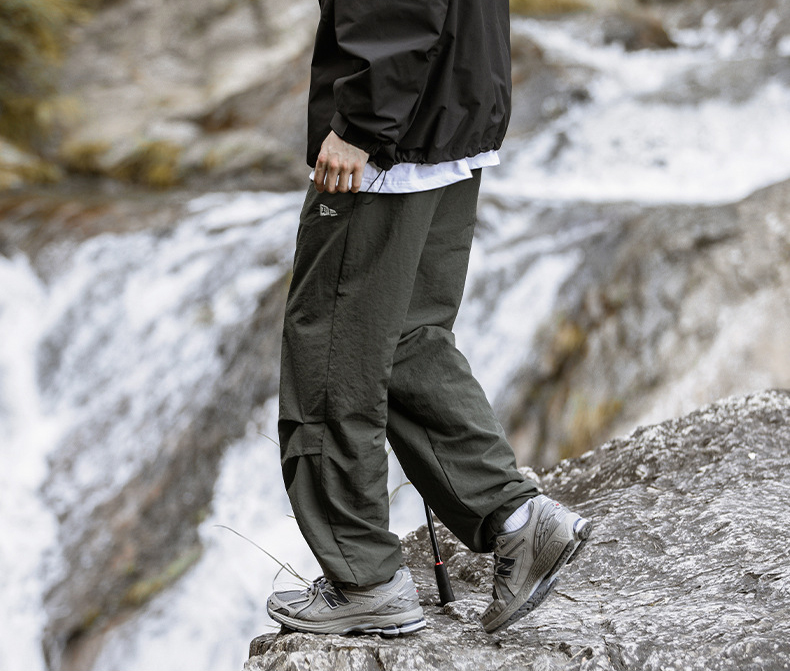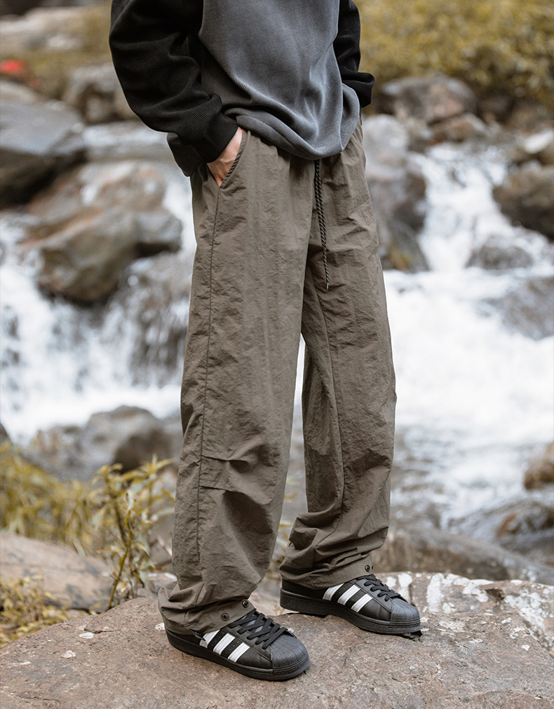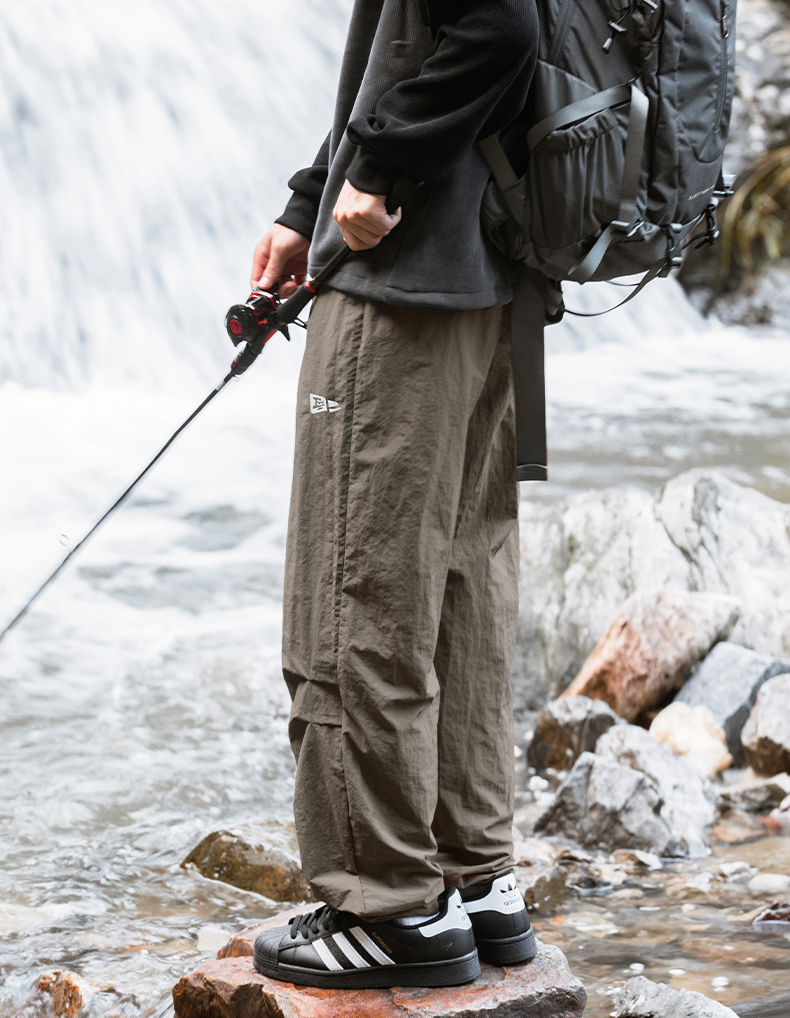 아웃도어 감성의 워터프루프 플리츠 팬츠입니다.