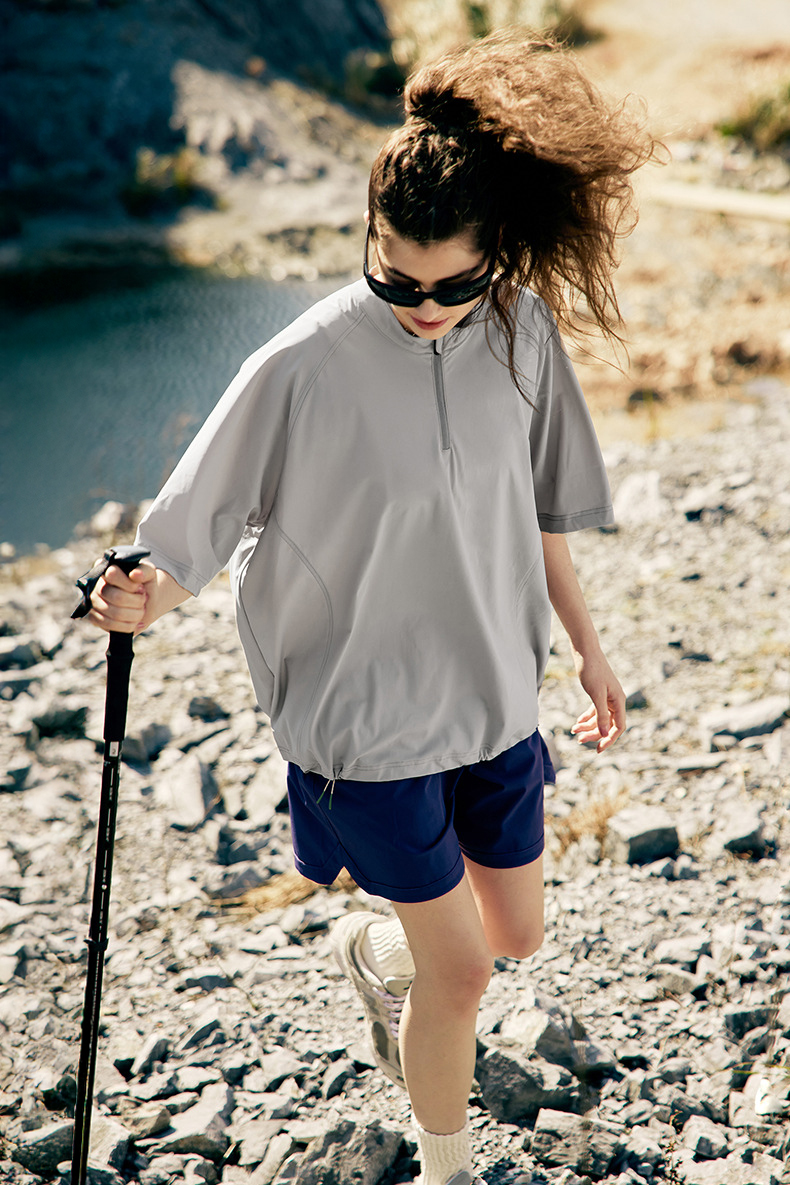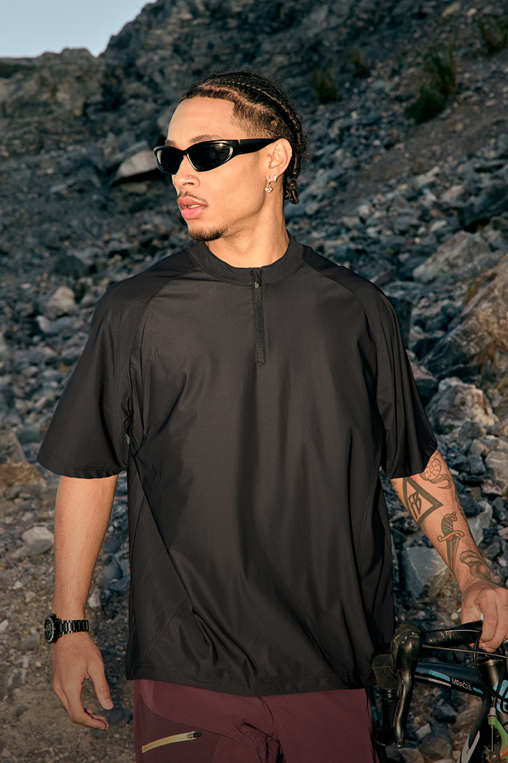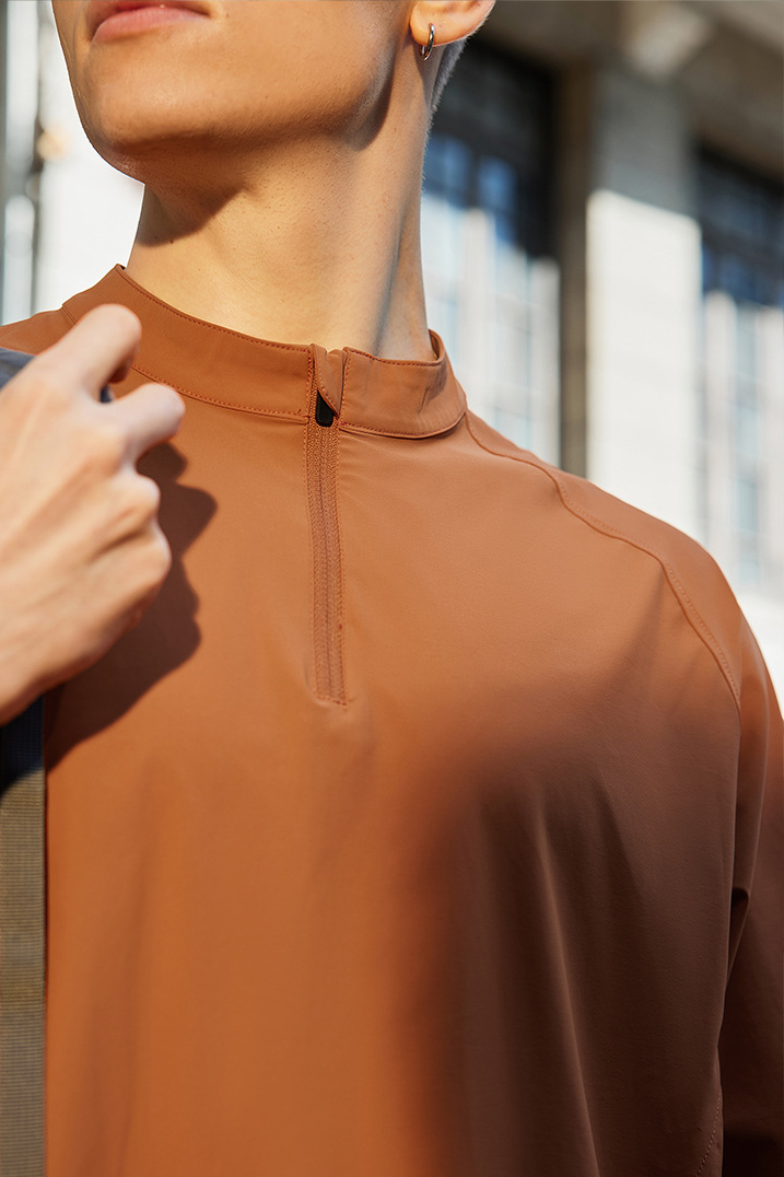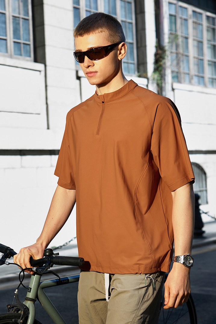 하이넥 디자인의 스포츠 티셔츠입니다.