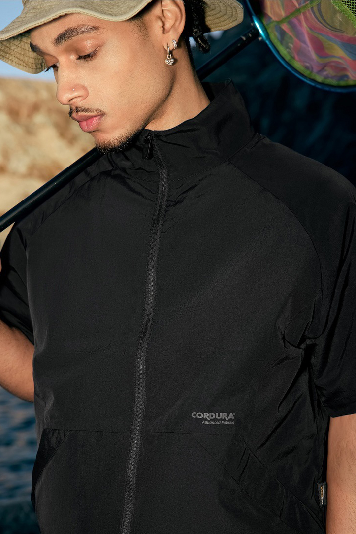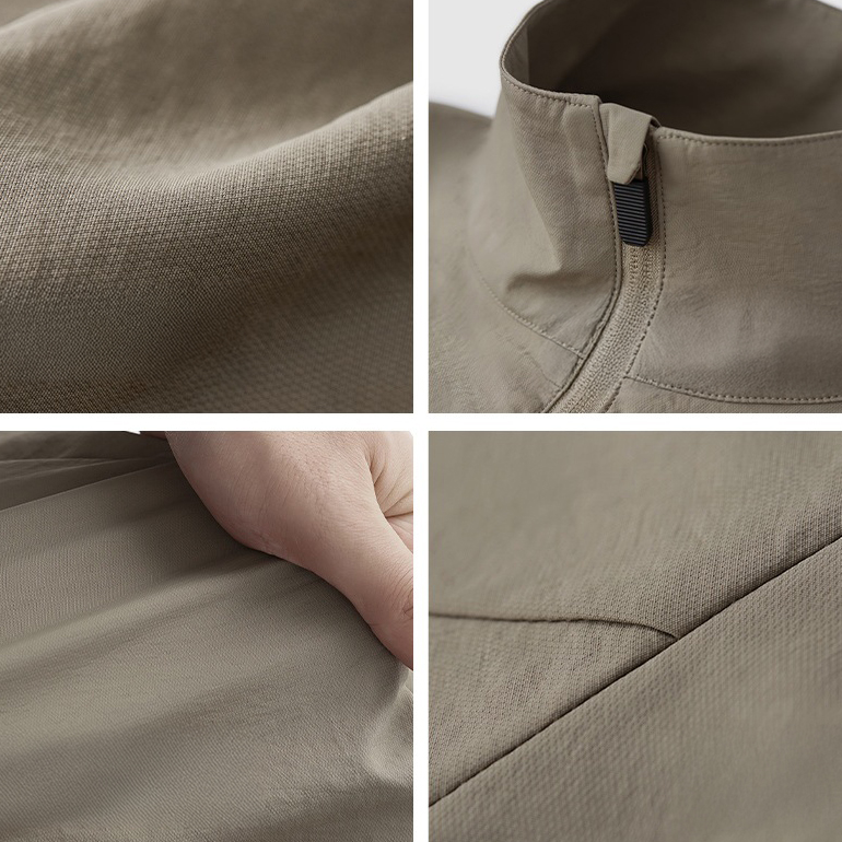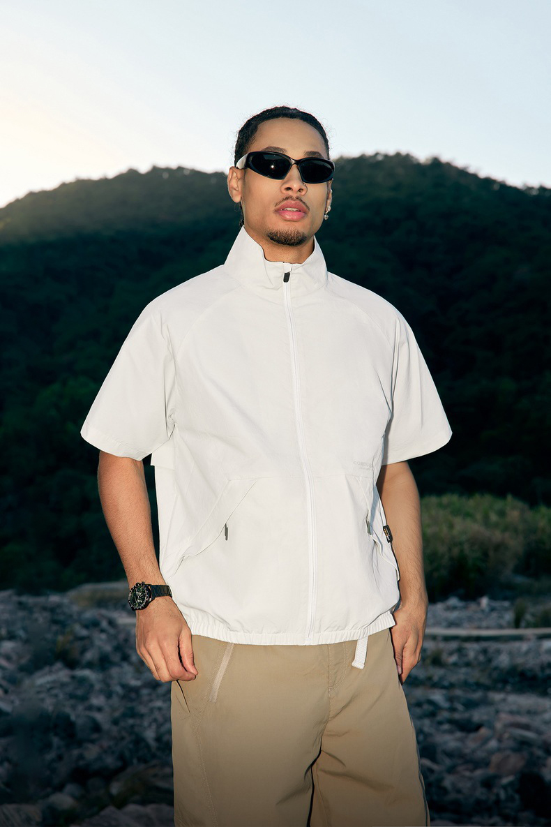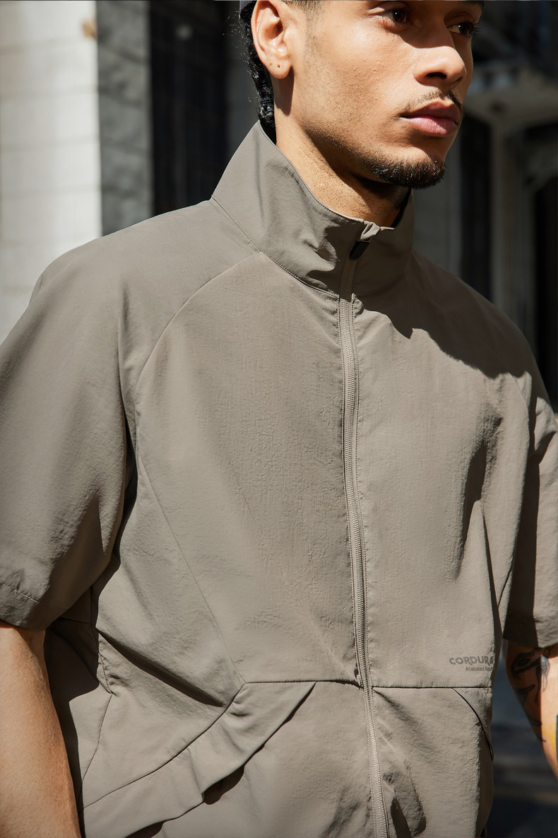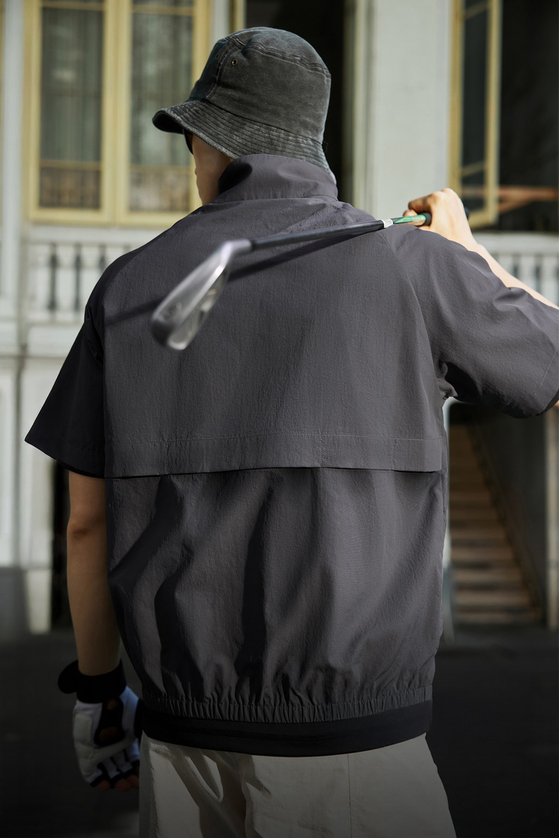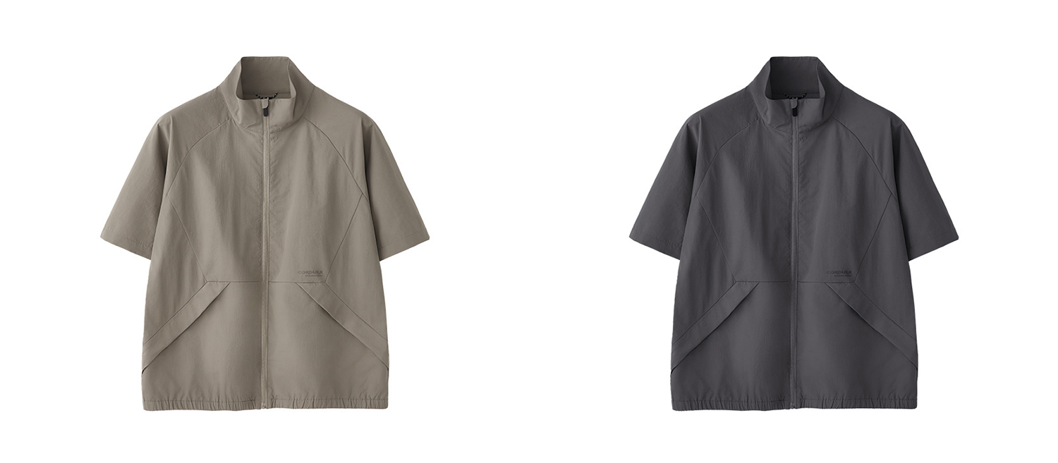 스탠드 카라 디자인의 카라 집업 티셔츠입니다.