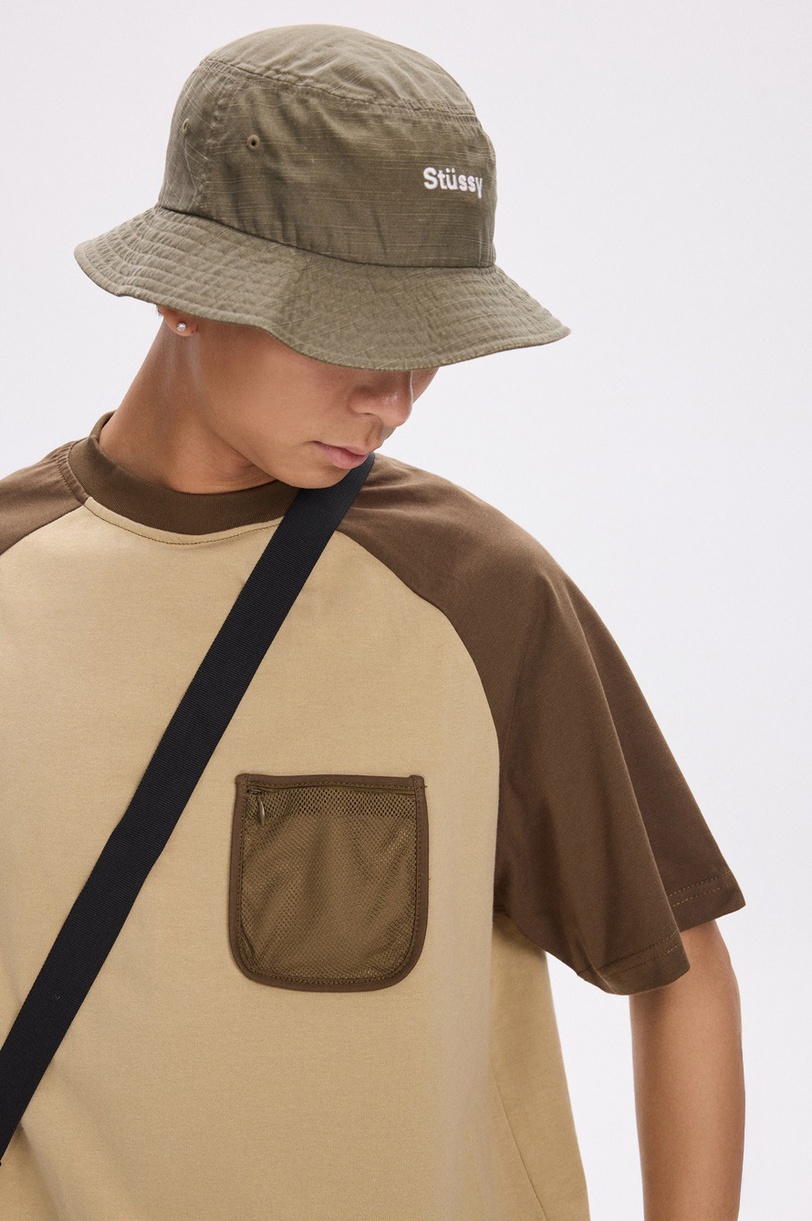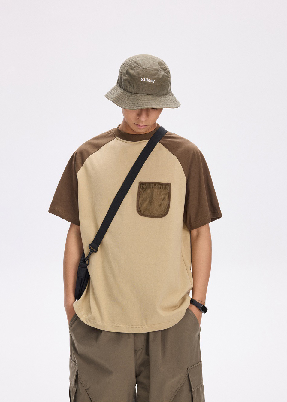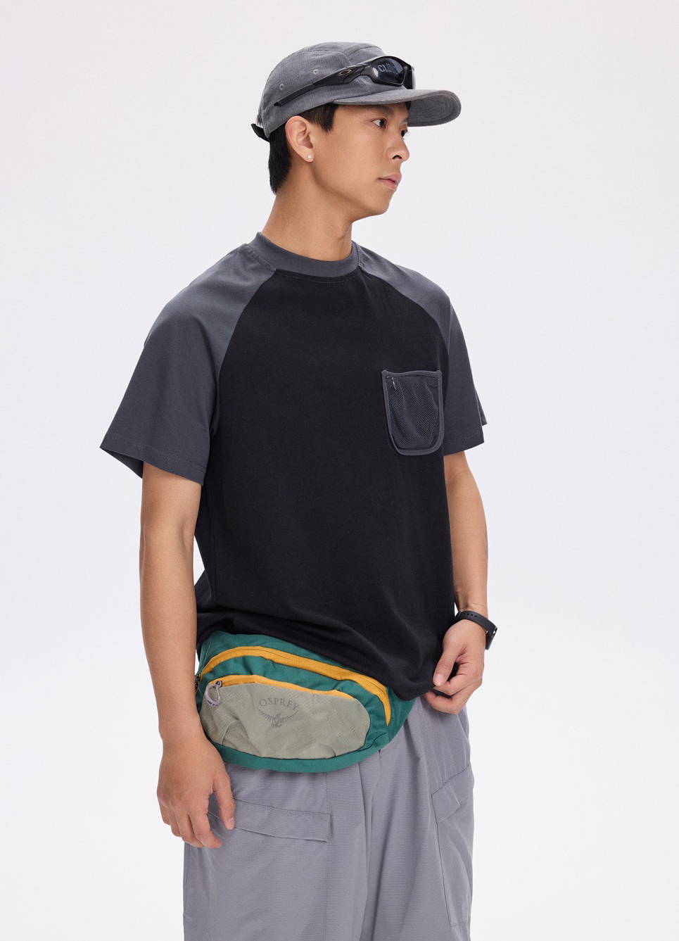 데일리 아웃도어 스타일의 유니섹스 래글런 티셔츠입니다.