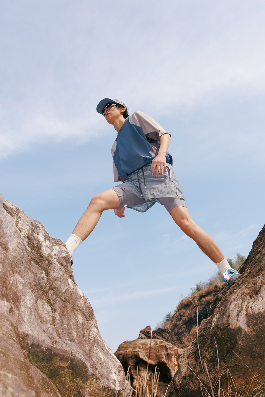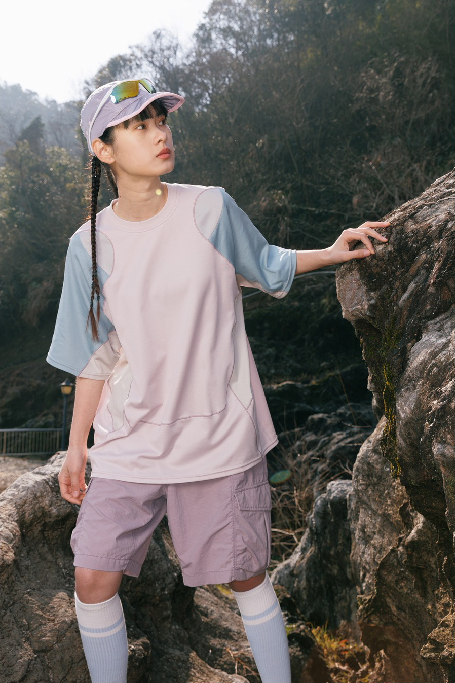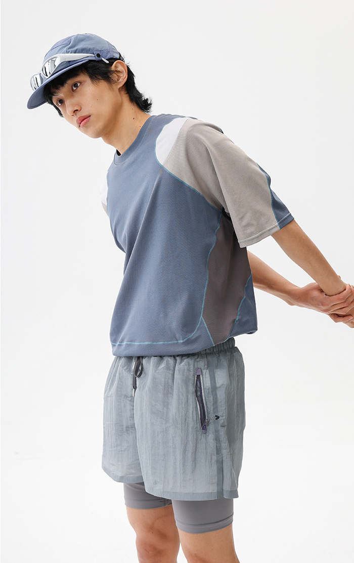 스포티한 감성과 테크웨어 무드를 동시에 지닌 티셔츠입니다.