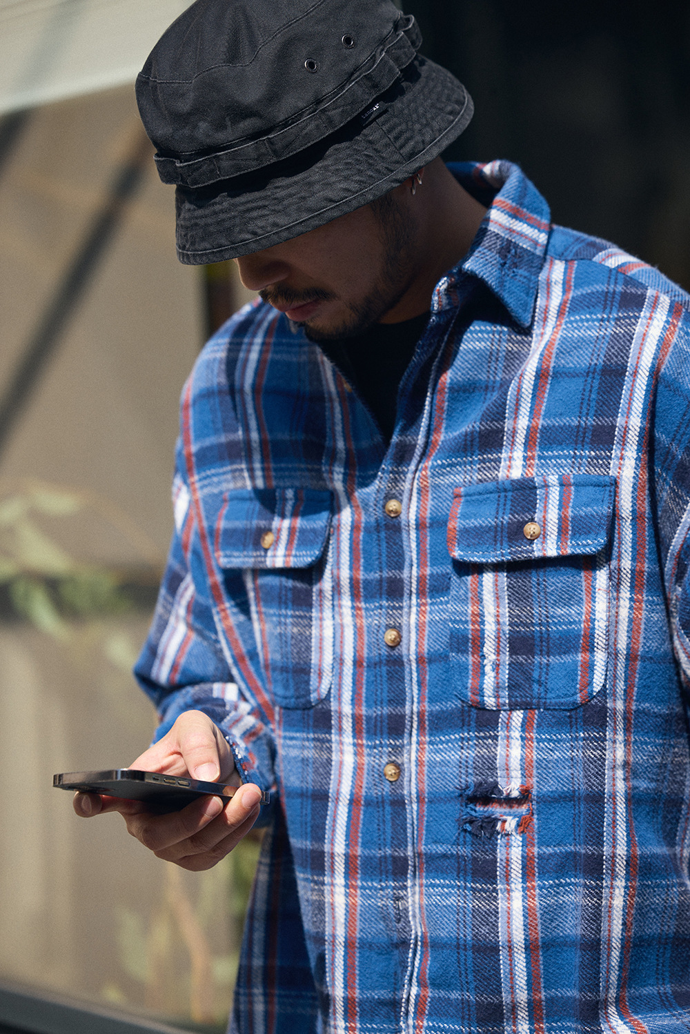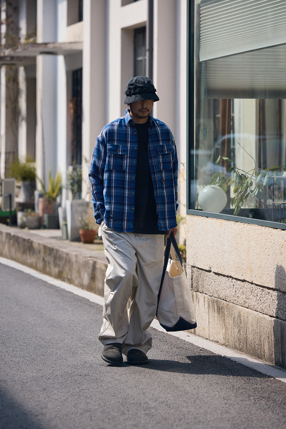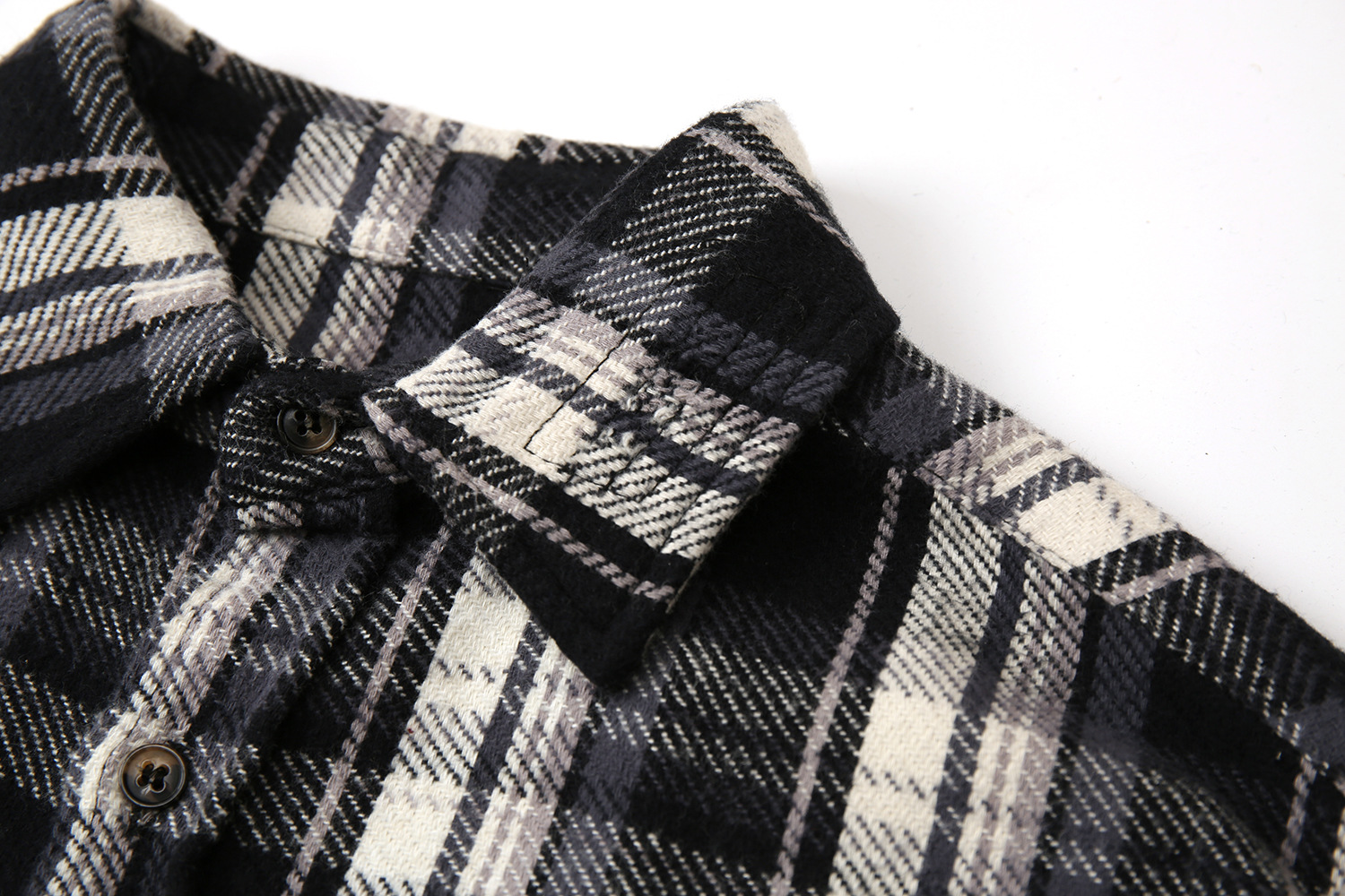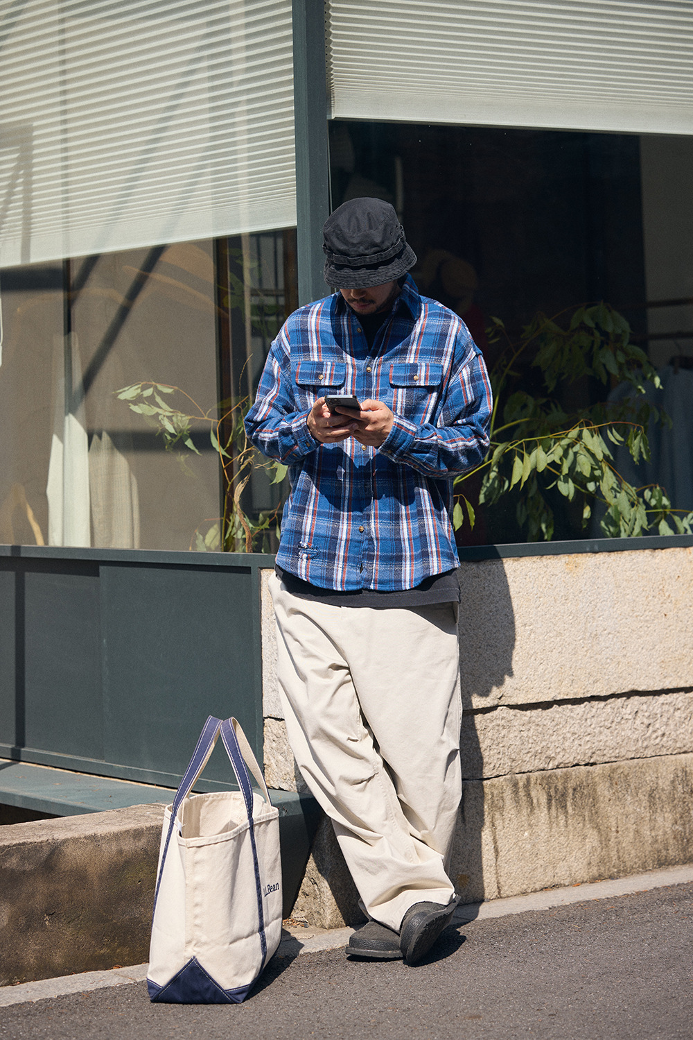 클래식한 체크 패턴과 넉넉한 오버사이즈 핏의 워크셔츠입니다.
