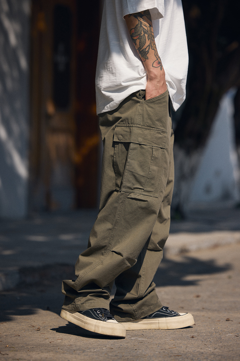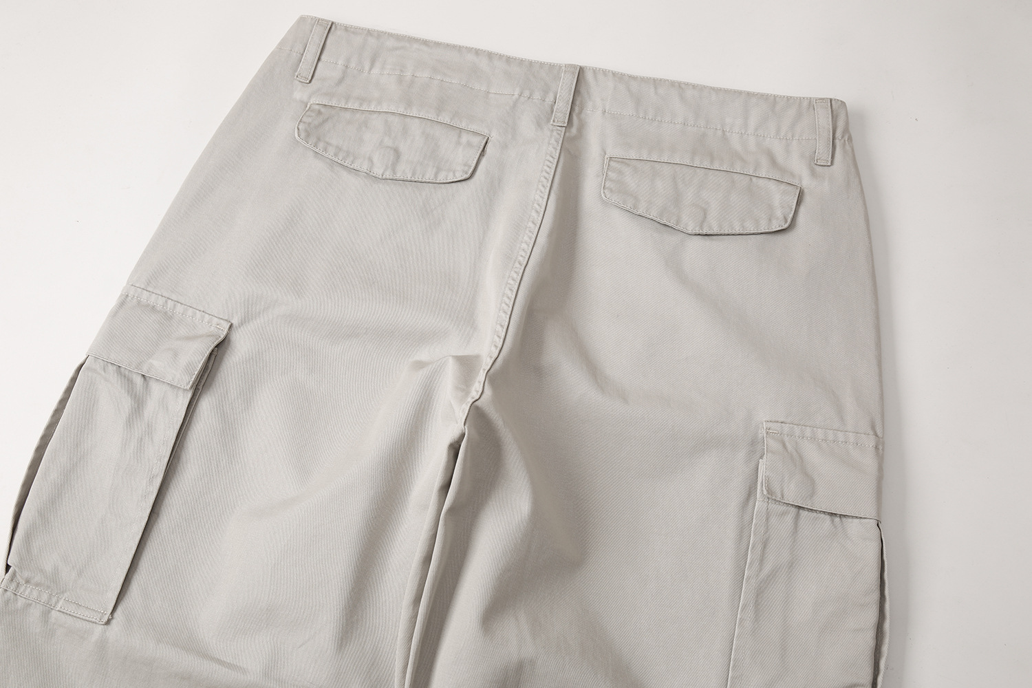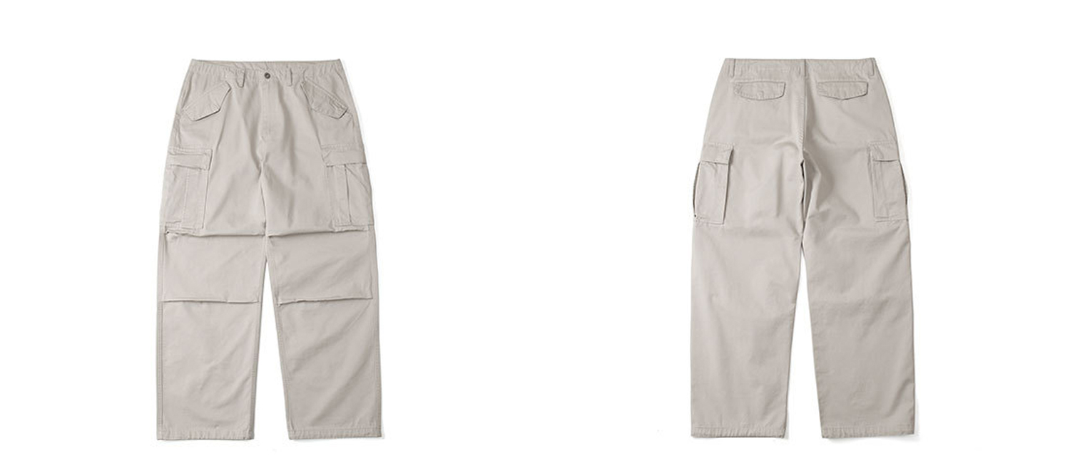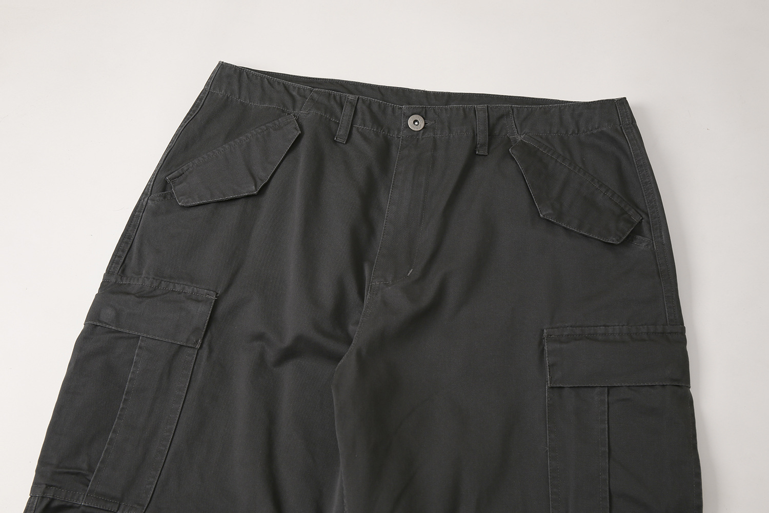 심플하고 실용적인 디자인의 워싱면 카고 팬츠입니다.
