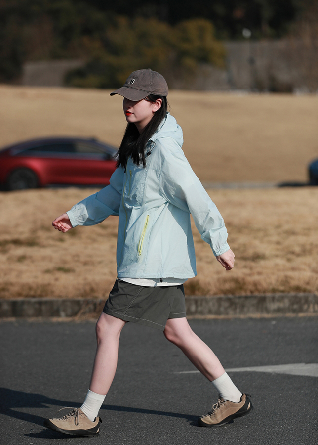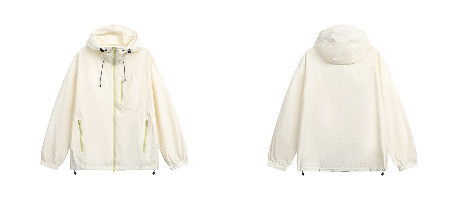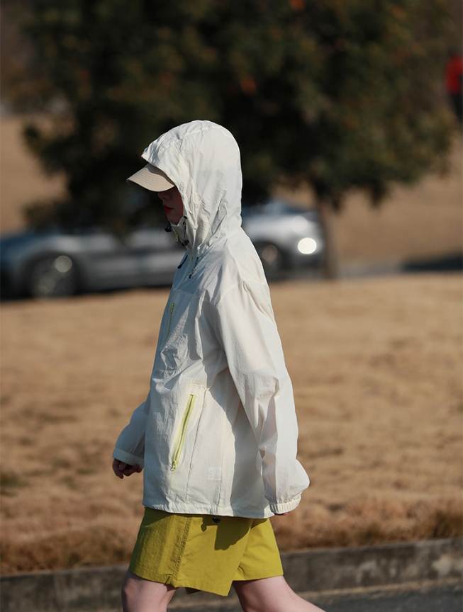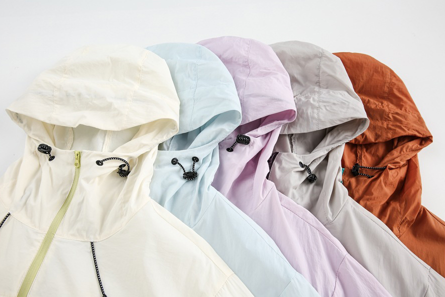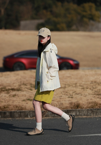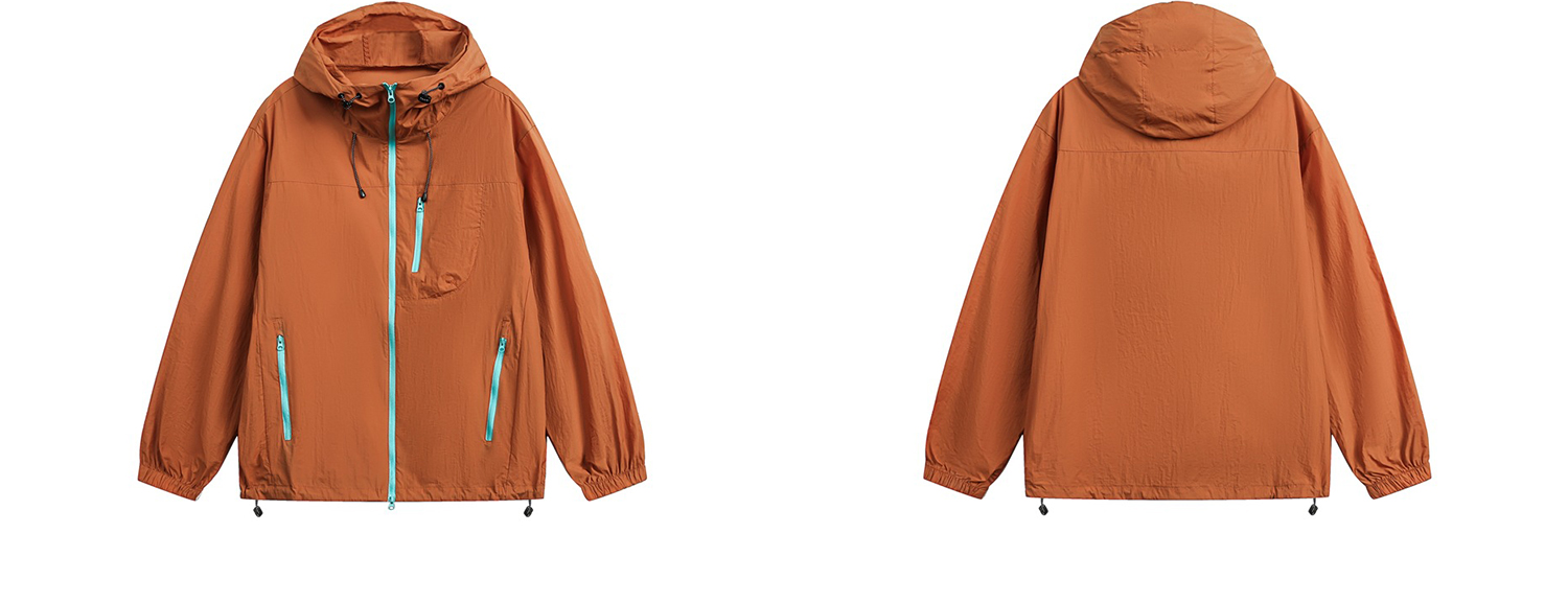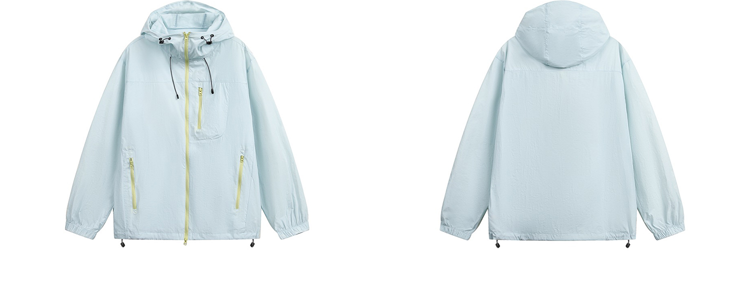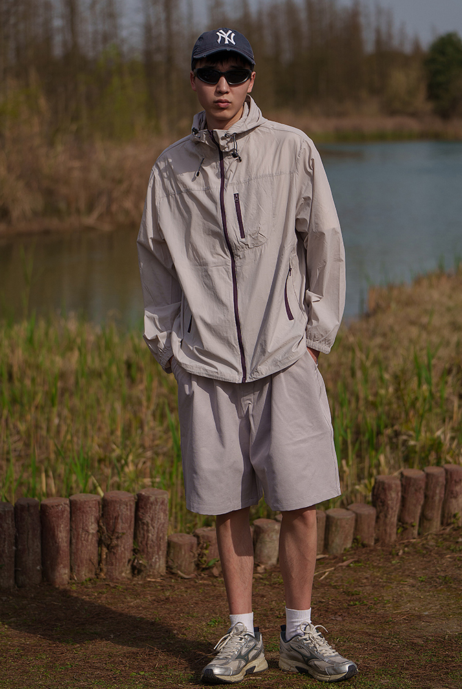 간절기 일상 속에서 가볍게 착용하기 좋은 컬러풀 후드 바람막이 자켓입니다.
