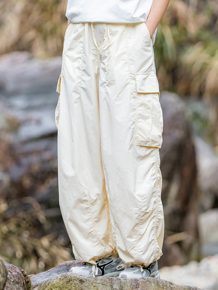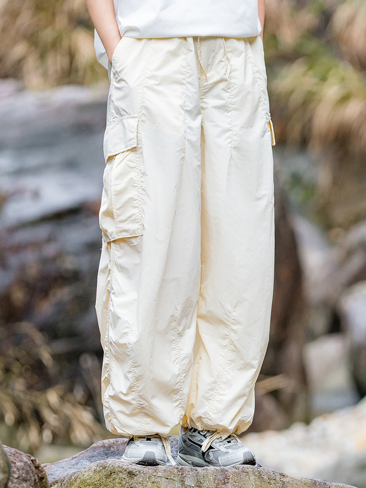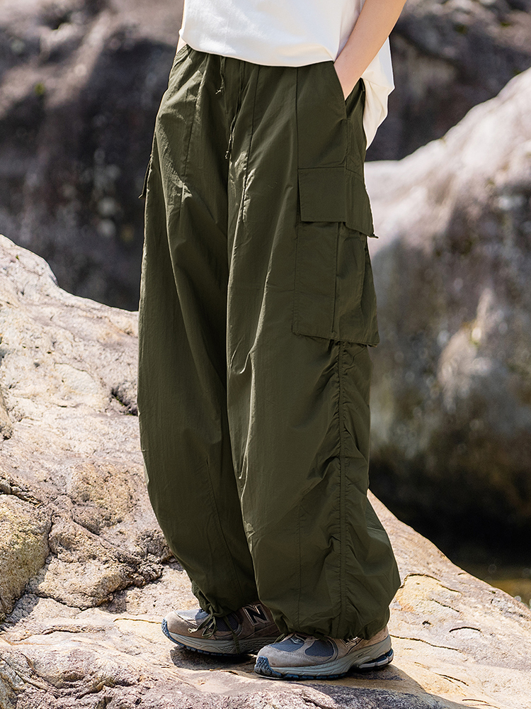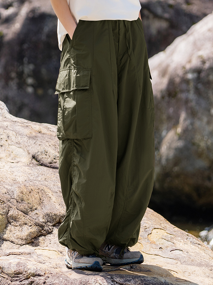 편안하면서도 스트릿 감성이 느껴지는 와이드 핏 카고 팬츠입니다.