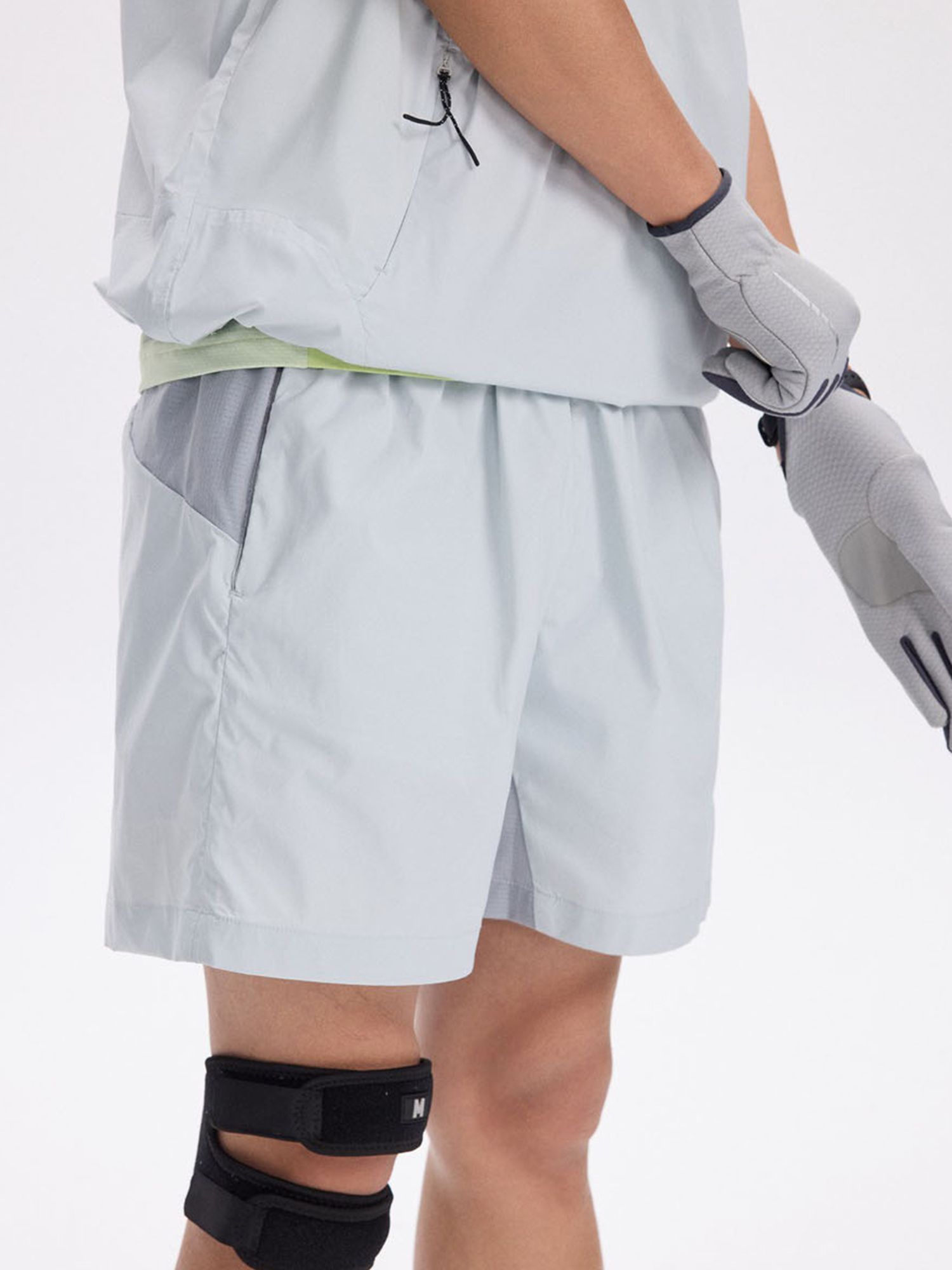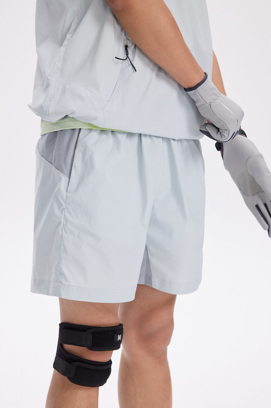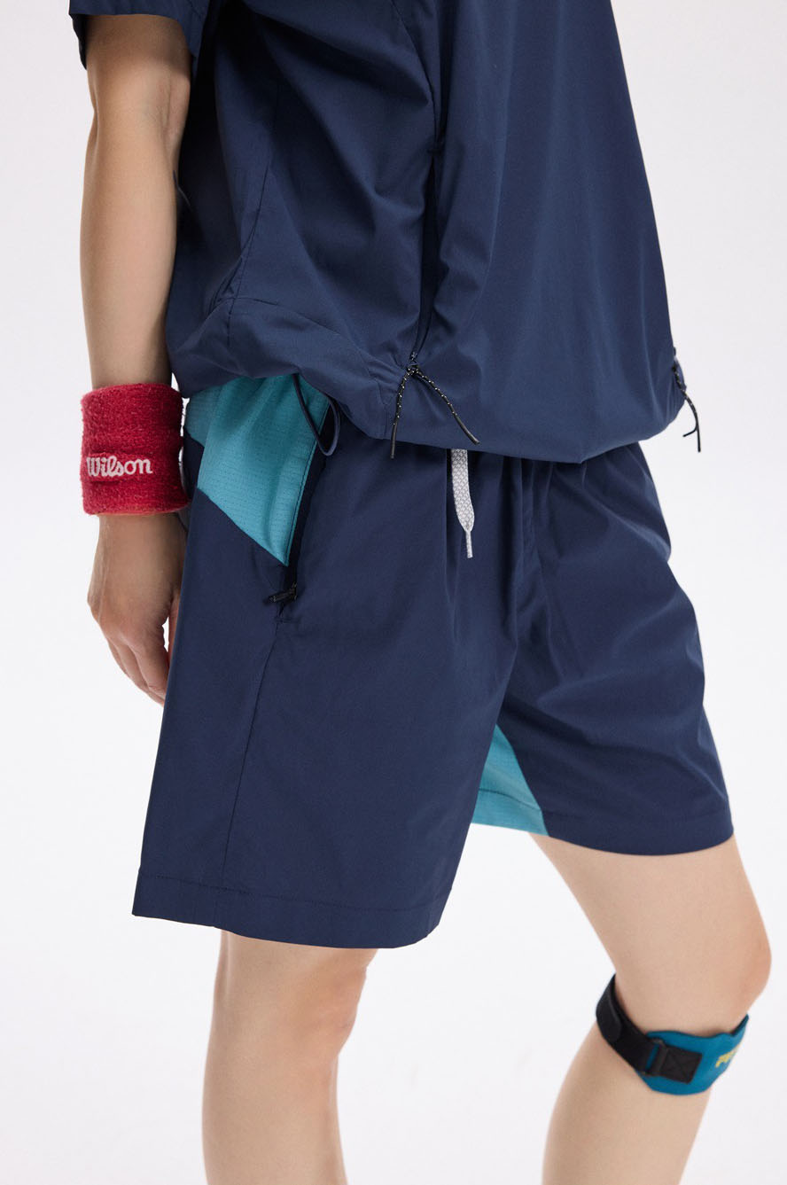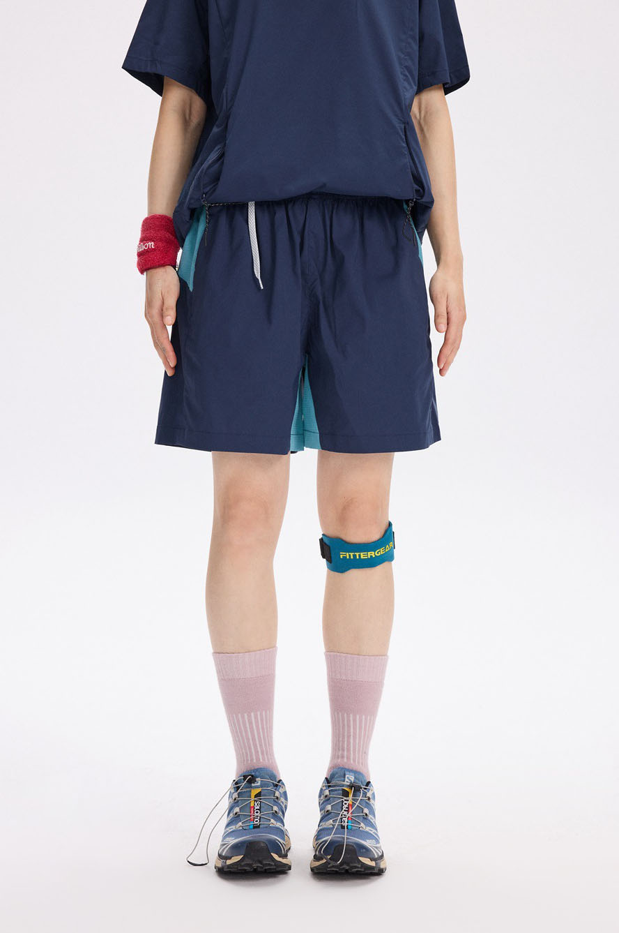 스포티한 무드가 돋보이는 배색 디자인의 기능성 숏팬츠입니다.