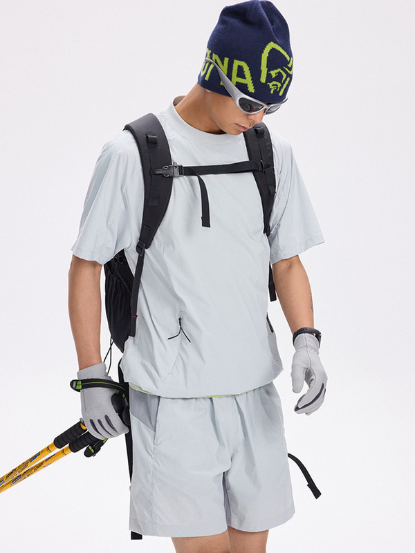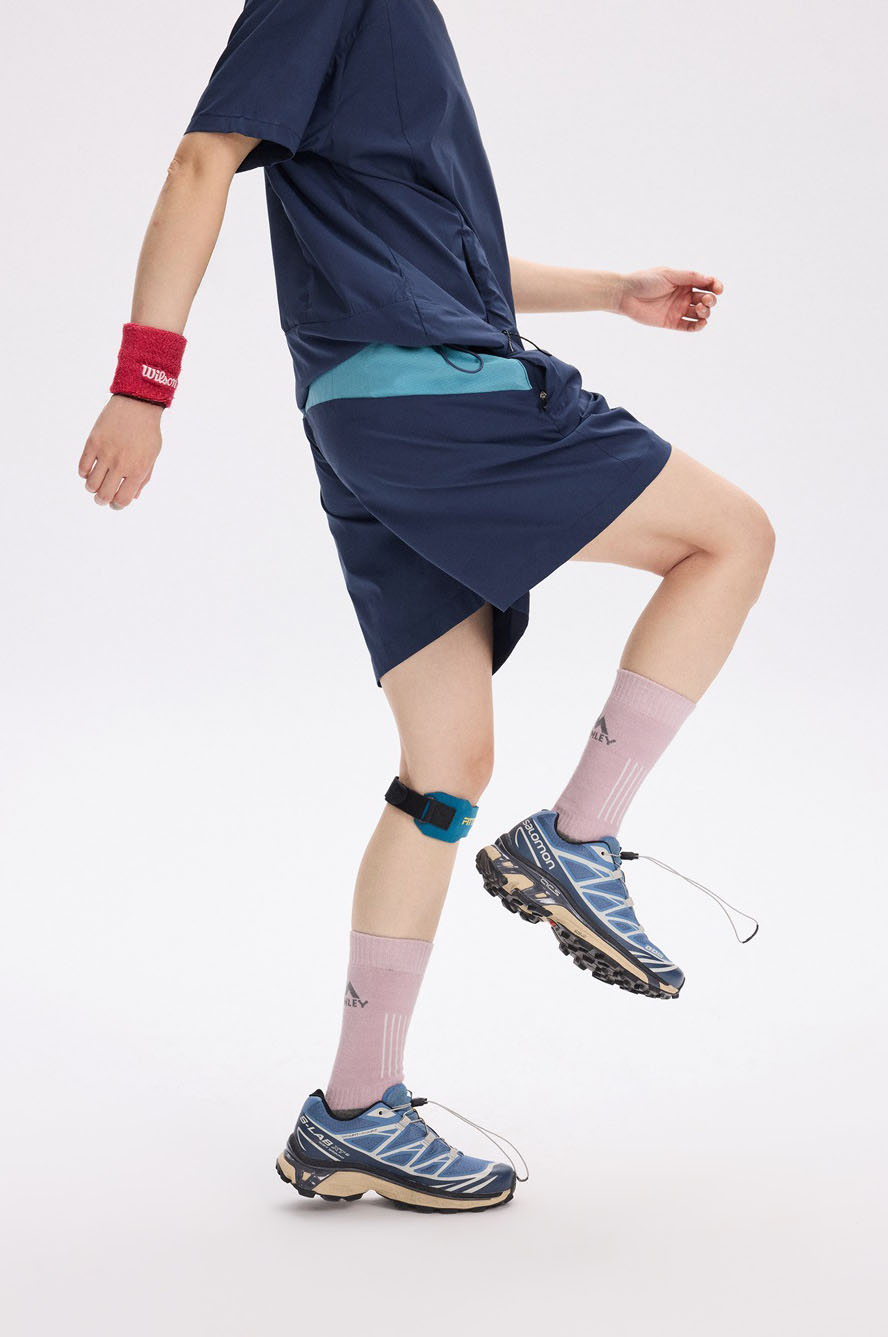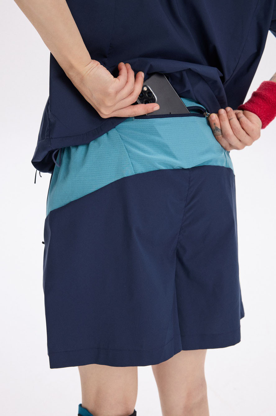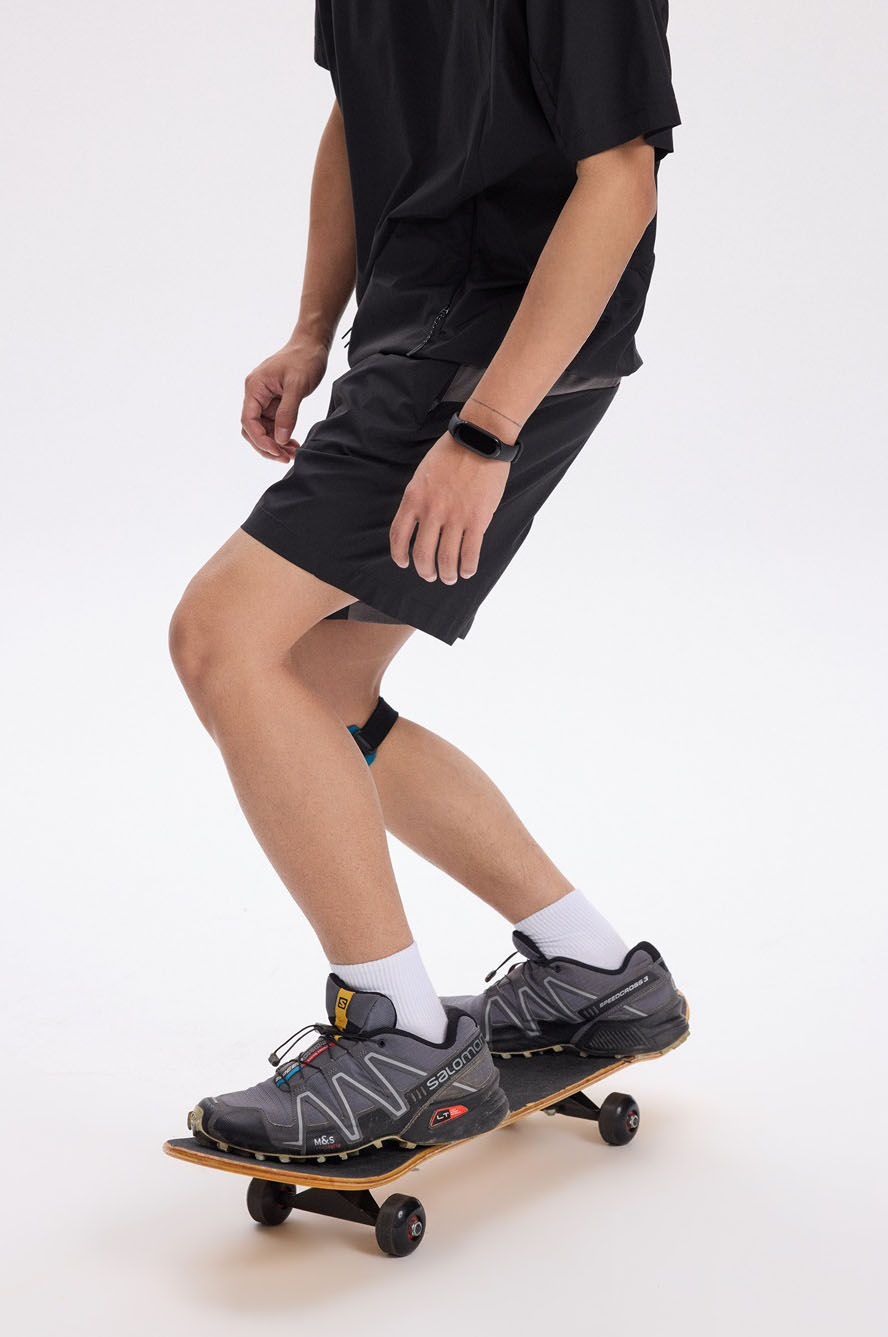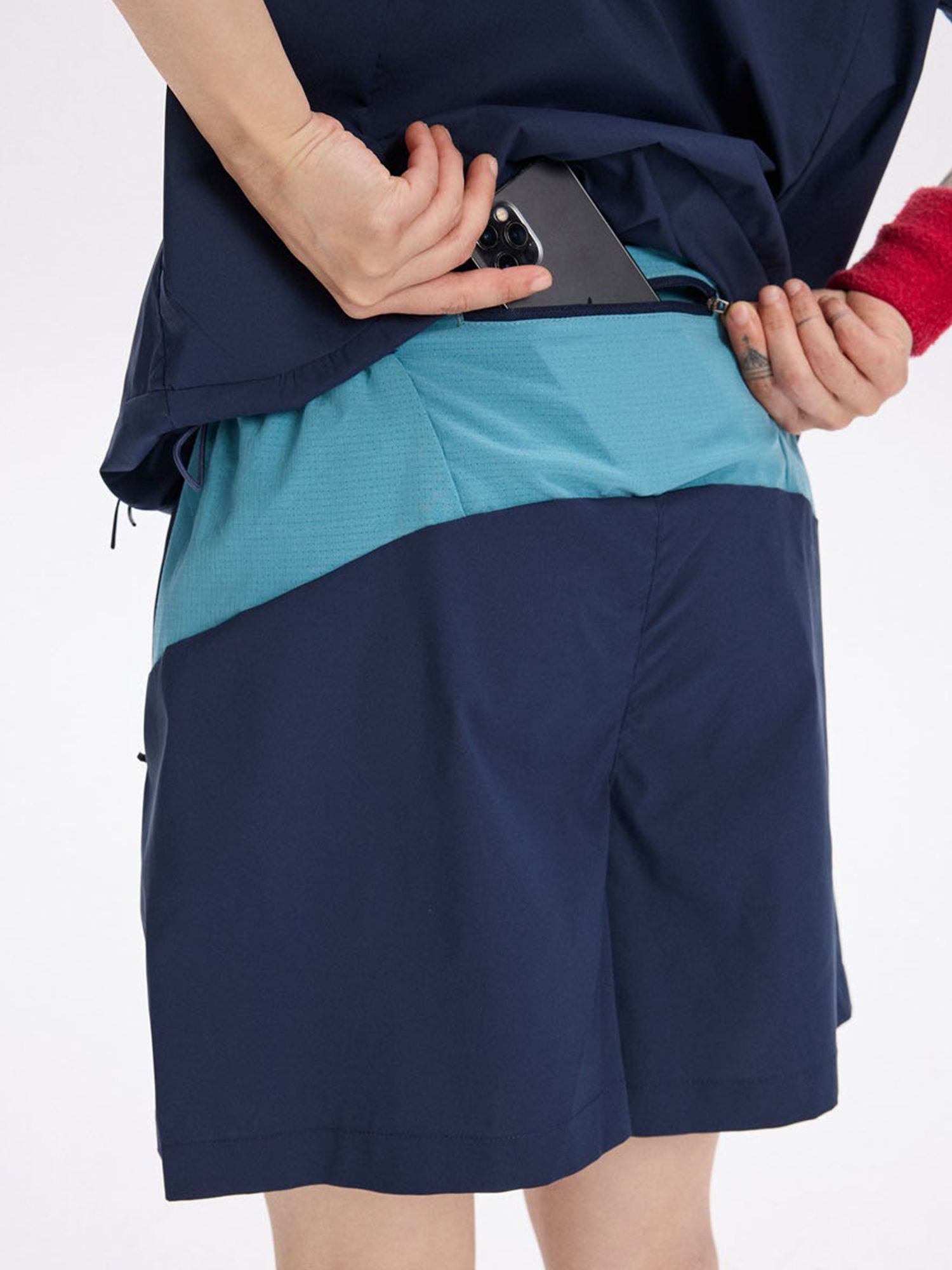 스포티한 무드가 돋보이는 배색 디자인의 기능성 숏팬츠입니다.