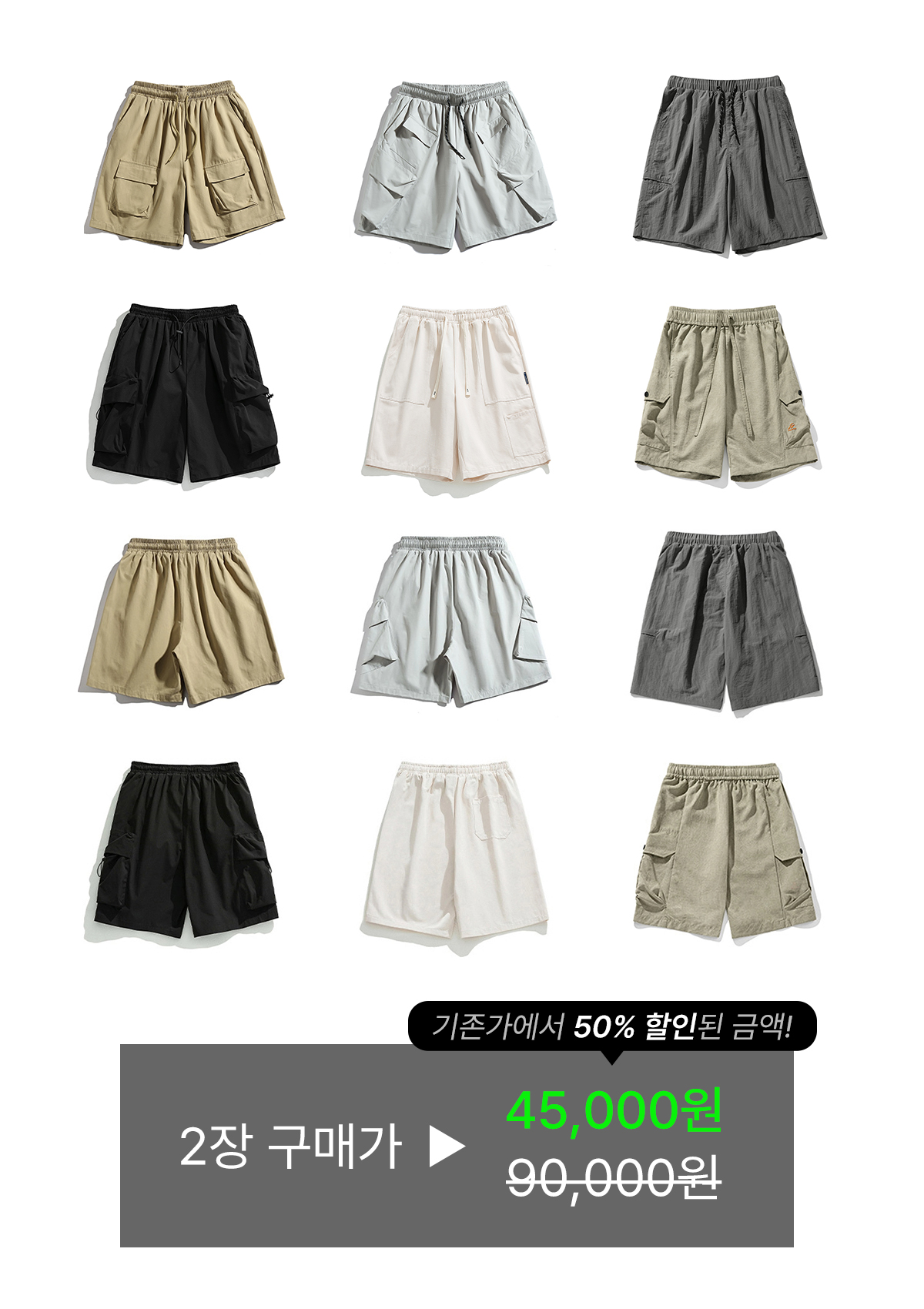 기존 가격 45,000원의 팬츠를 50% 이상 할인된 가격으로 2장 구매 가능!
