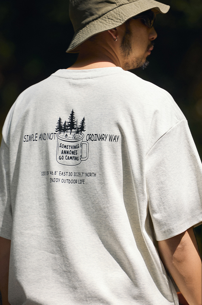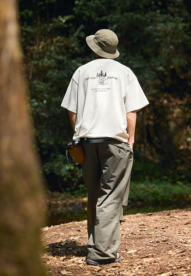 감성적인 캠핑 그래픽이 더해진 캐주얼한 무드의 루즈핏 반팔 티셔츠입니다.