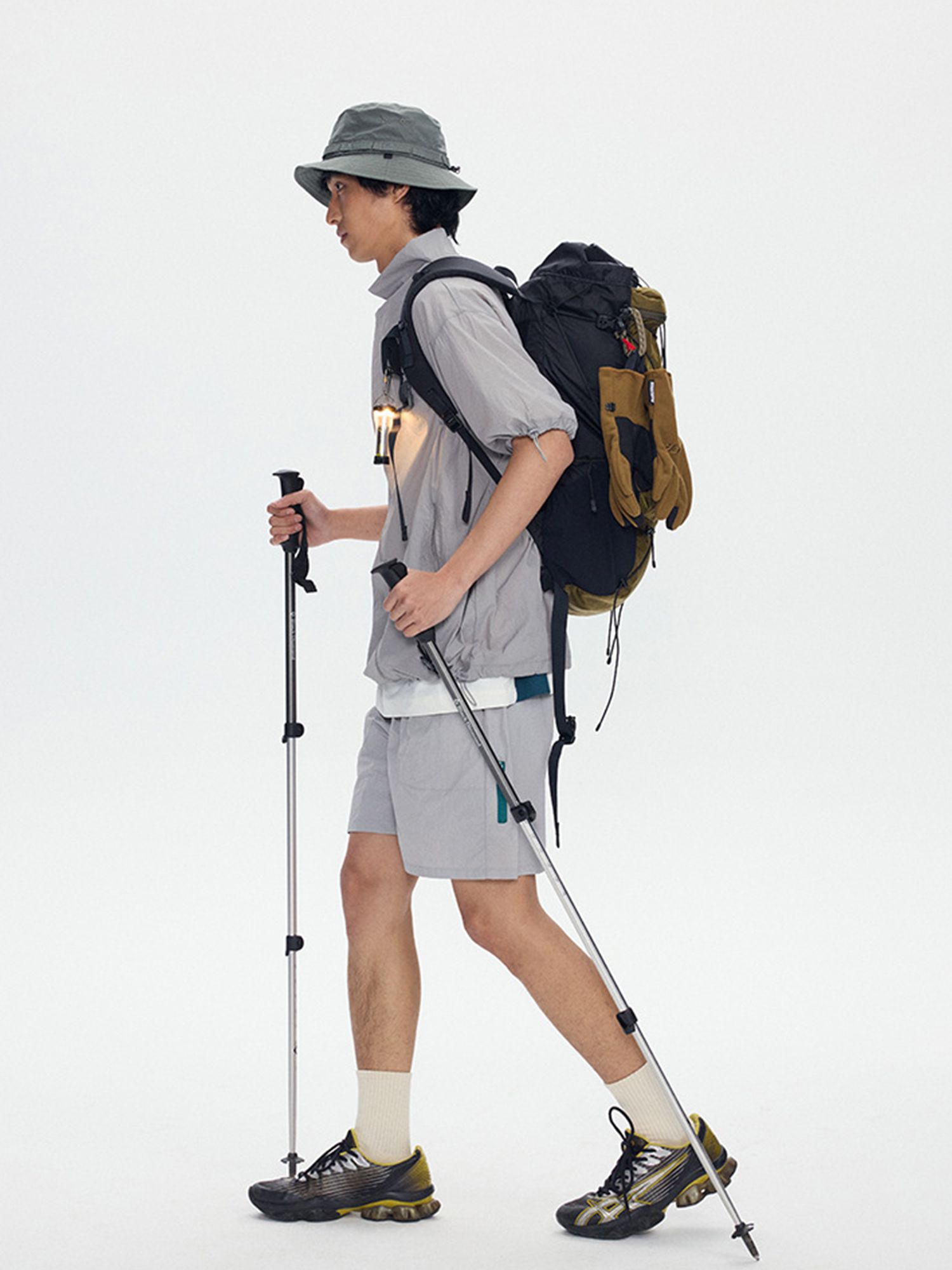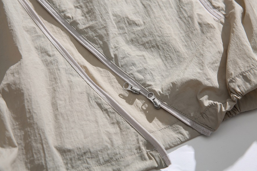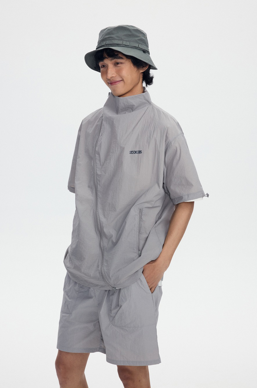 사선 지퍼 디테일과 스트링 포인트가 어우러진 루즈핏 하프슬리브 윈드 아노락입니다.