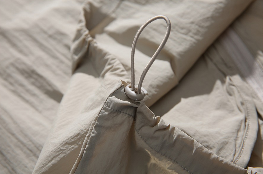 - 밑단과 소매 끝단에 스트링이 내장되어 핏 조절 가능