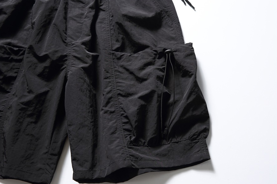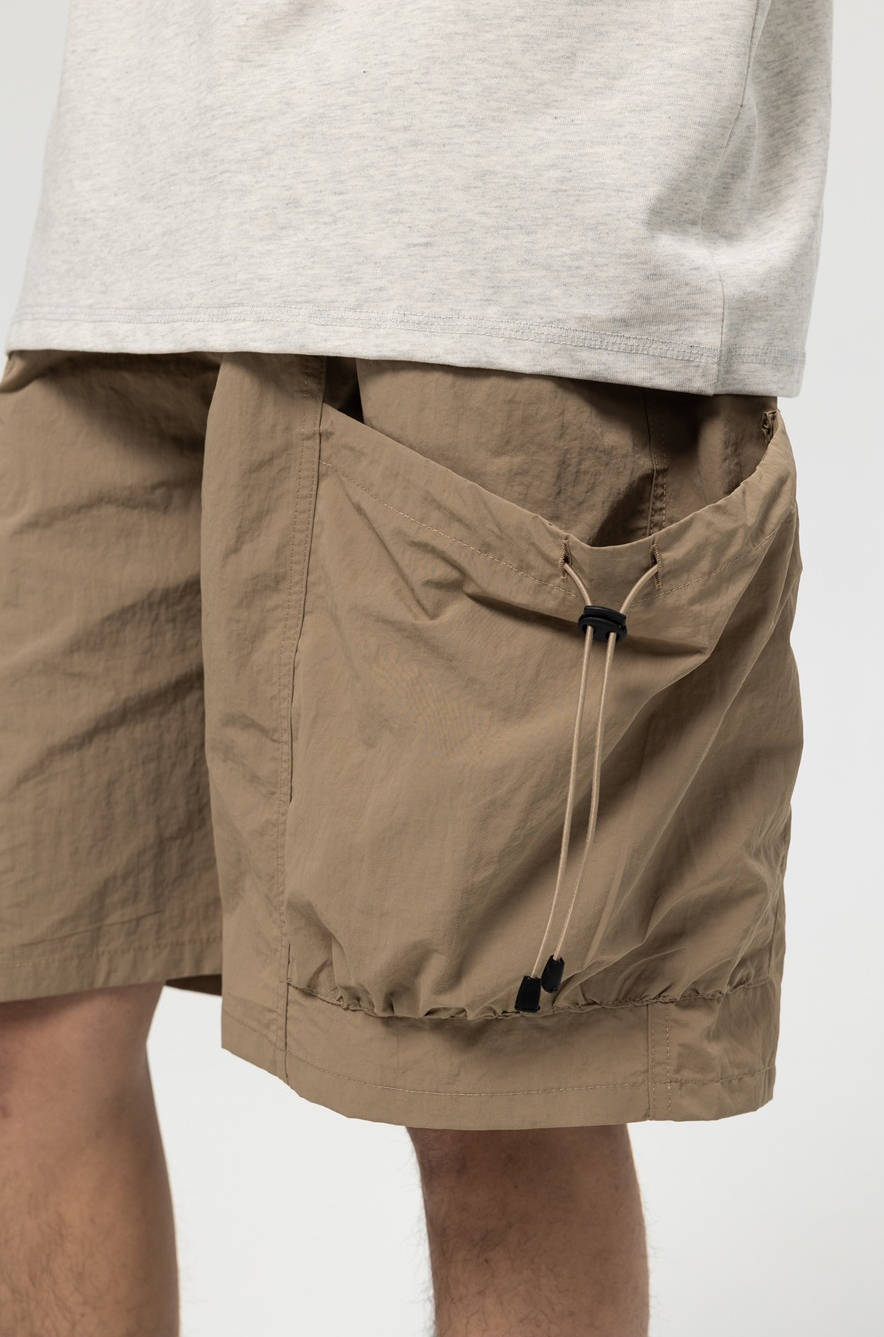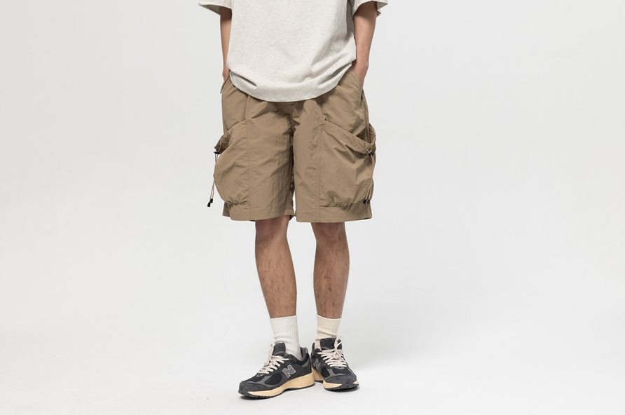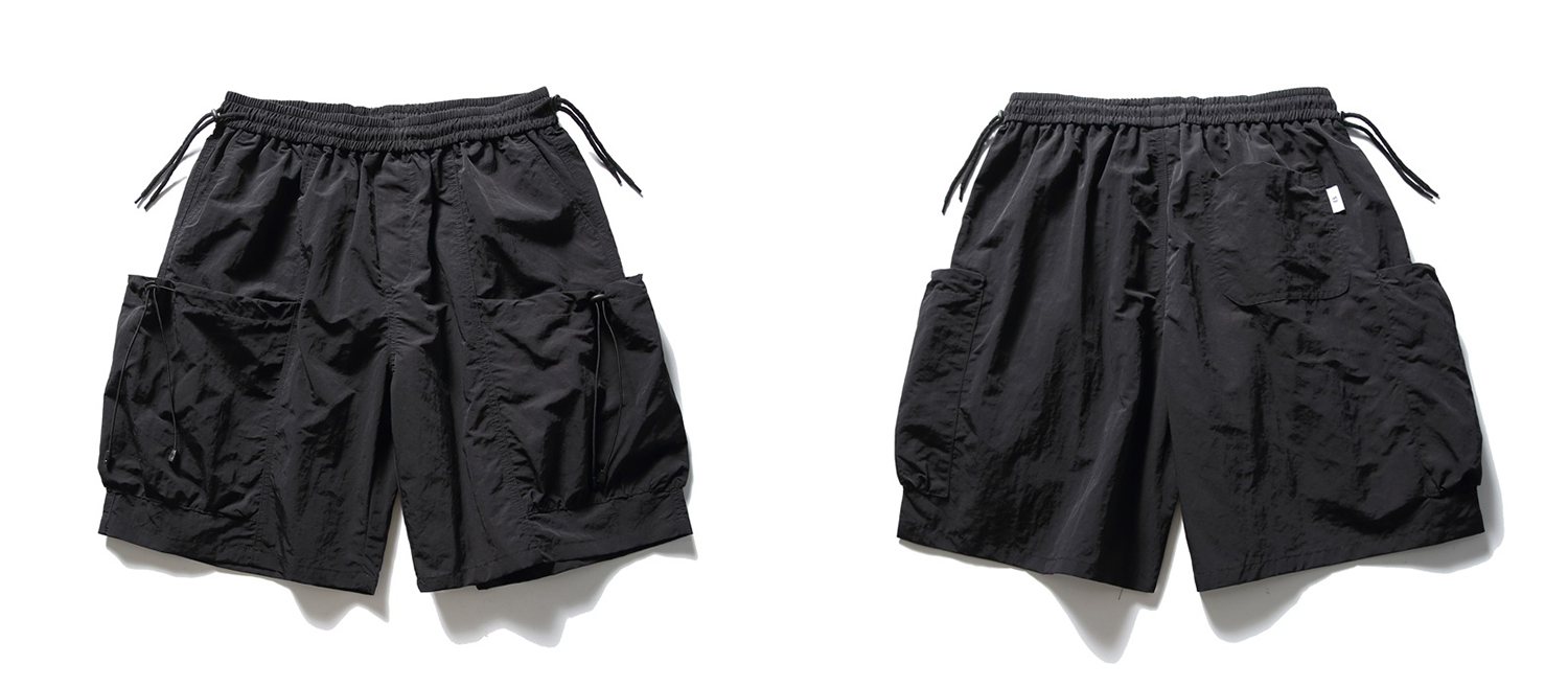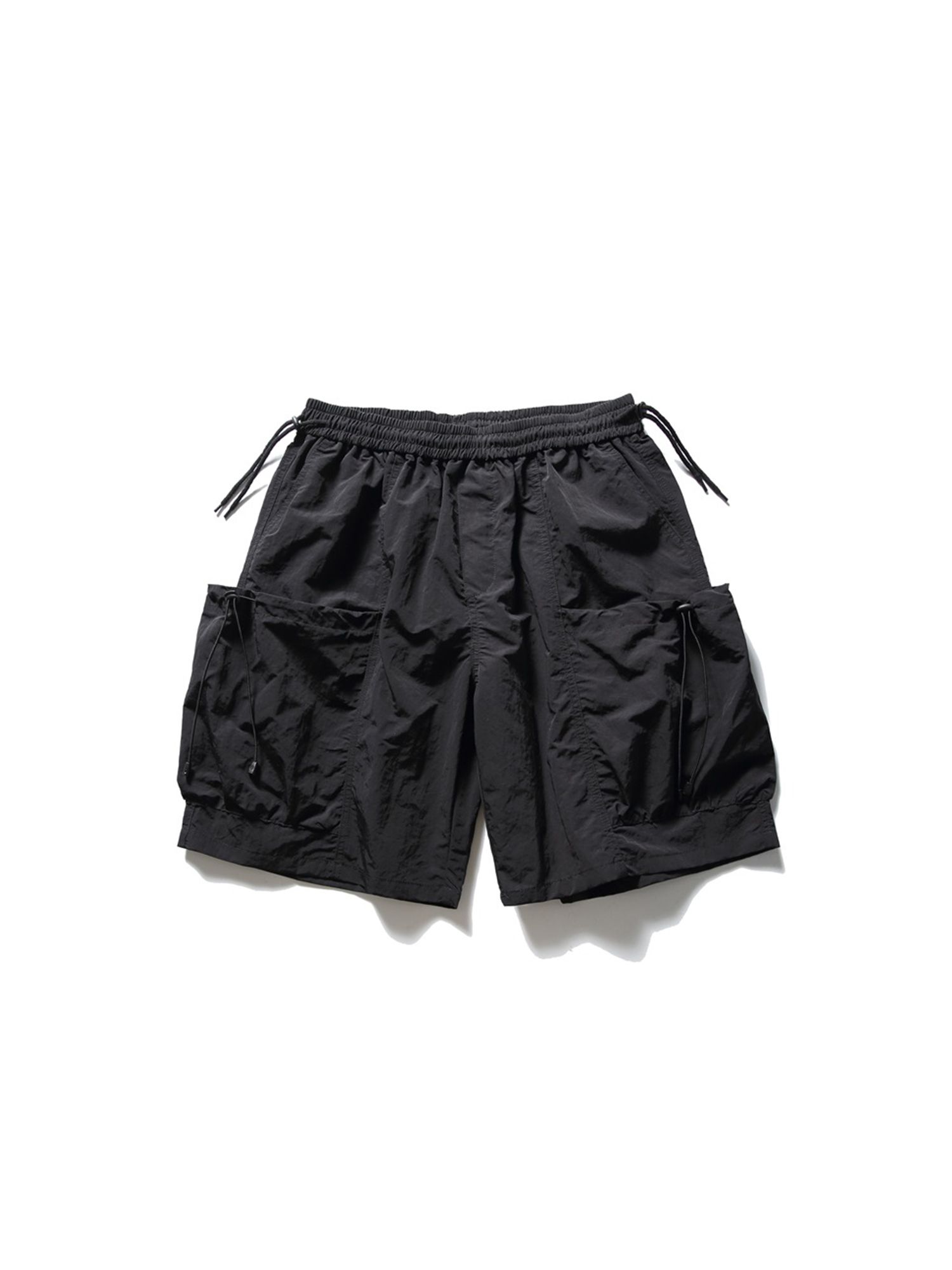 와이드한 실루엣에 입체 포켓 디테일이 더해진 나일론 카고 쇼츠입니다.