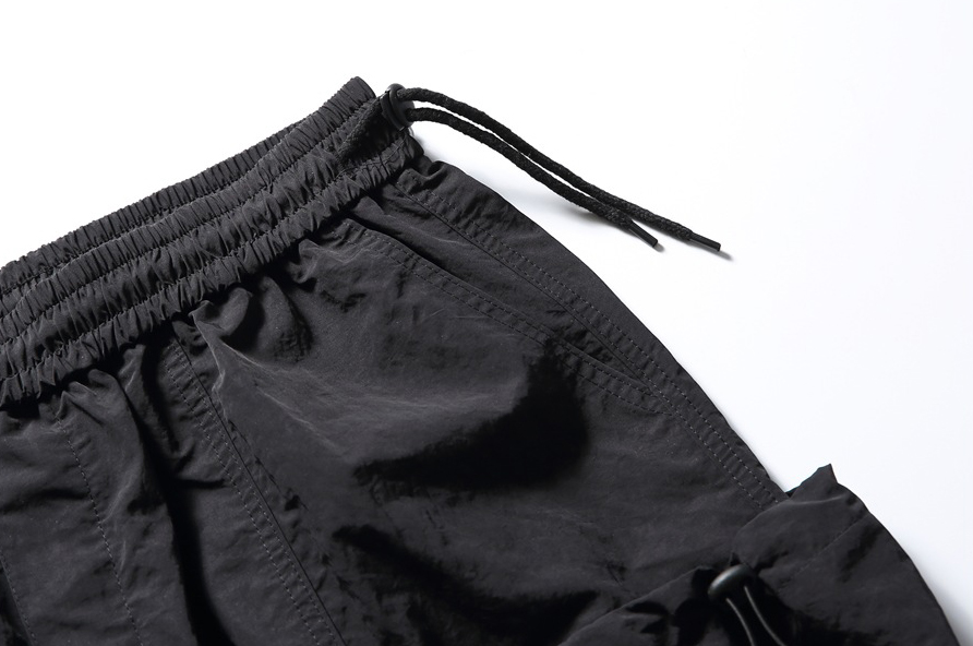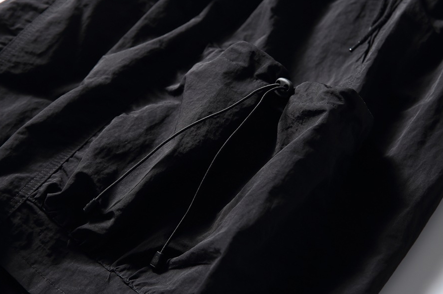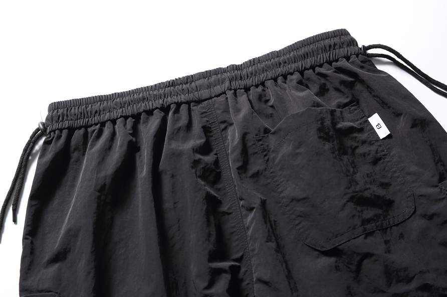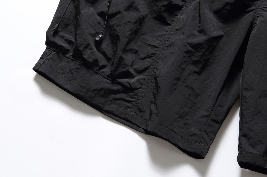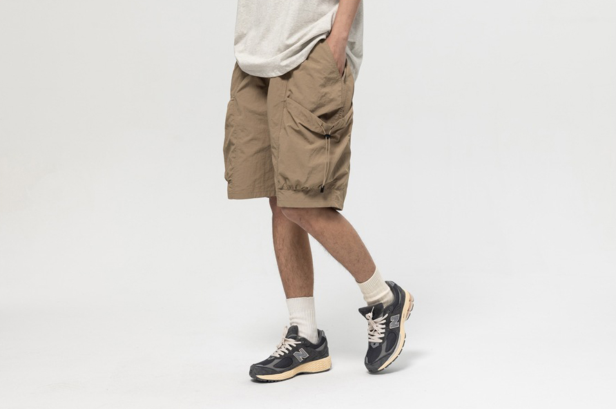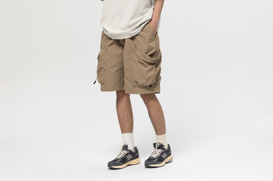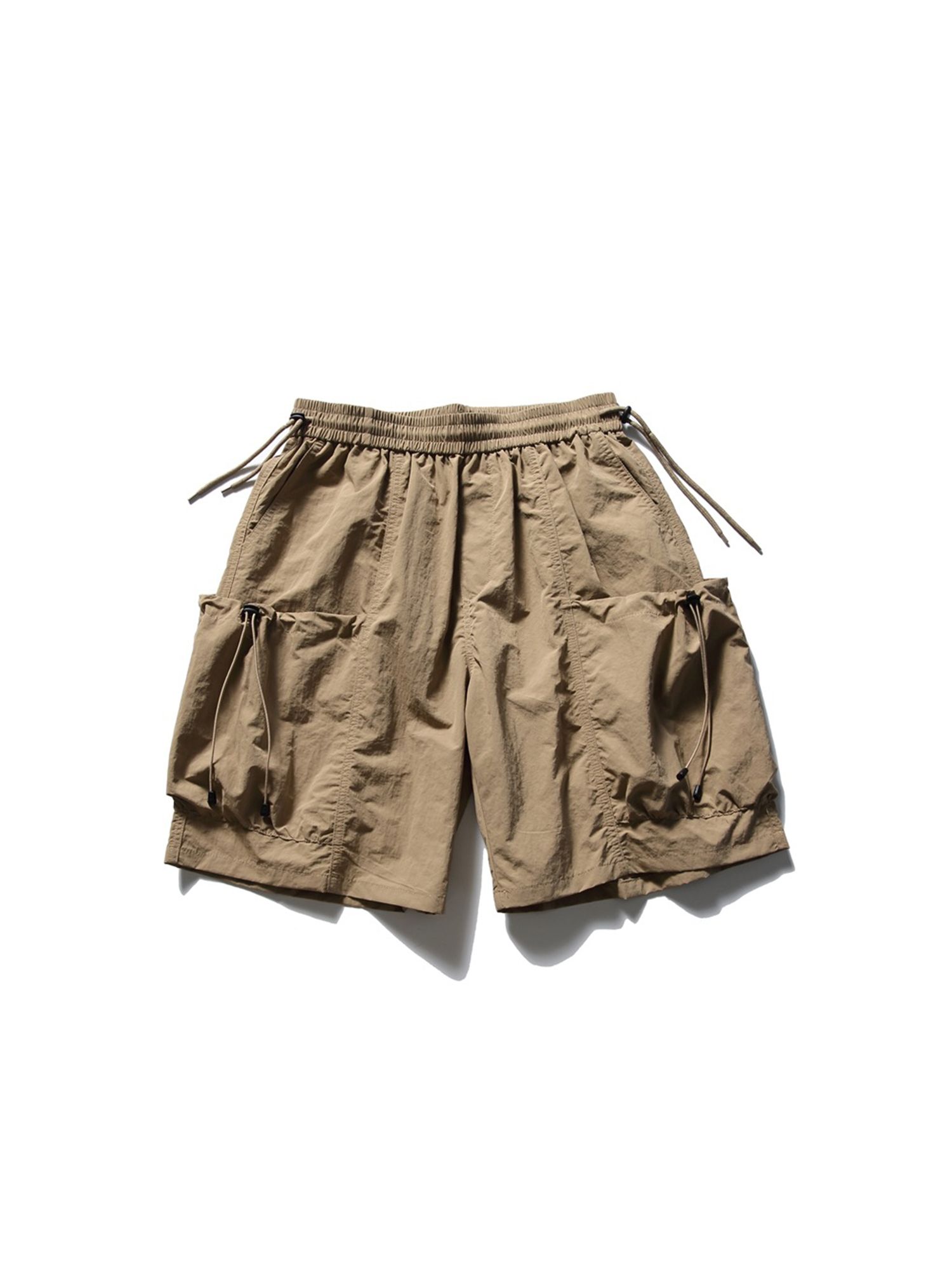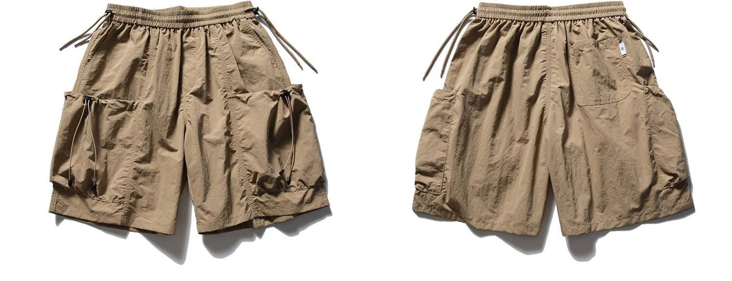 와이드한 실루엣에 입체 포켓 디테일이 더해진 나일론 카고 쇼츠입니다.