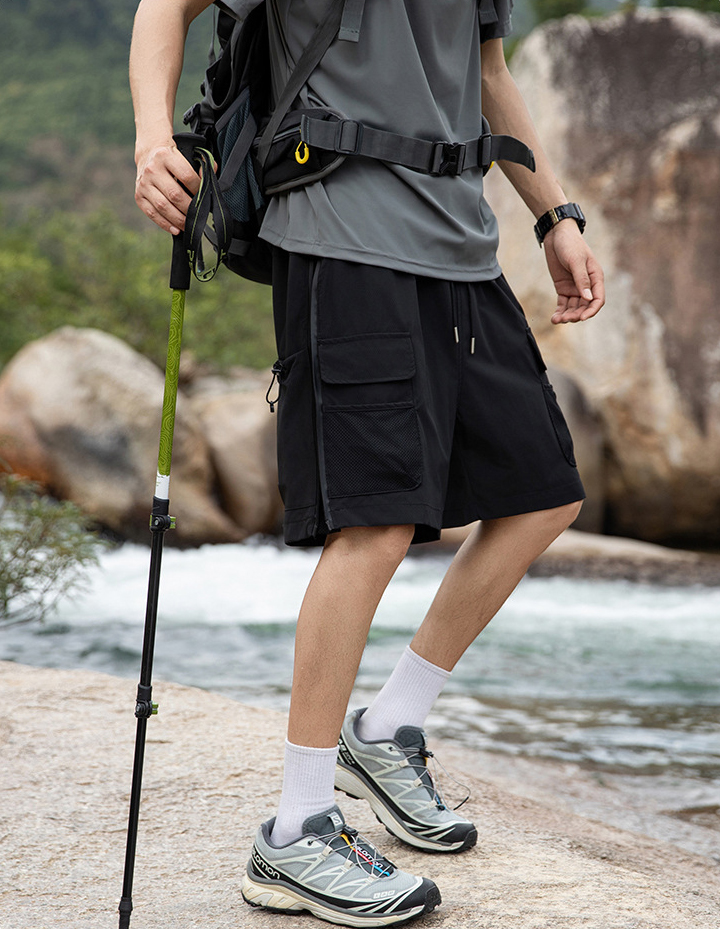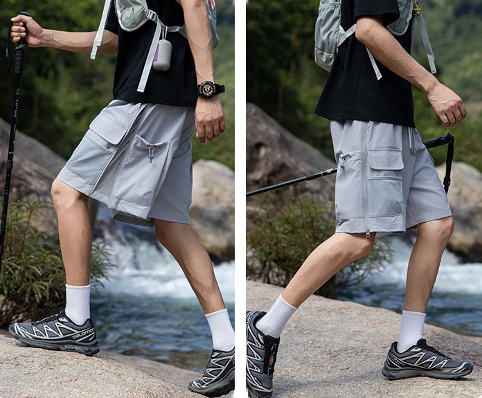 가볍고 통기성이 뛰어나 여름철 야외활동에 적합한 기능성 카고 반바지입니다.
