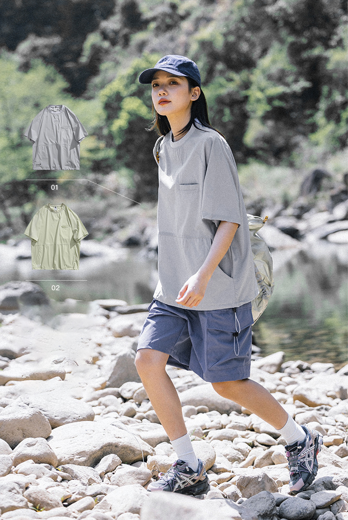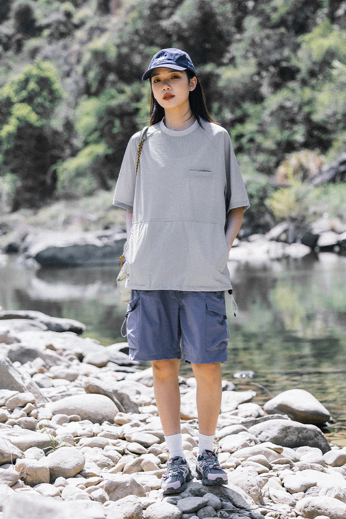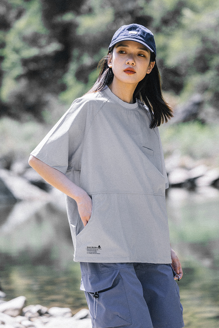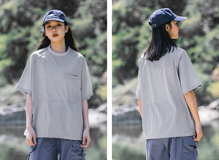 가볍고 신축성이 좋은 소재로 제작된 오버핏 래글런 티셔츠입니다.