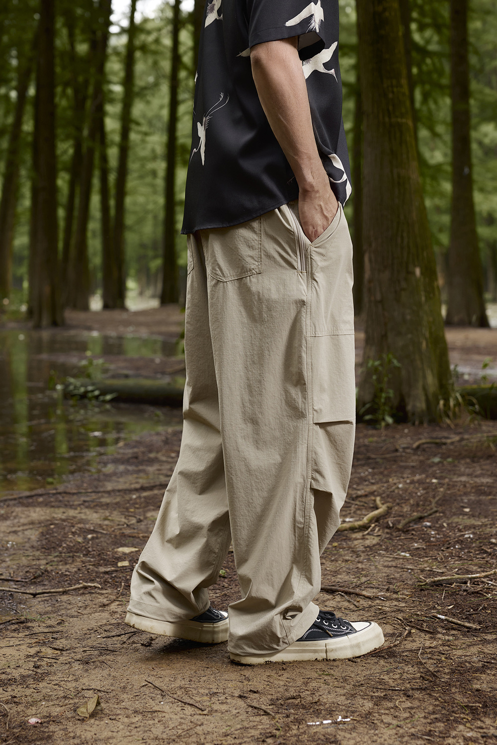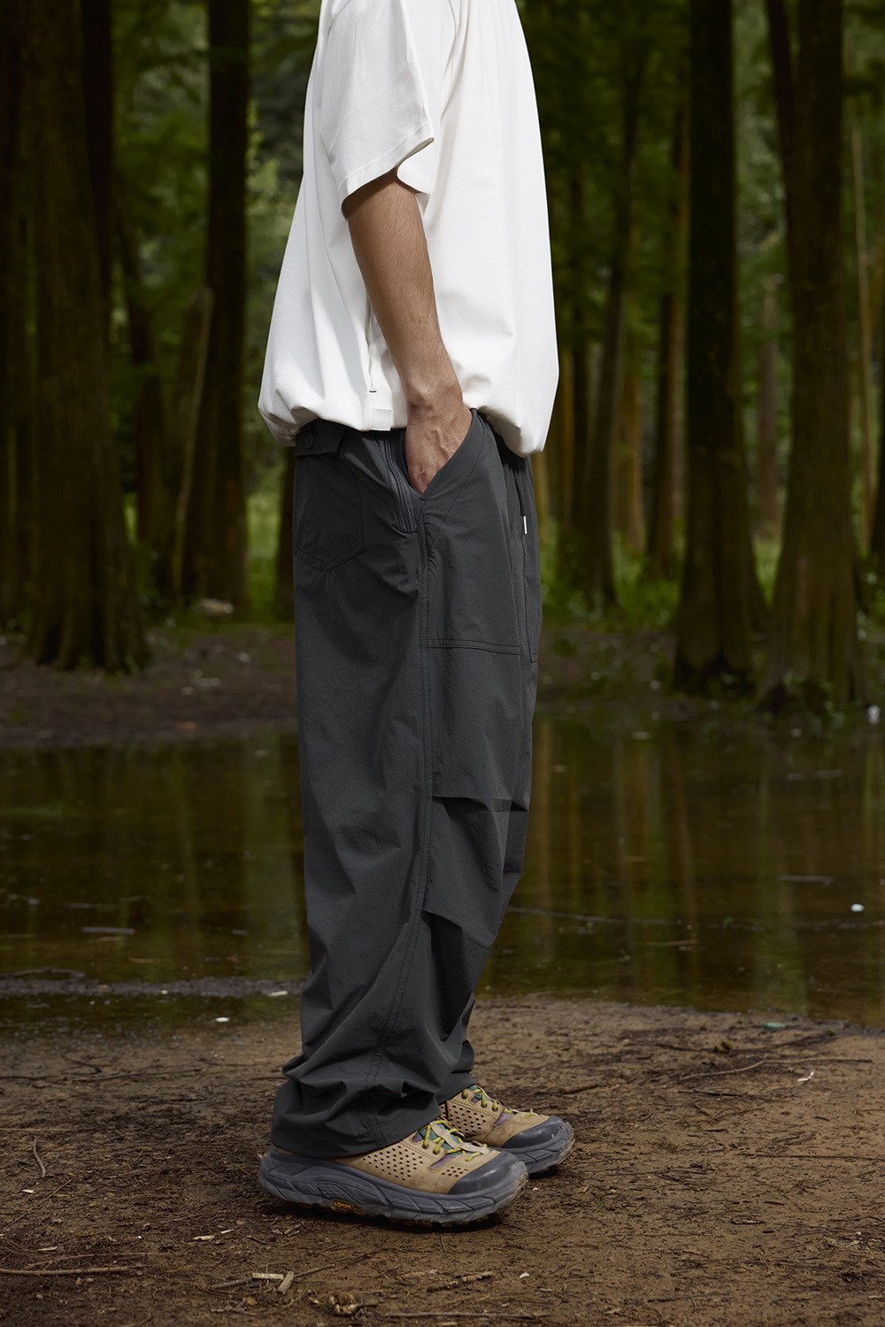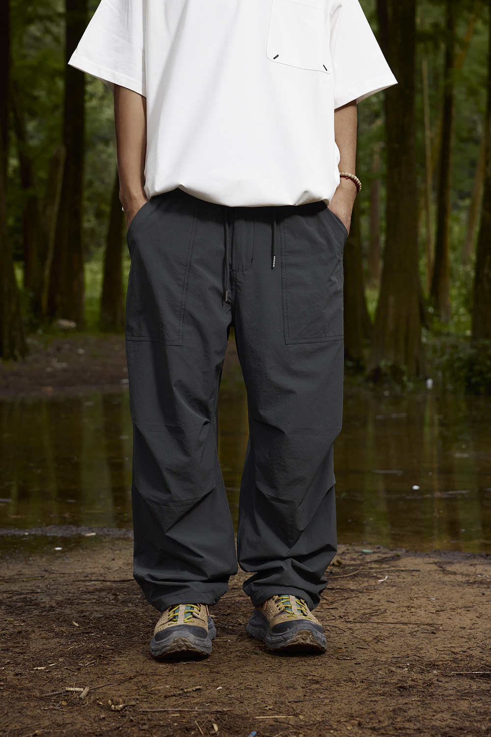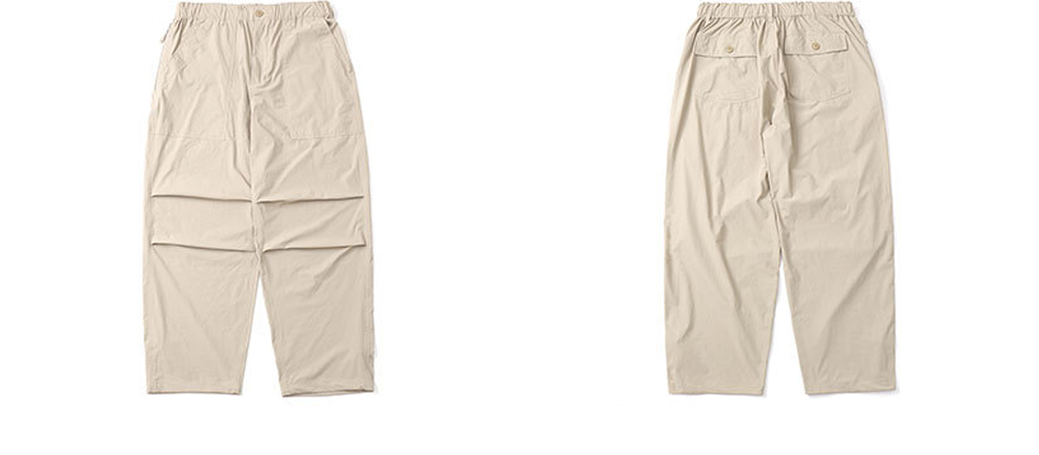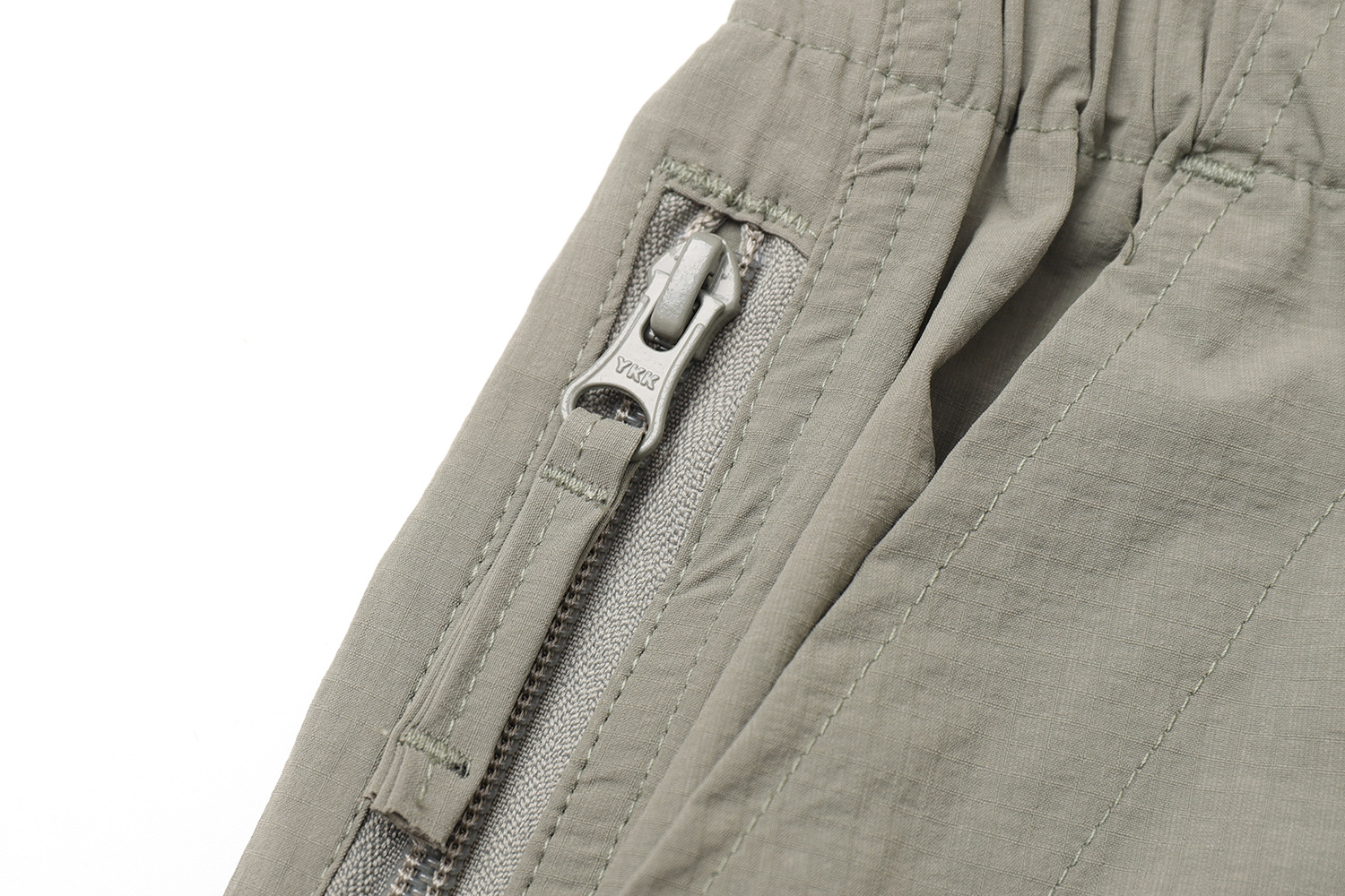 - YKK 브랜드 지퍼, 허리 밴딩+스트링, 양 사이드 포켓과 힙 포켓 구성