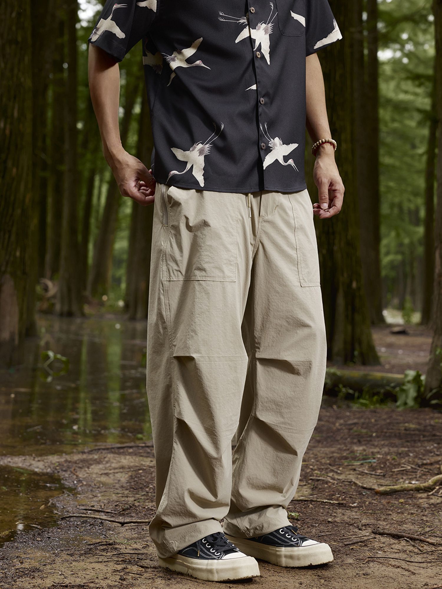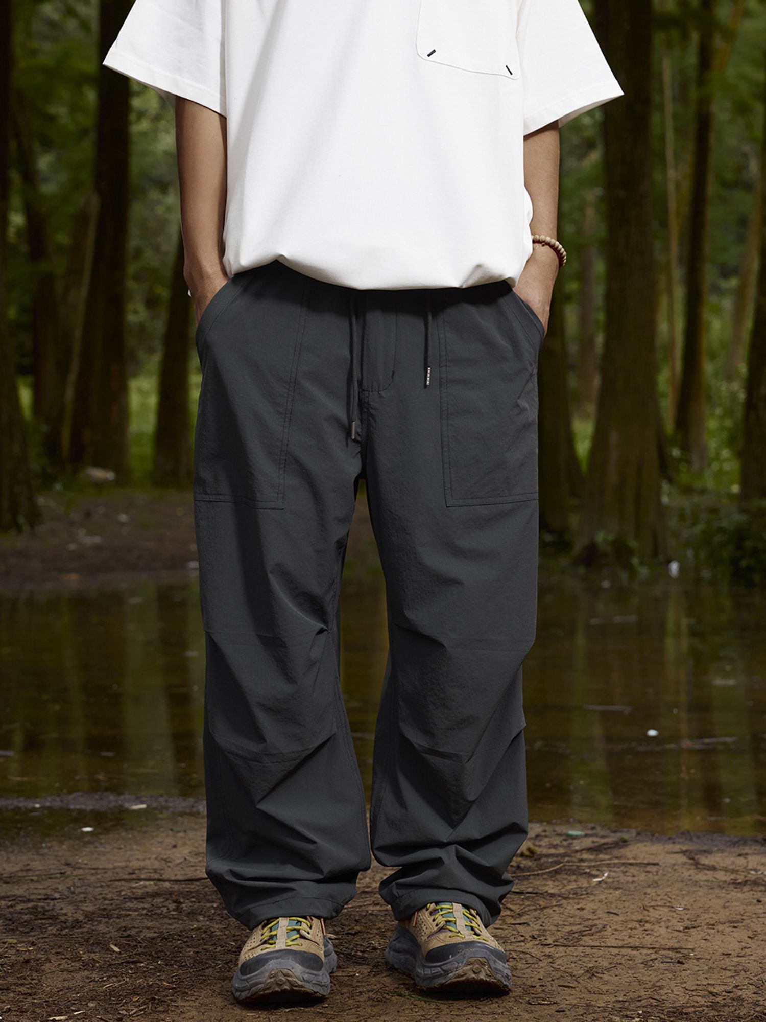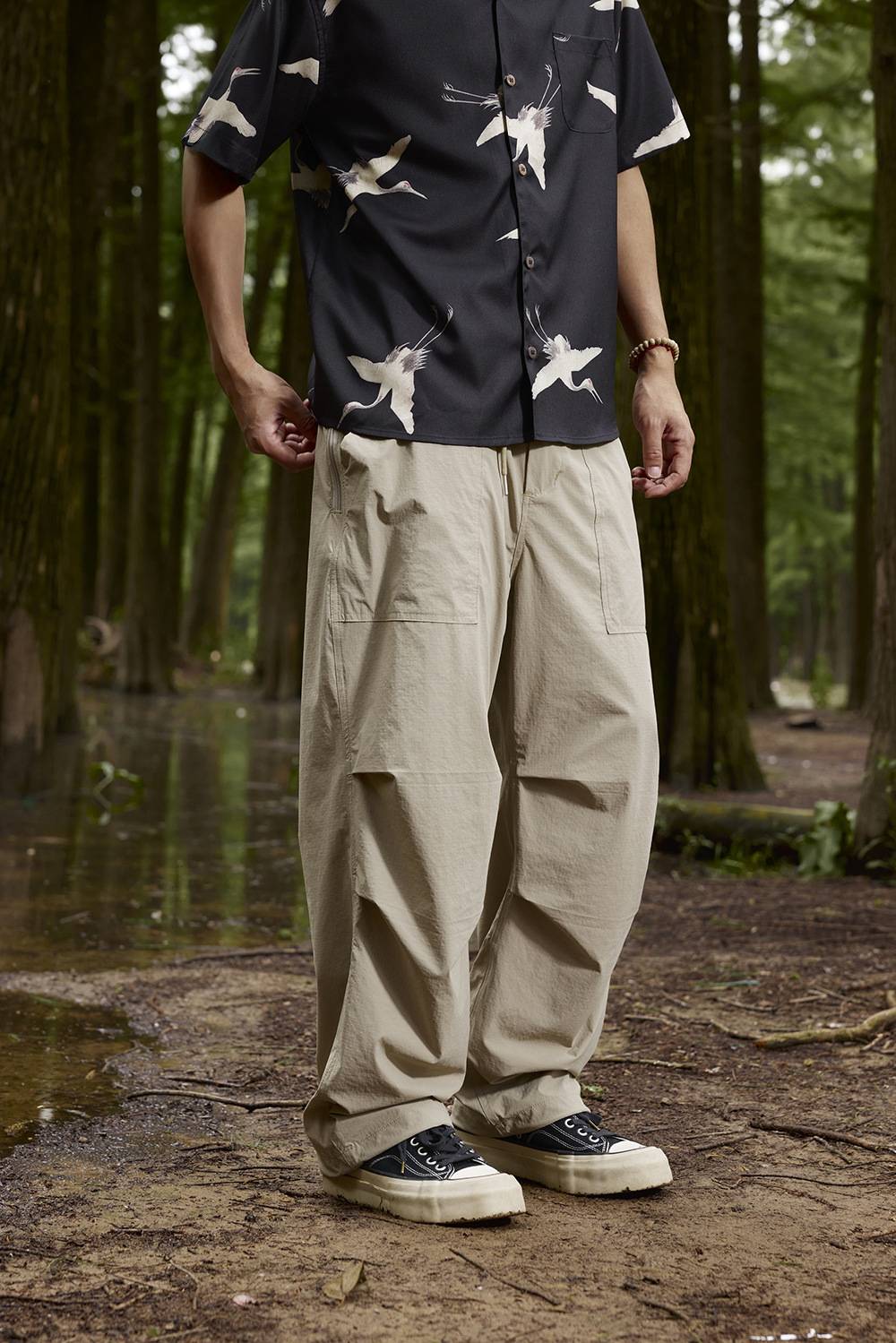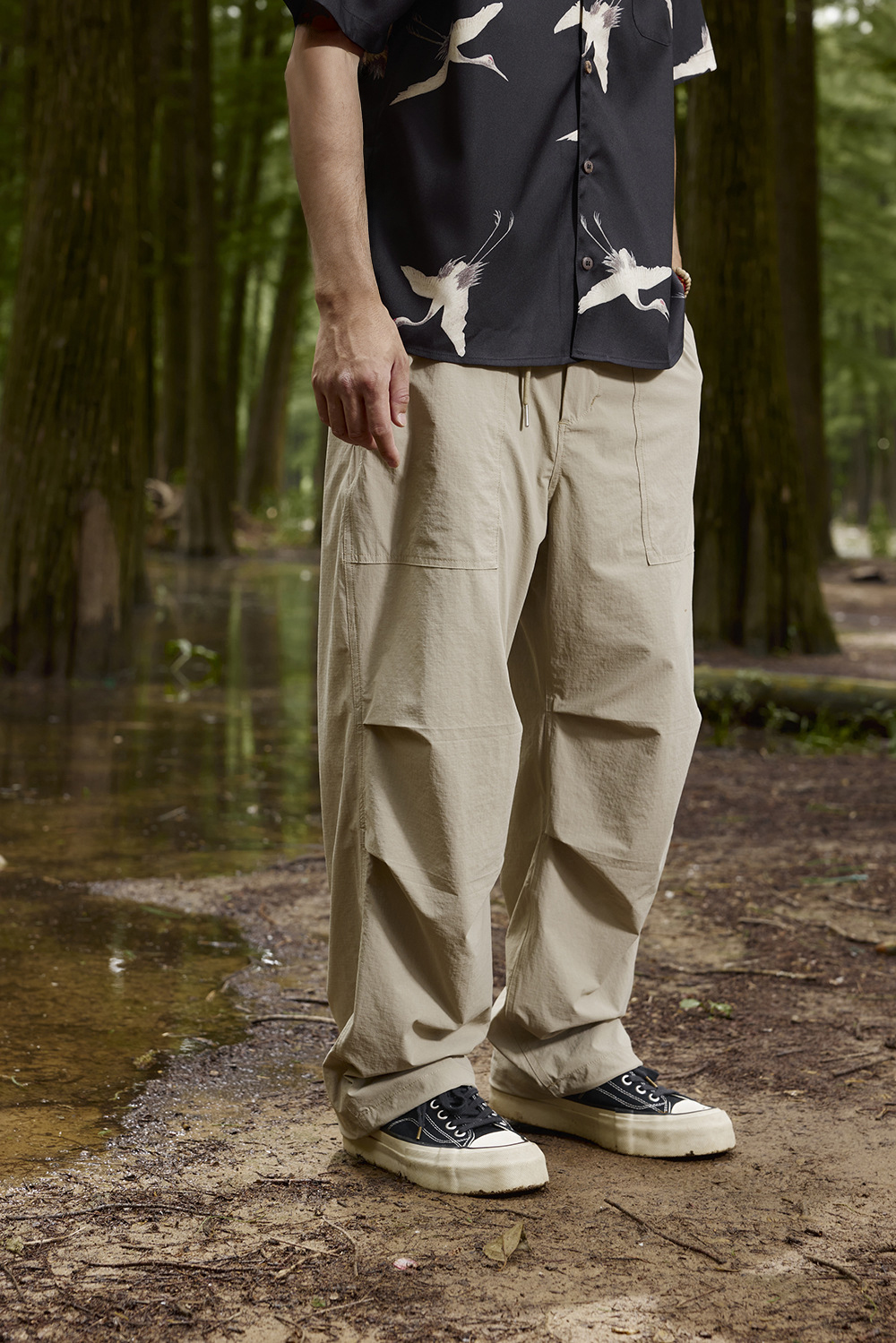 - YKK 브랜드 지퍼, 허리 밴딩+스트링, 양 사이드 포켓과 힙 포켓 구성
