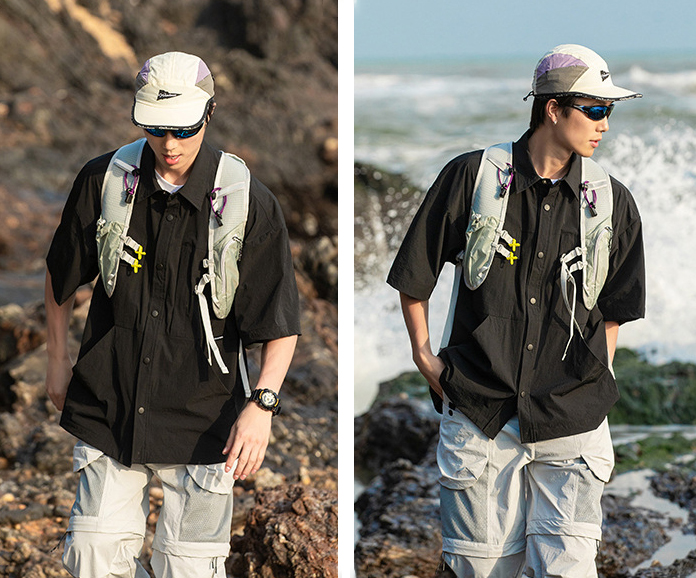 가볍고 통기성 좋은 기능성 소재로 제작된 아웃도어 셔츠입니다.