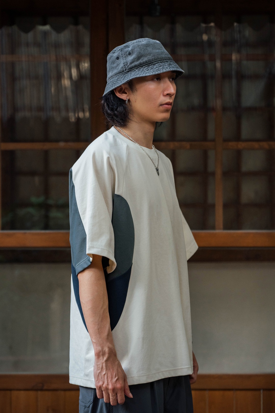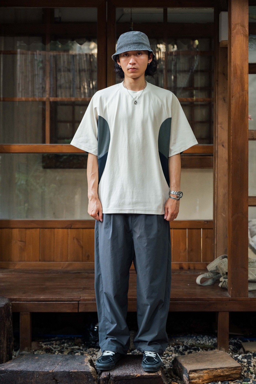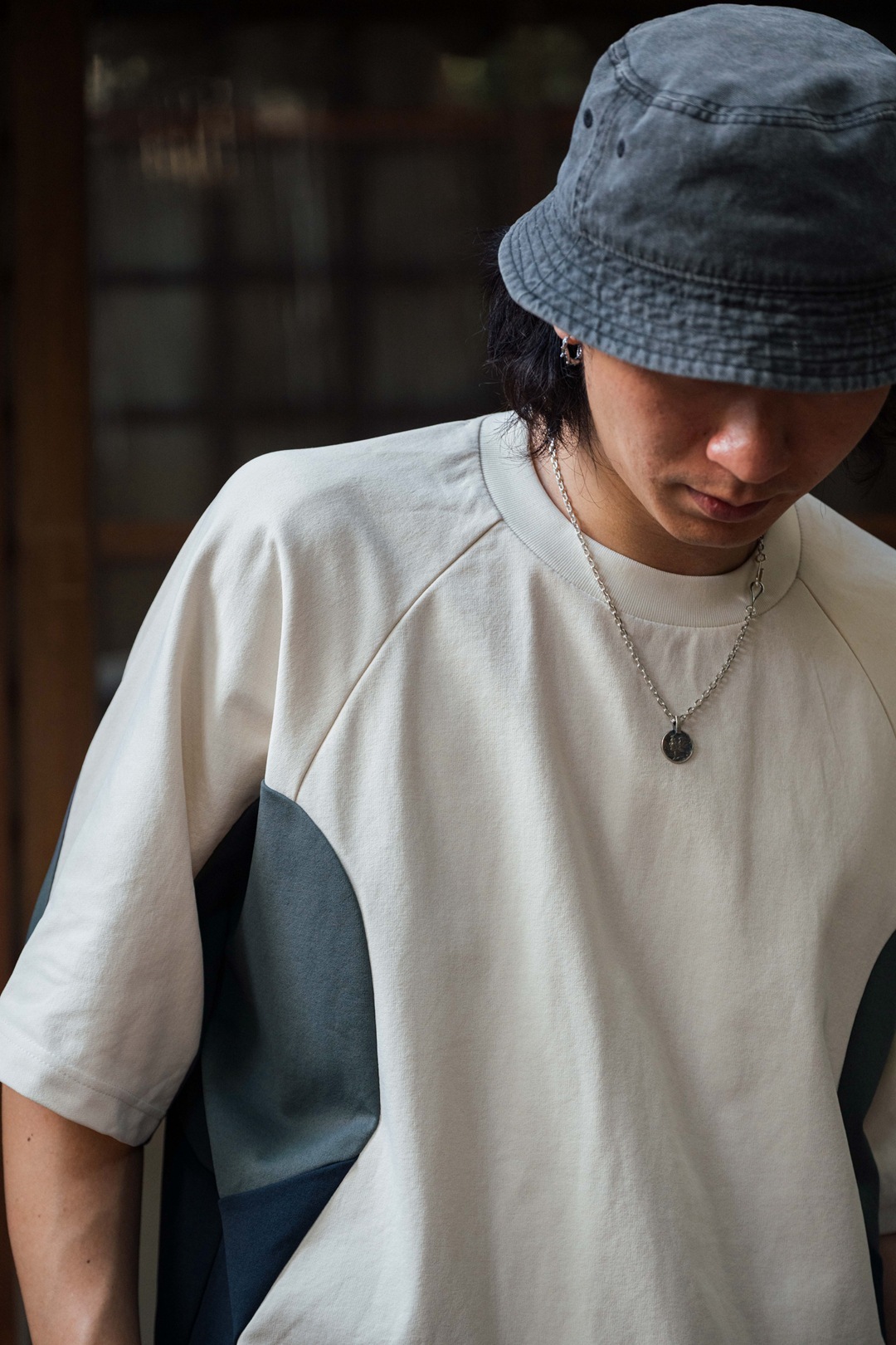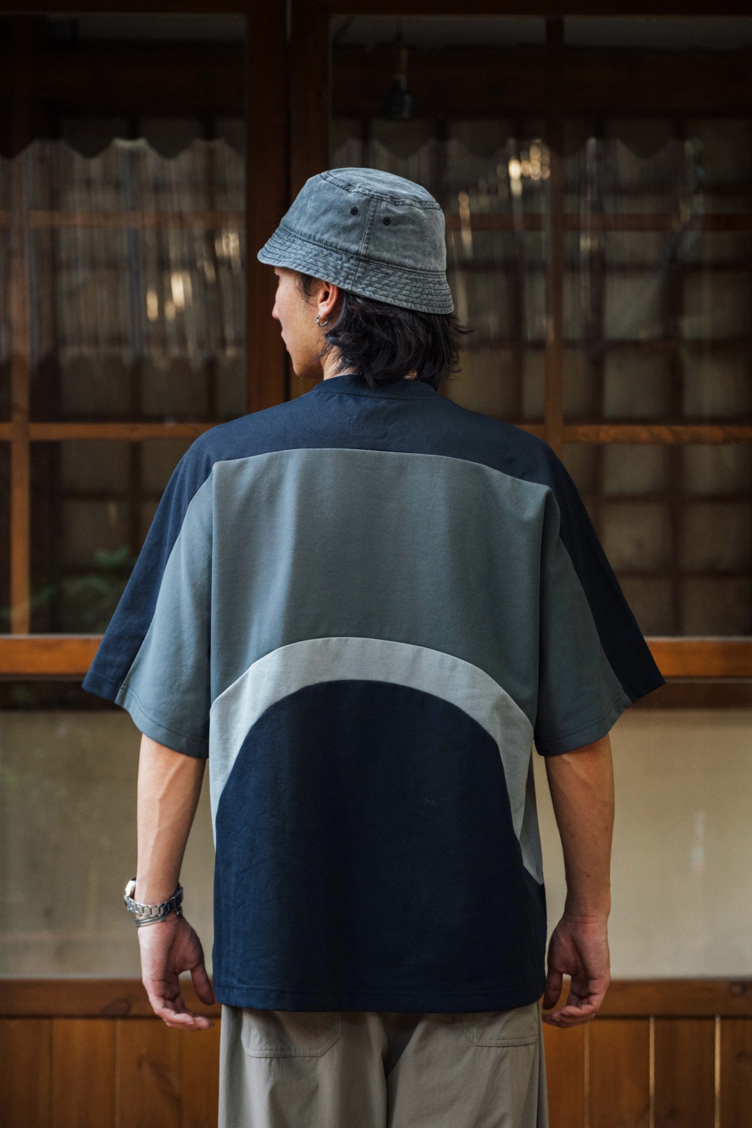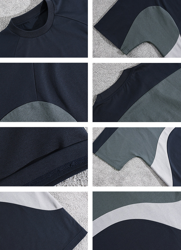 입체적인 컬러 블록으로 감각적인 포인트를 더한 배색 반팔 티셔츠입니다.