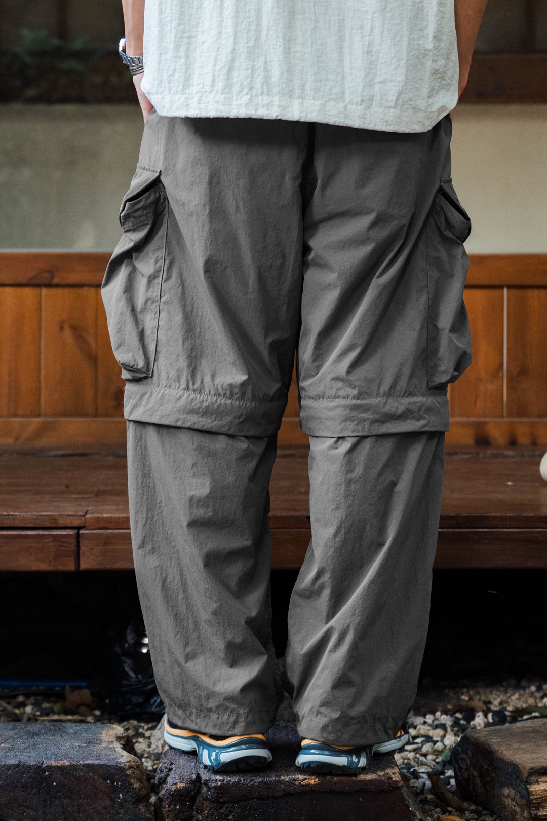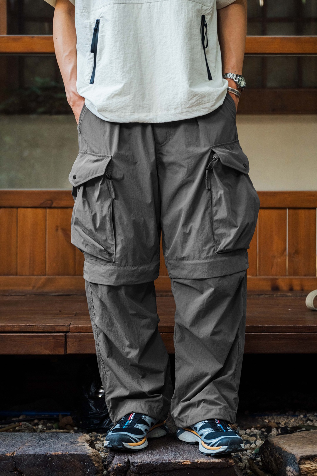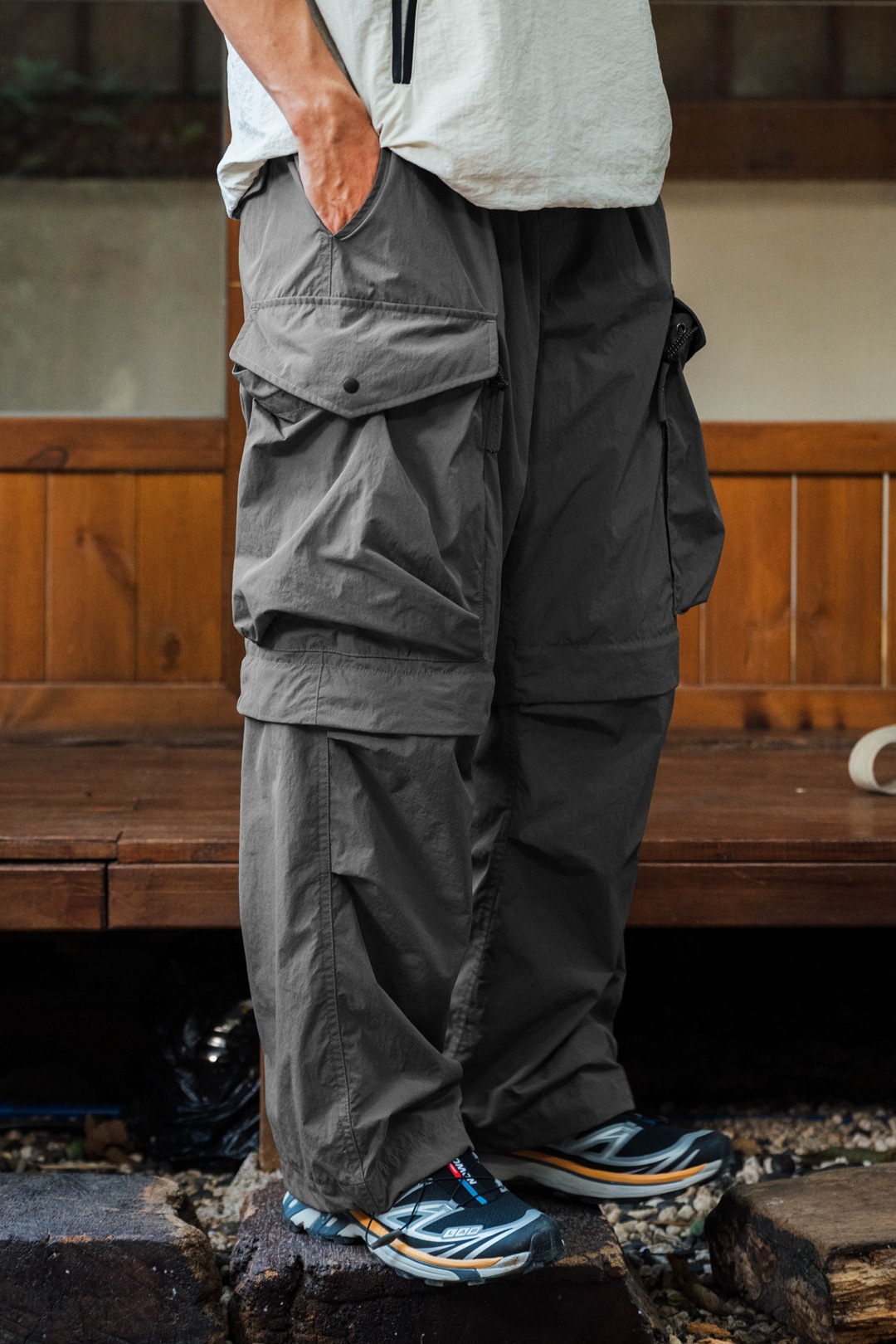 지퍼 분리형으로 팬츠와 반바지 두 가지로 활용 가능한 실용적인 와이드 카고 팬츠입니다.