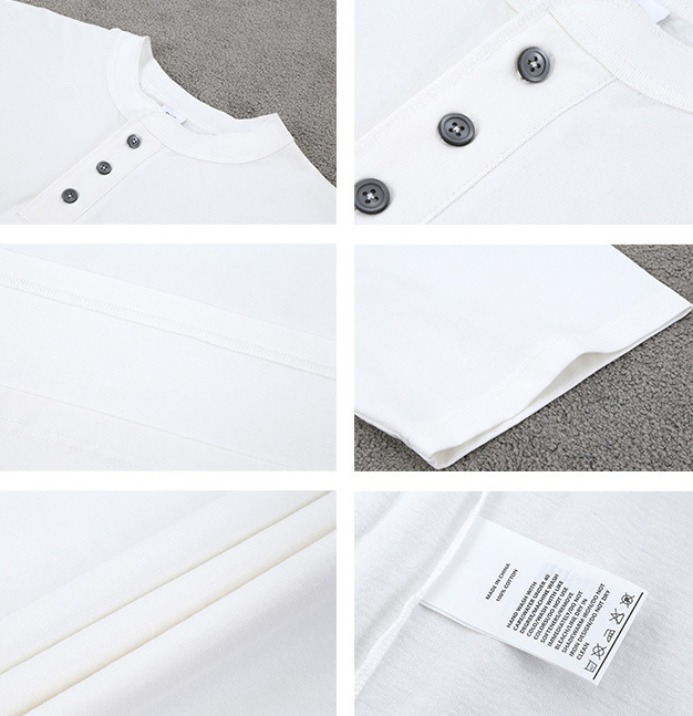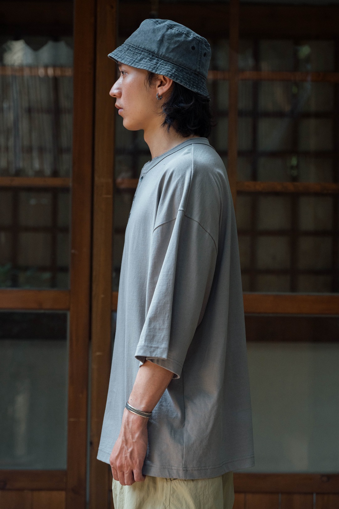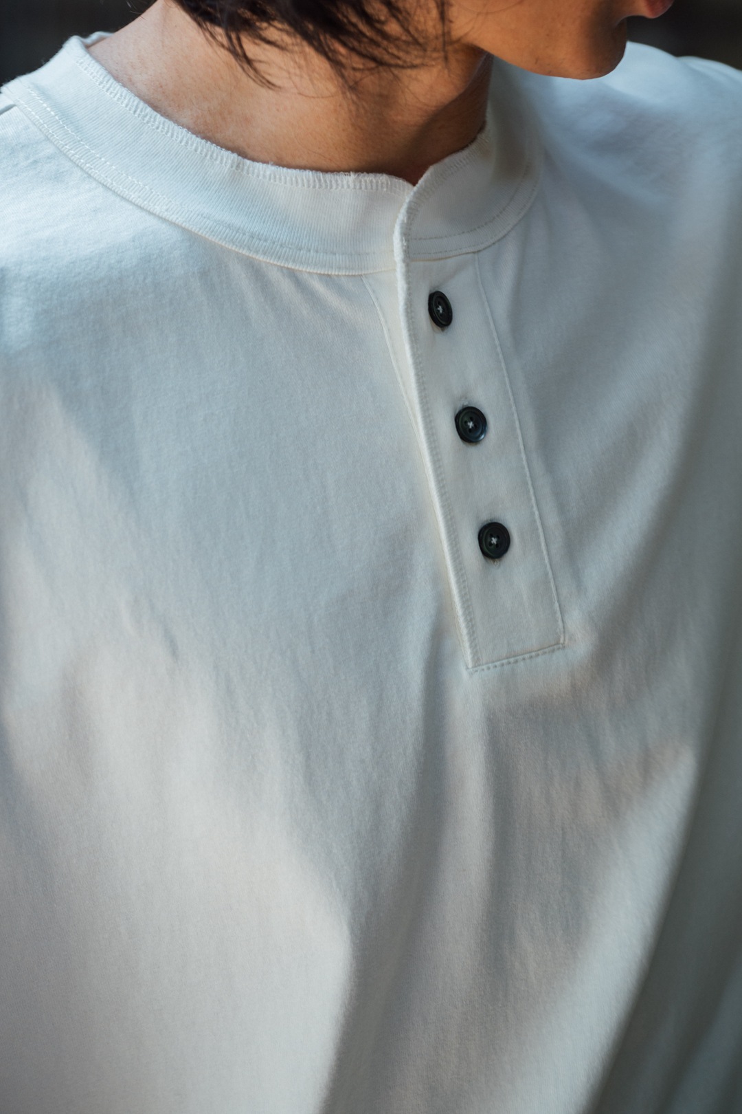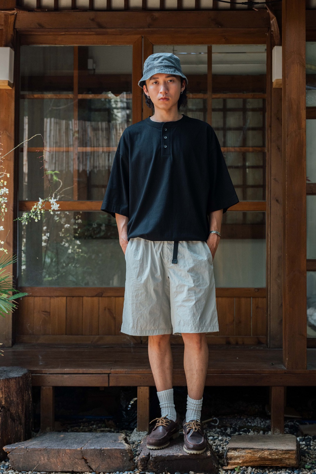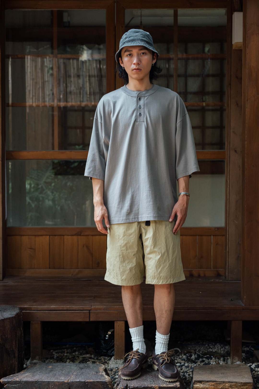 깔끔한 헨리넥 버튼 디테일과 여유로운 핏으로 편안하게 즐기기 좋은 반팔 티셔츠입니다.