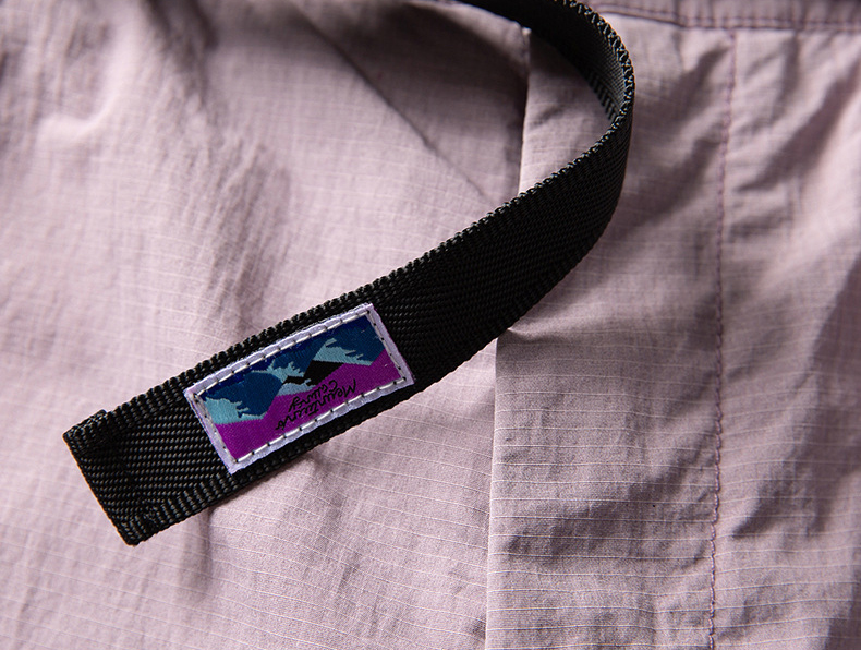 - 후면 절개선과 컬러 스트링 및 지퍼 디테일
