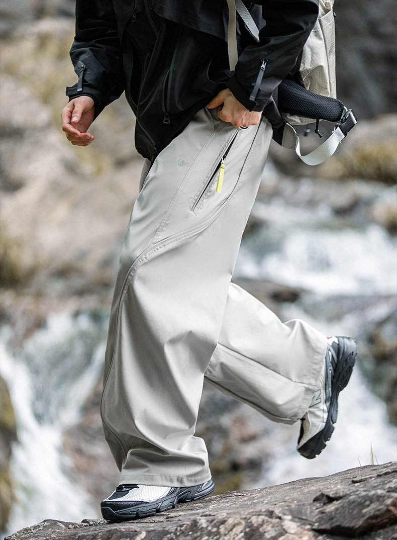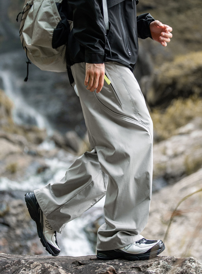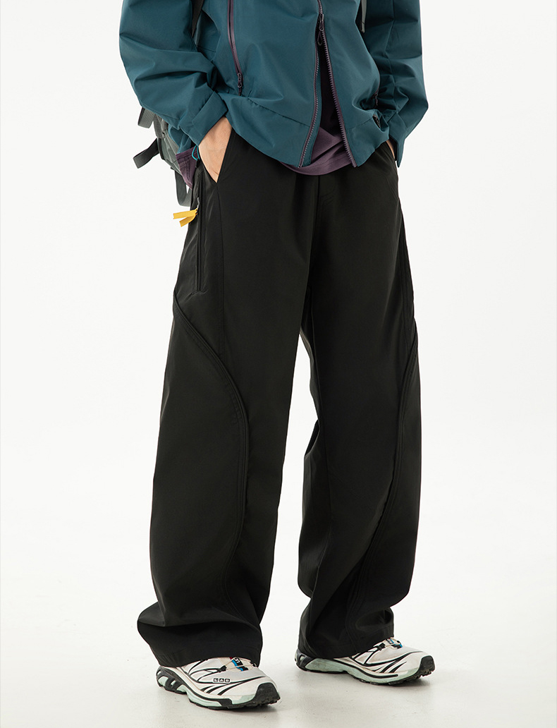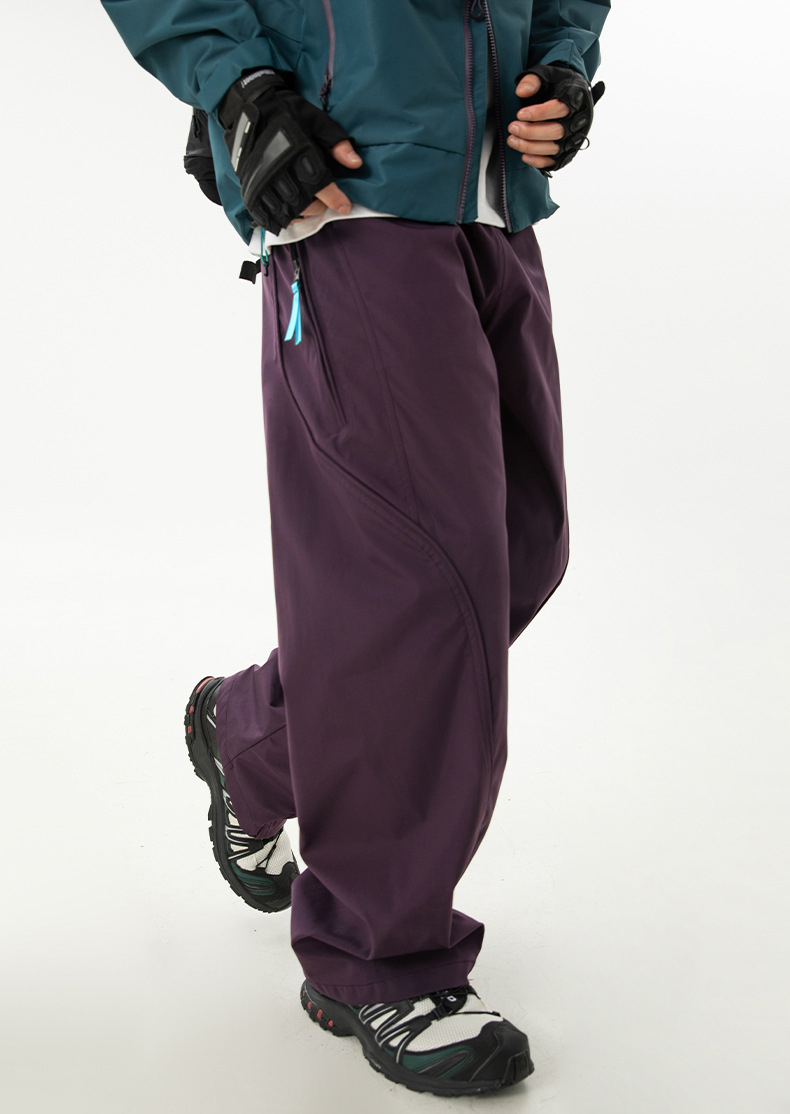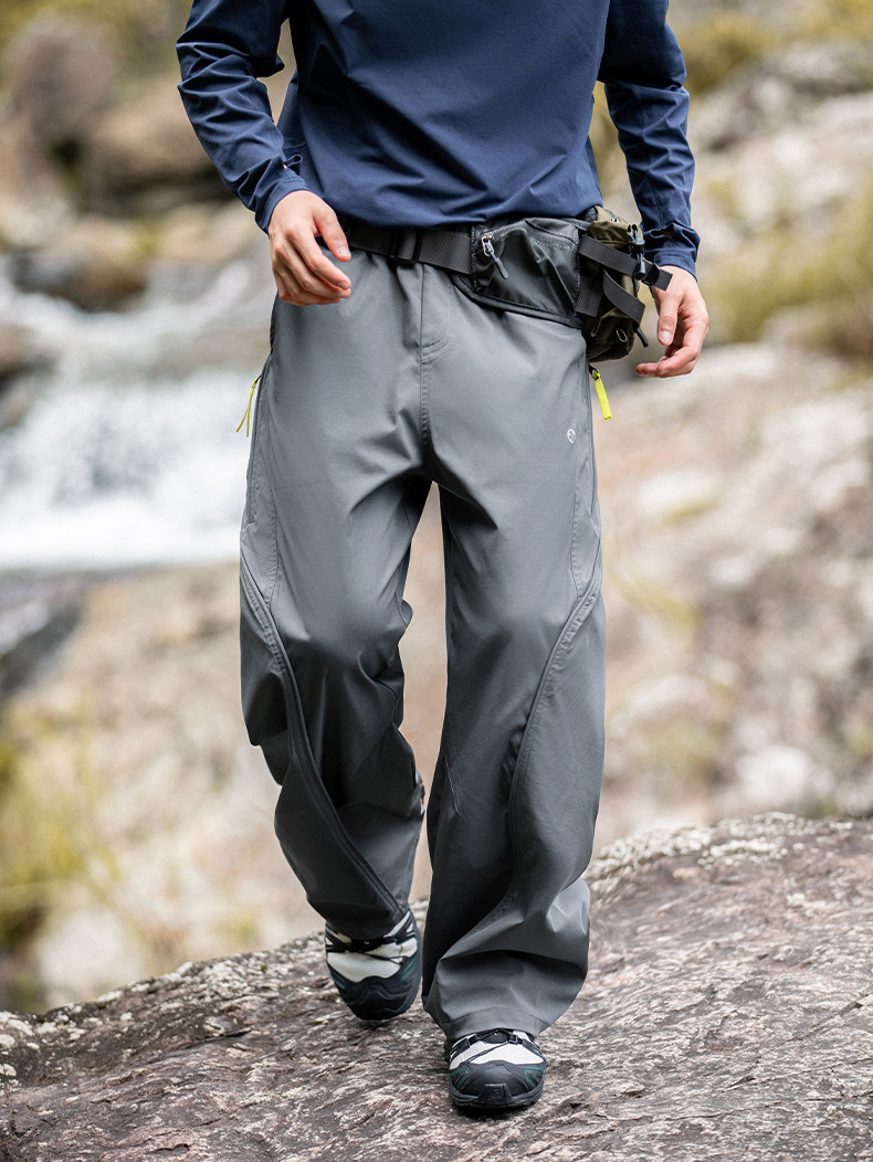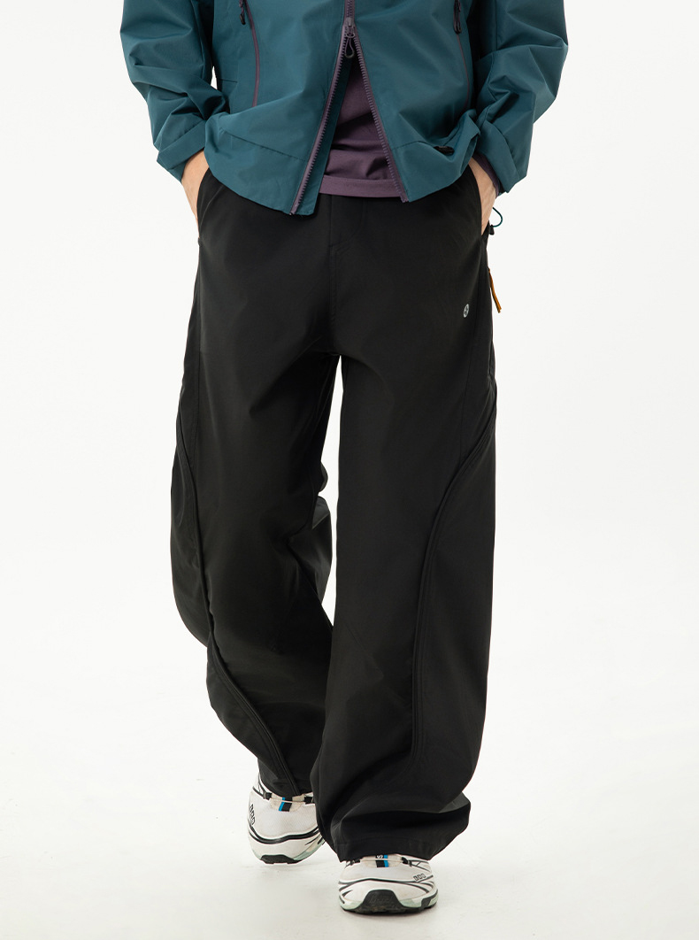 곡선 절개와 대비 포인트로 스타일을 살린 기능성 방수 테크웨어 팬츠입니다.