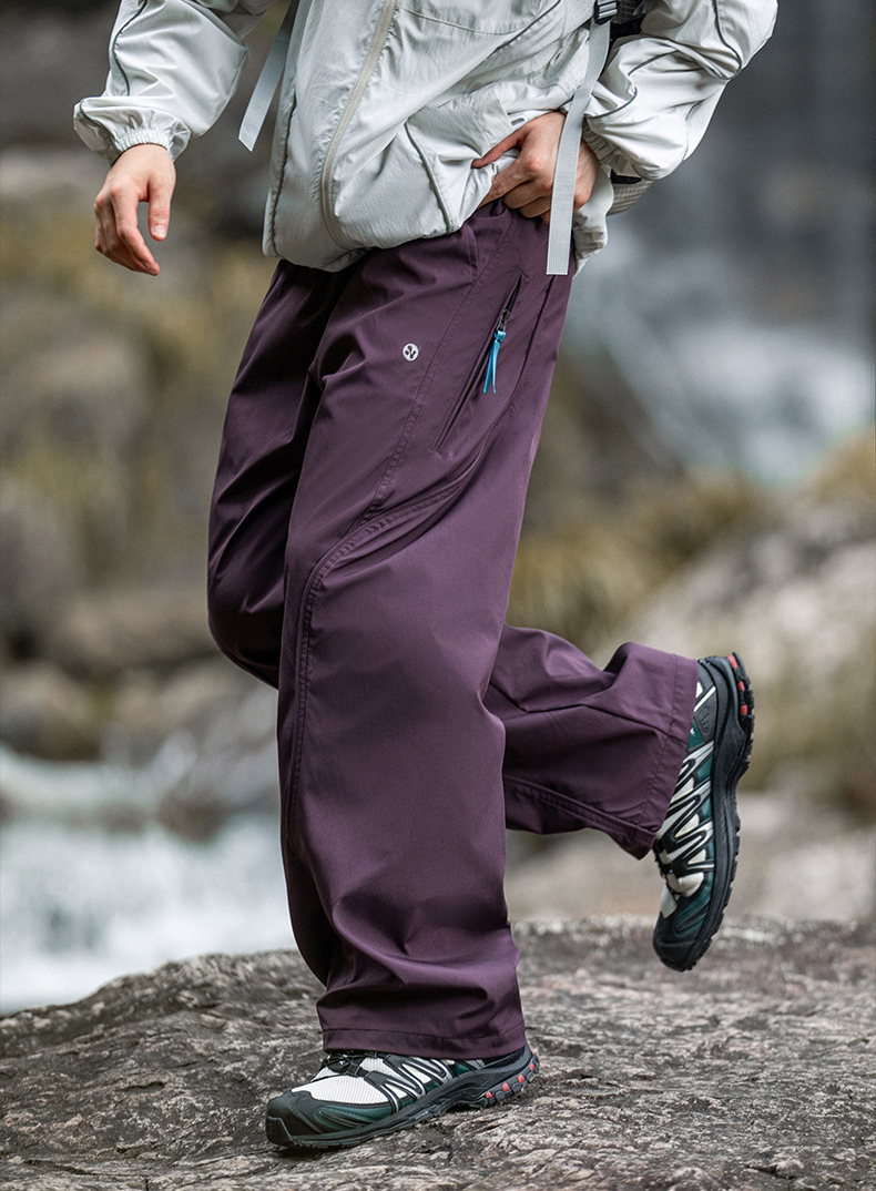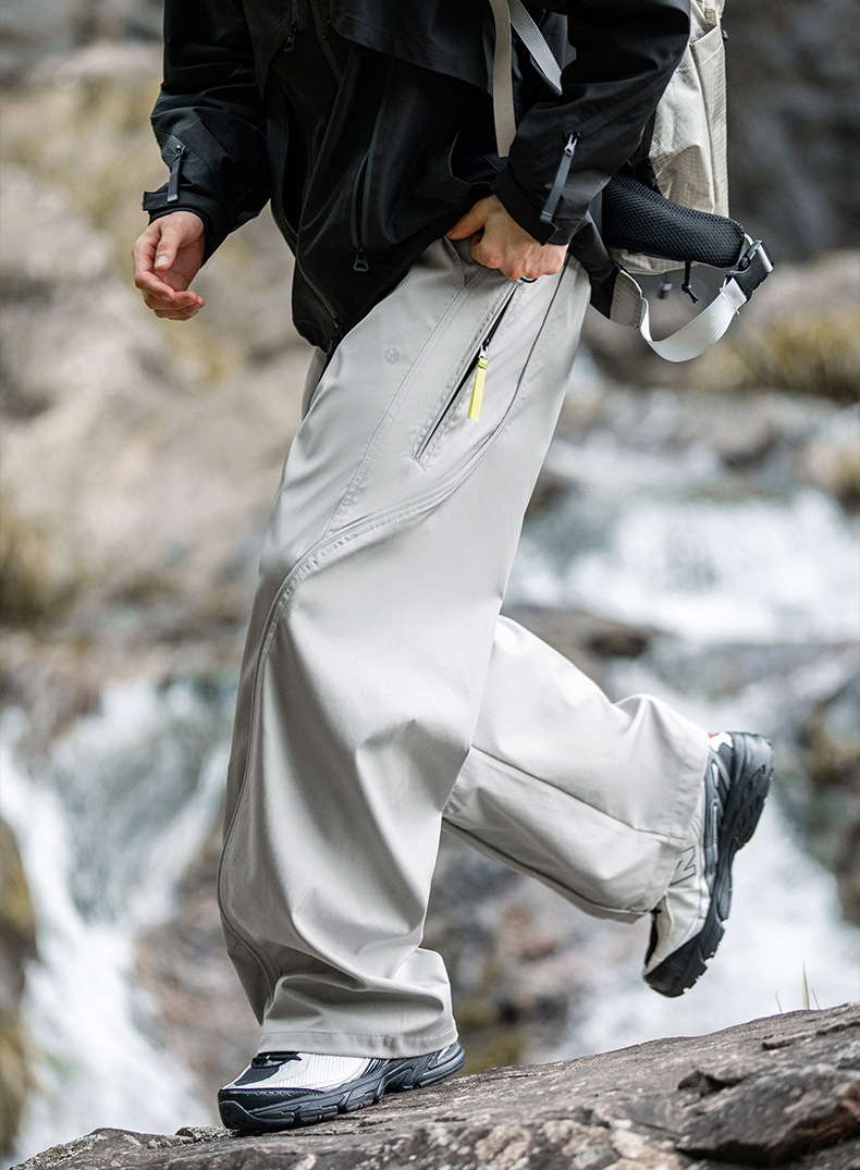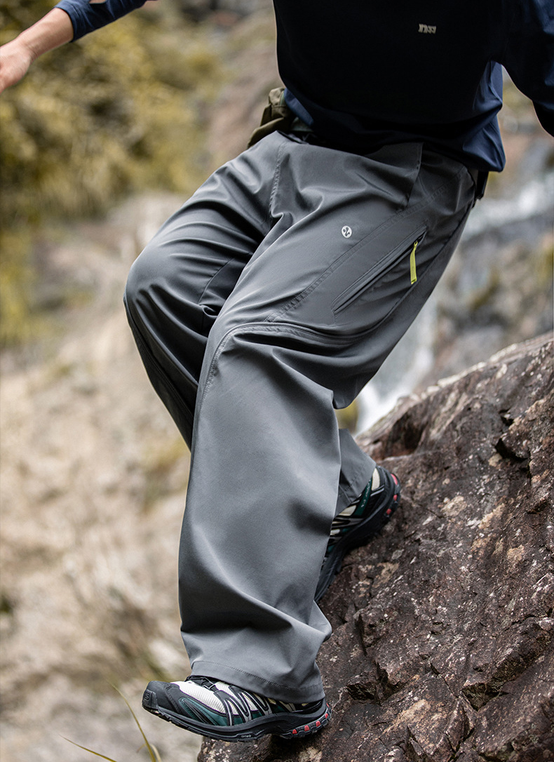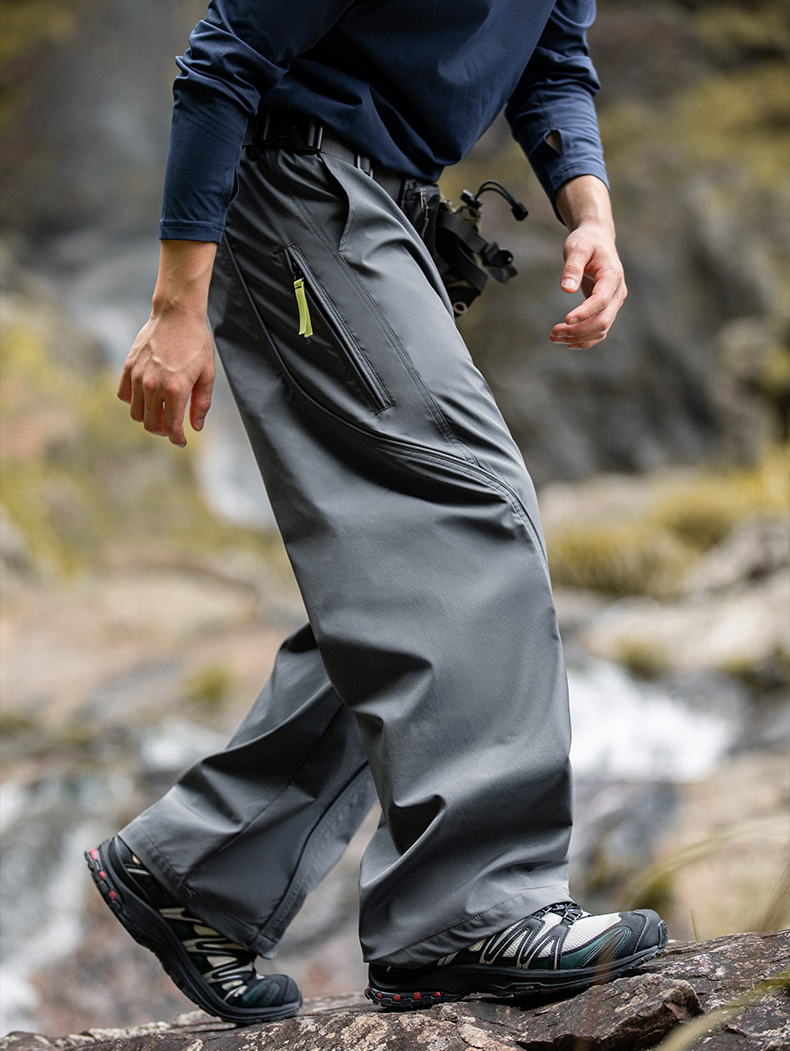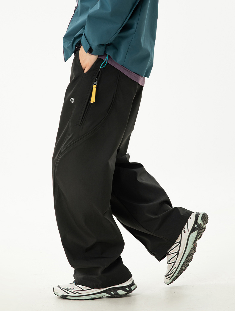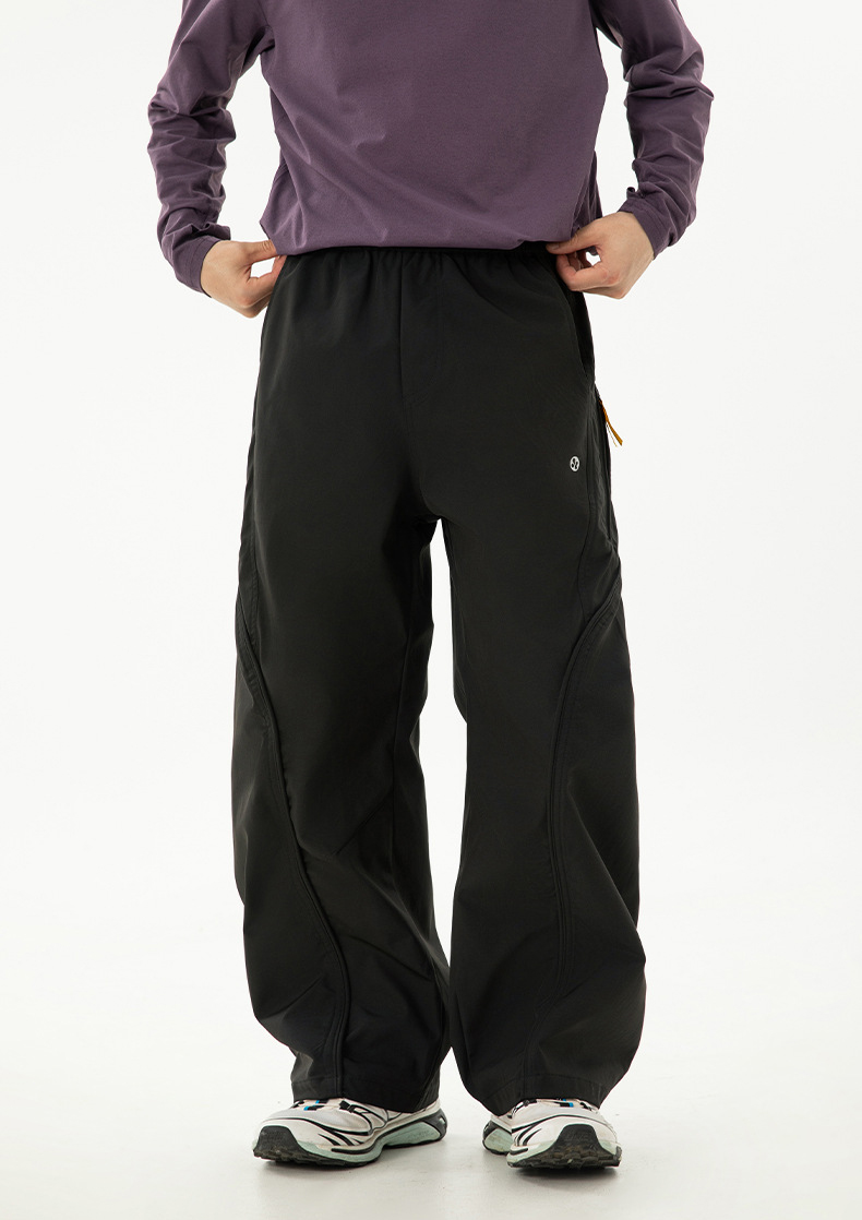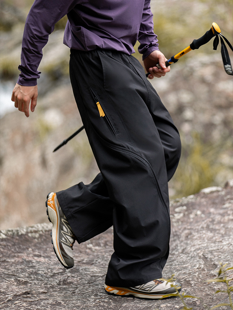 곡선 절개와 대비 포인트로 스타일을 살린 기능성 방수 테크웨어 팬츠입니다.