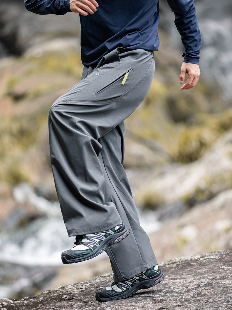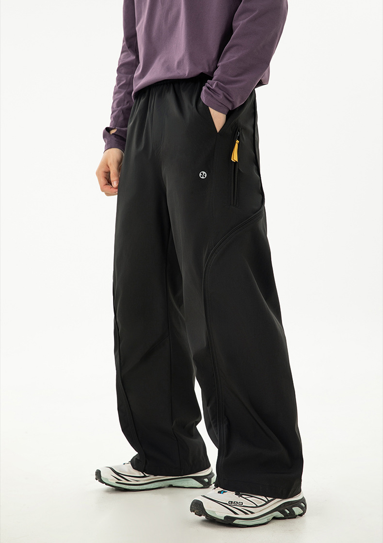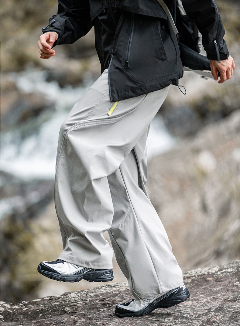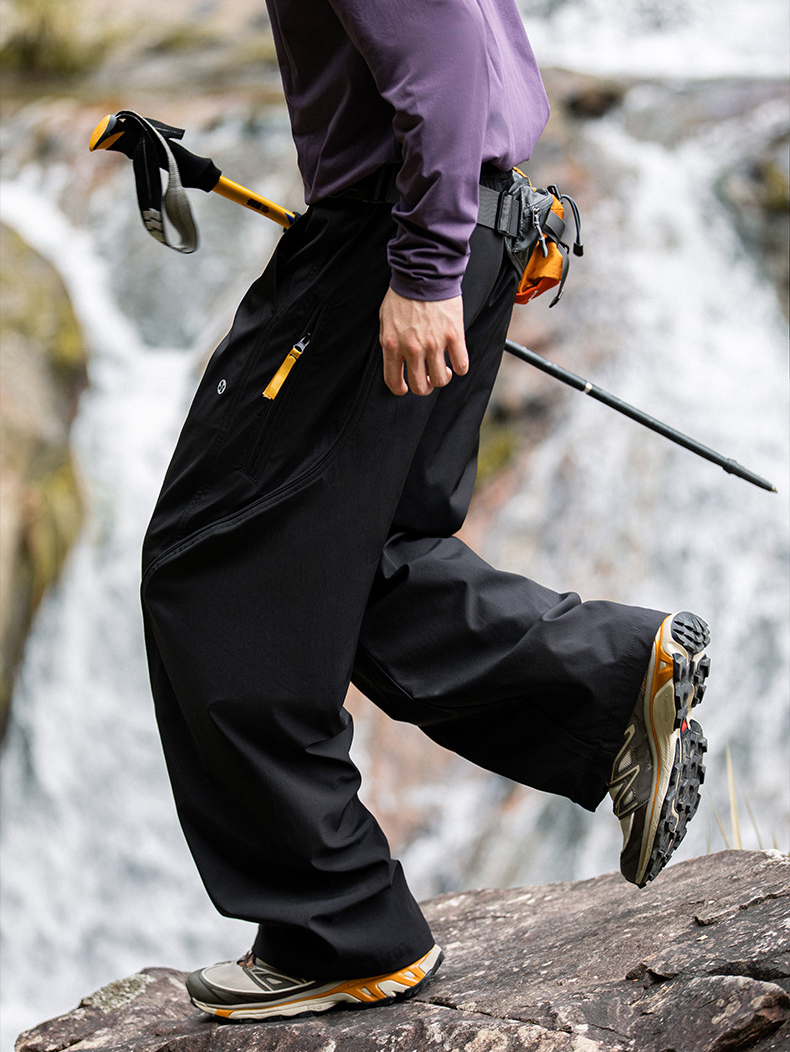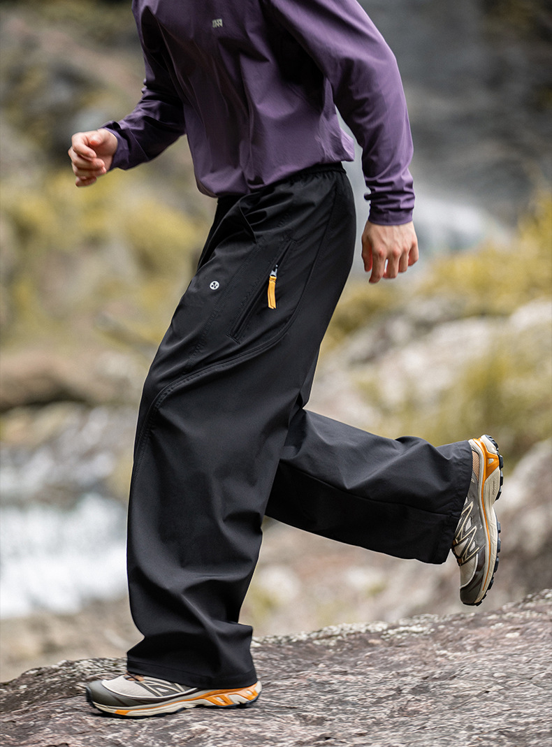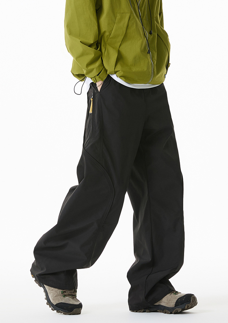 곡선 절개와 대비 포인트로 스타일을 살린 기능성 방수 테크웨어 팬츠입니다.
