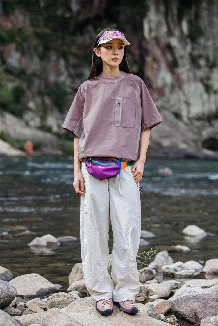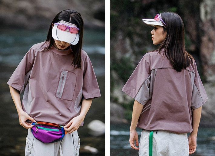 - 측면 메쉬 포켓과 이중 절개 디테일