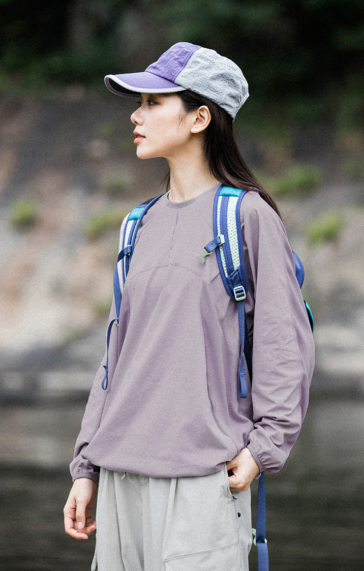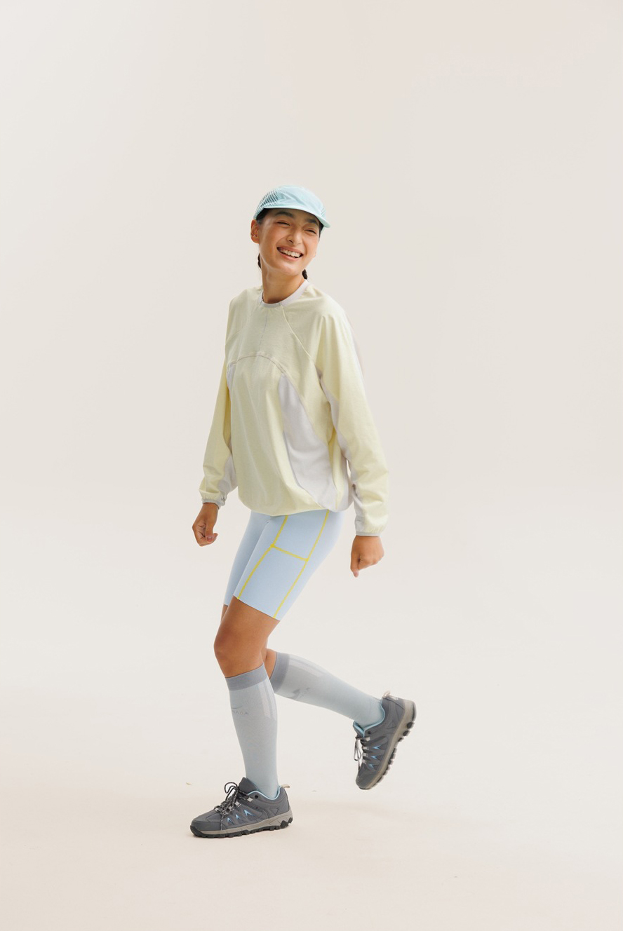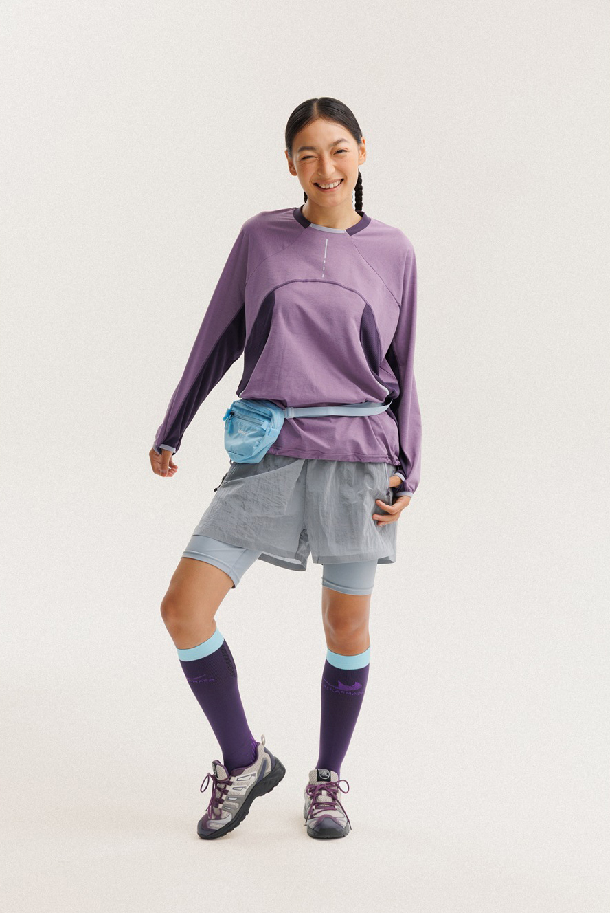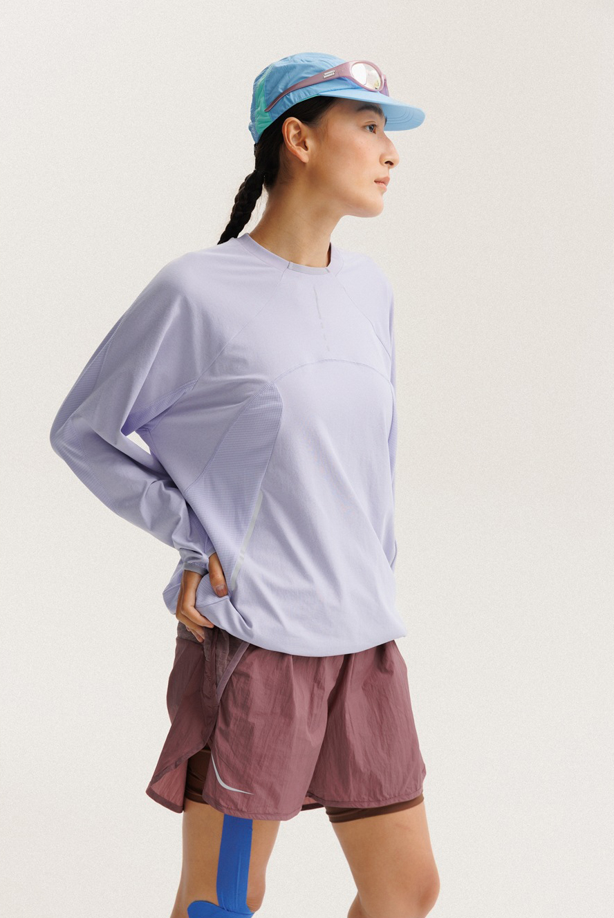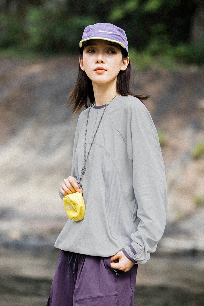 가볍고 통기성 좋은 기능성 원단에 절개 라인이 돋보이는 아웃도어 스타일 롱슬리브 톱입니다.