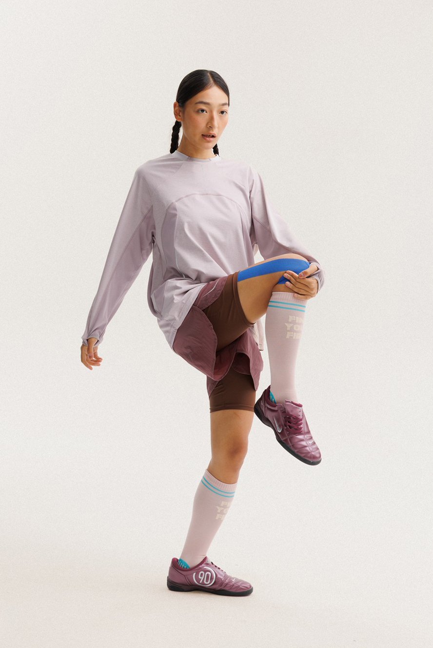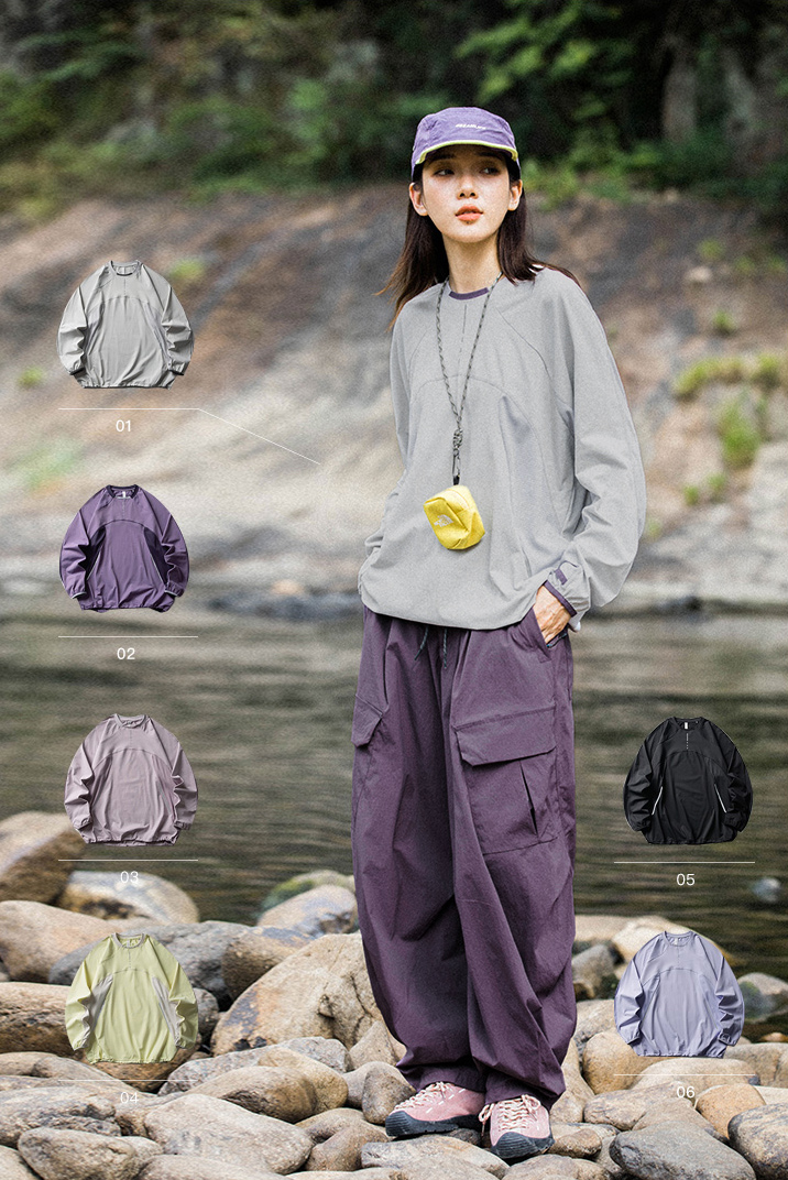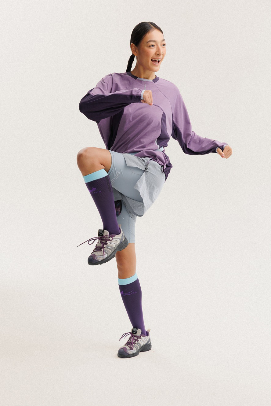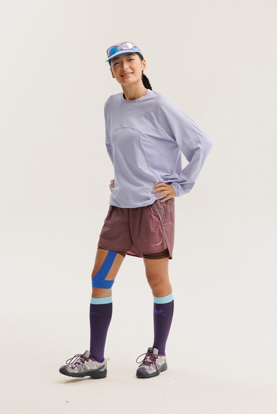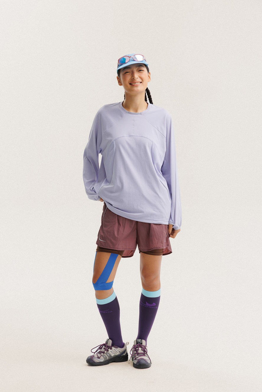 가볍고 통기성 좋은 기능성 원단에 절개 라인이 돋보이는 아웃도어 스타일 롱슬리브 톱입니다.