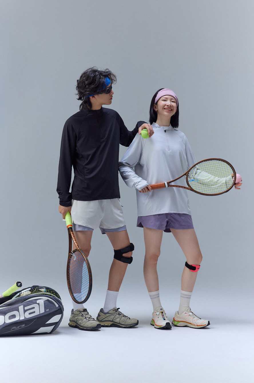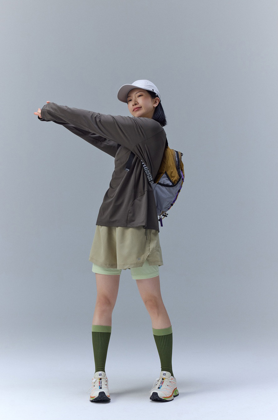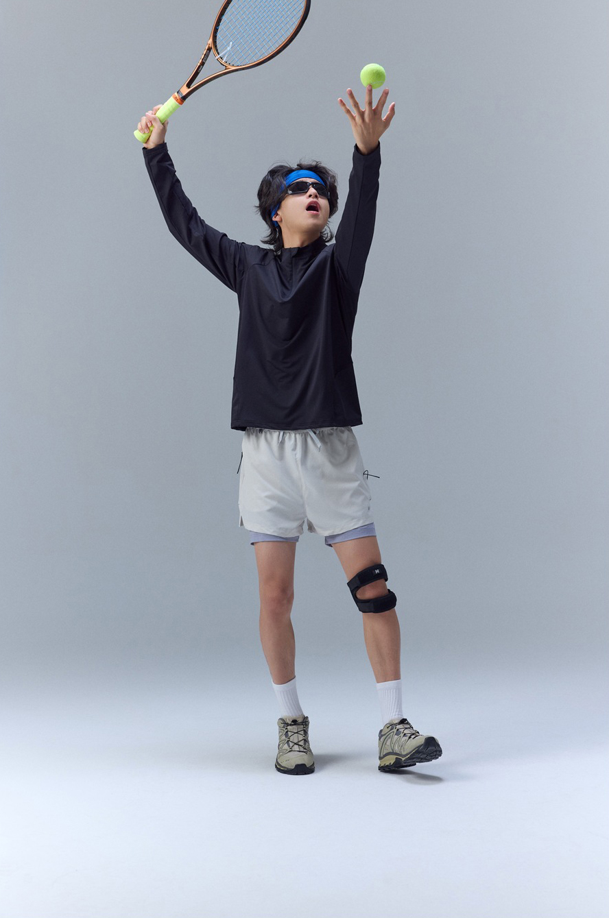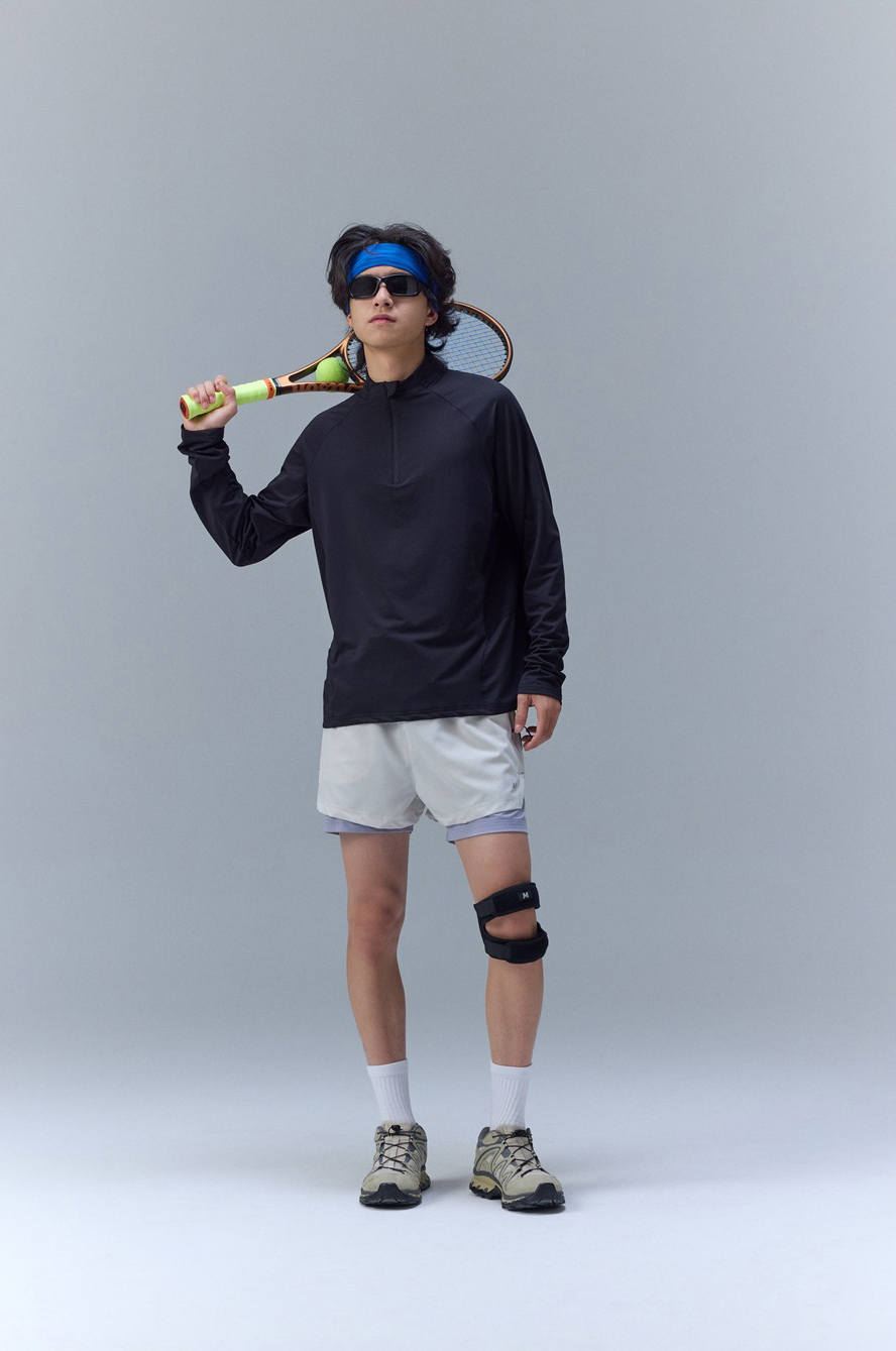 활동적인 무드를 살려주는 하프 집업 디자인의 아웃도어 롱슬리브 탑입니다.
