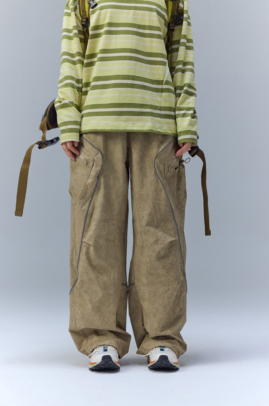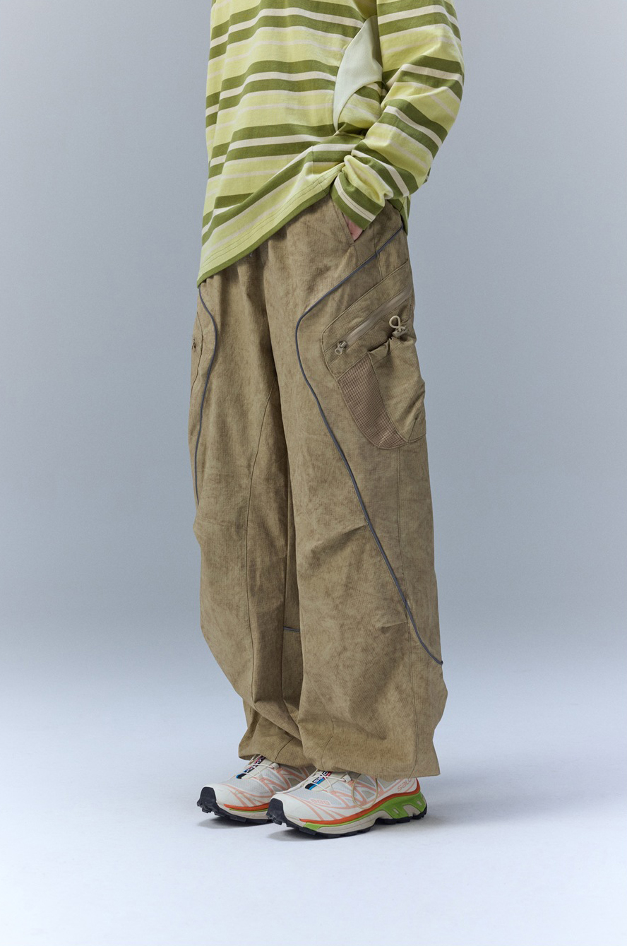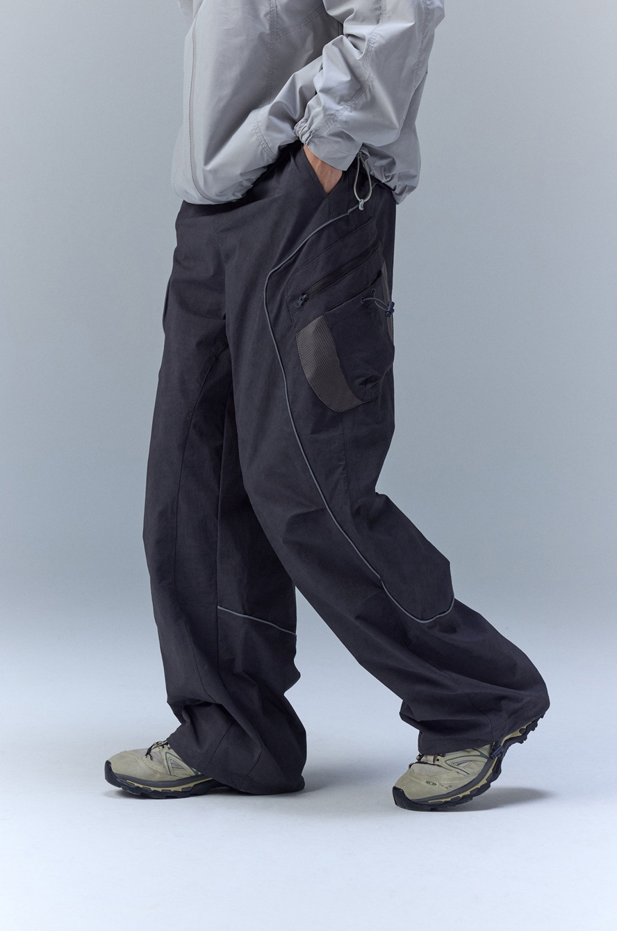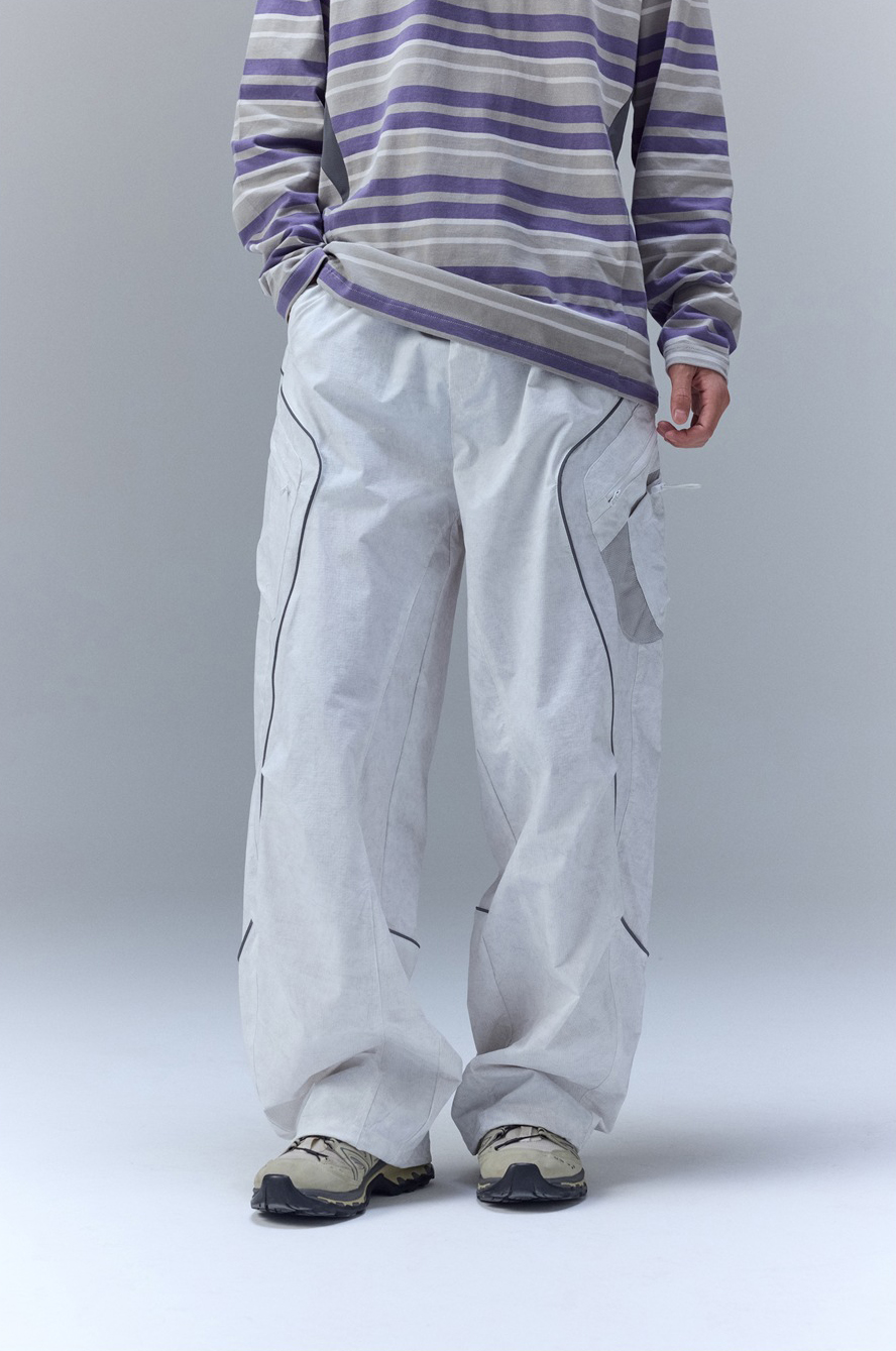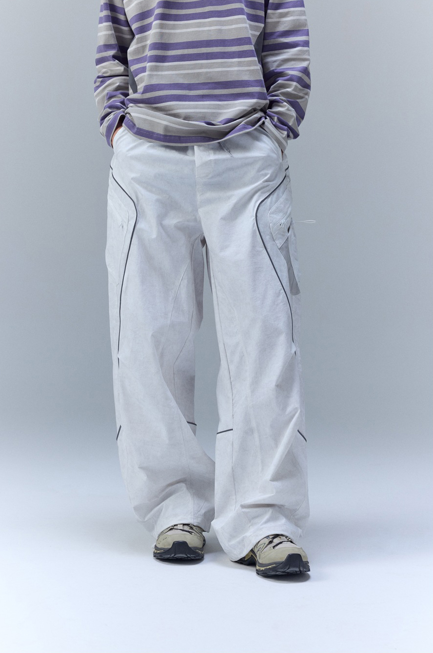와이드 핏 실루엣과 유니크한 절개 디테일로 개성 있는 무드를 완성하는 카고 팬츠입니다.