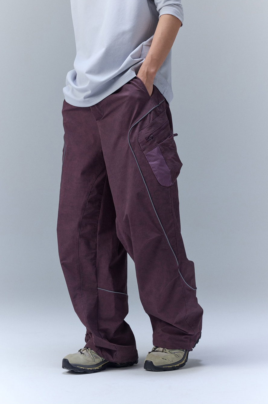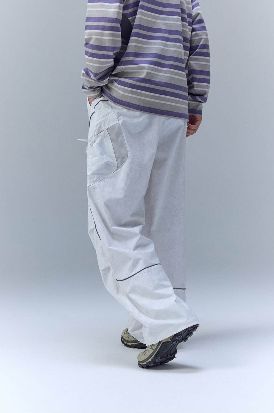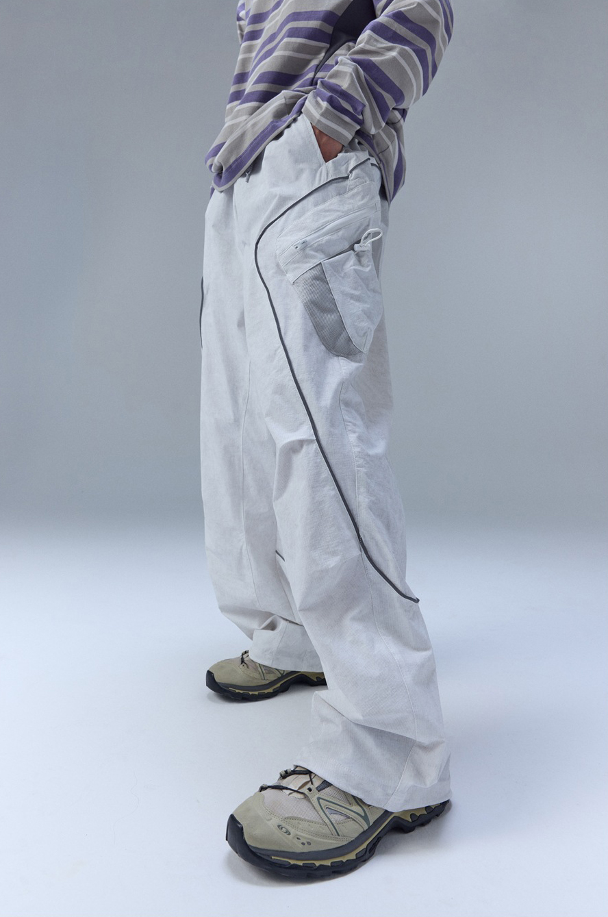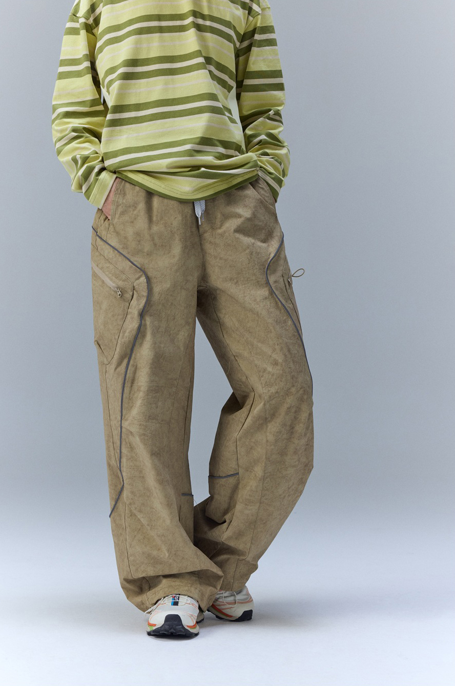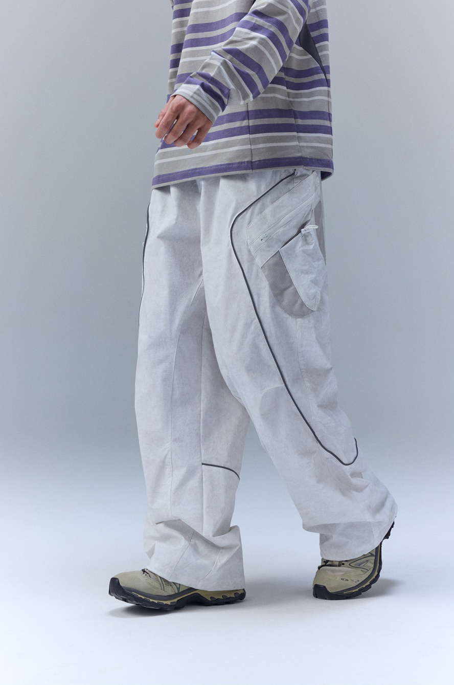 와이드 핏 실루엣과 유니크한 절개 디테일로 개성 있는 무드를 완성하는 카고 팬츠입니다.